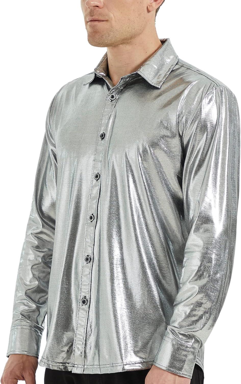 Men Dress Shirt Sequins Long Sleeve Button Down Shirt Luxury Disco Party Nightclub Christmas Prom Costume