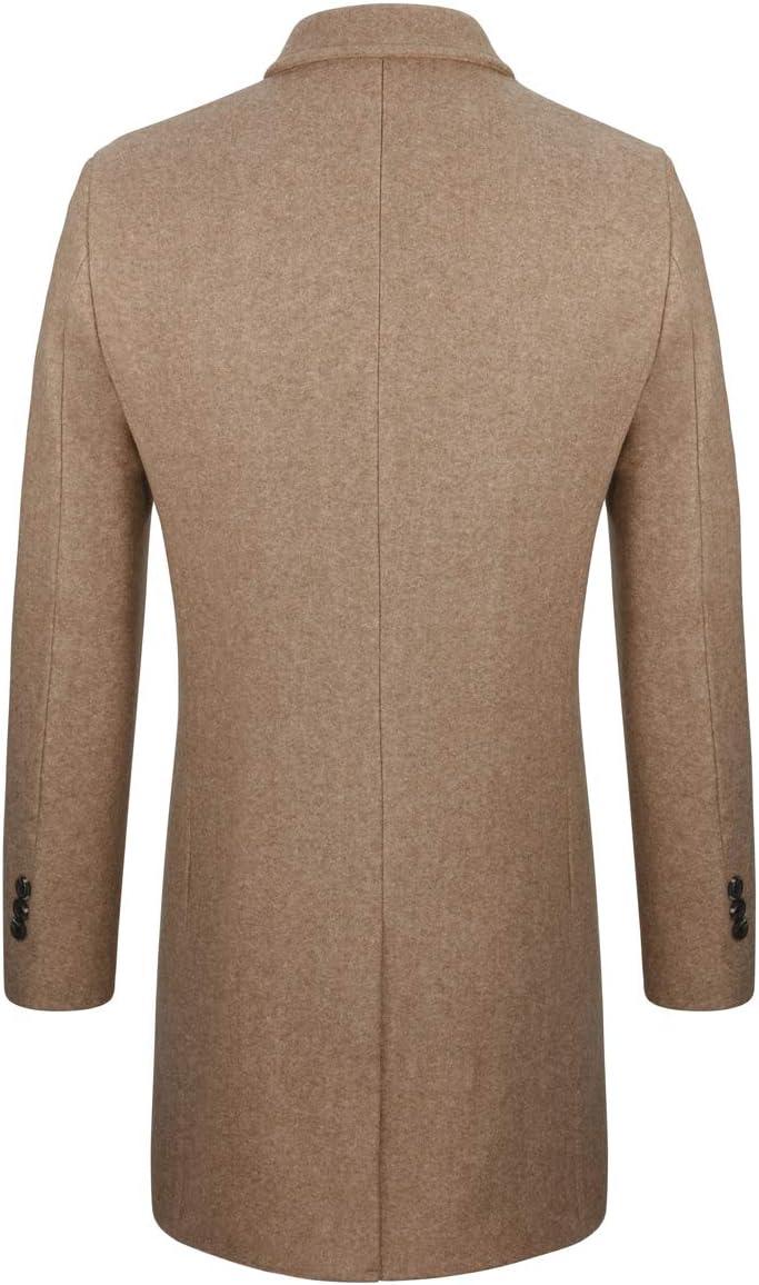 WULFUL Men Wool Trench Coat Slim Fit Winter Coat(Coffee)