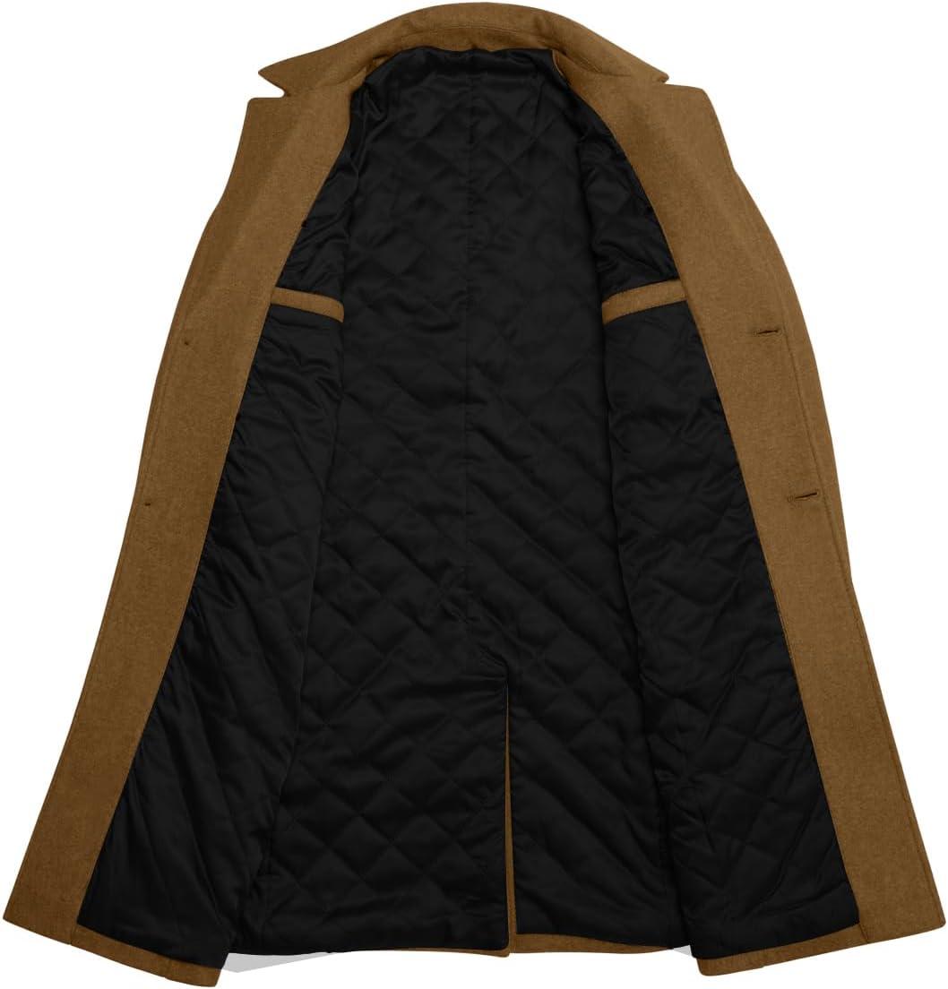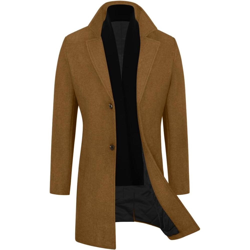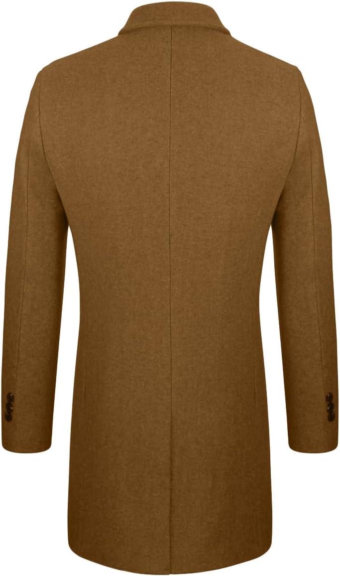 WULFUL Men Wool Trench Coat Slim Fit Winter Coat(Dark Brown)