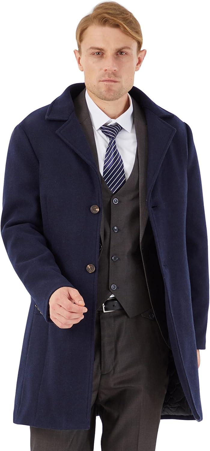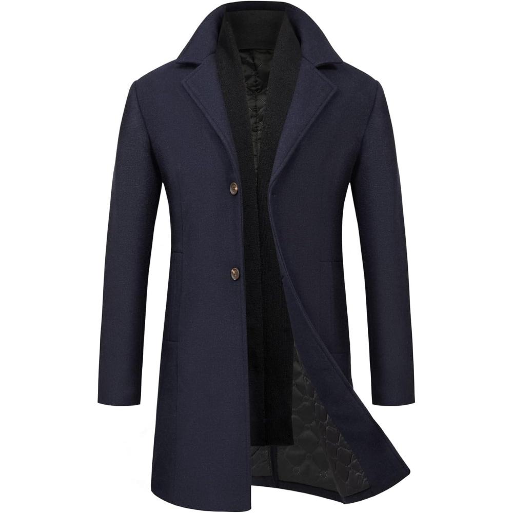 imageWULFUL Men Wool Trench Coat Slim Fit Winter CoatNavy