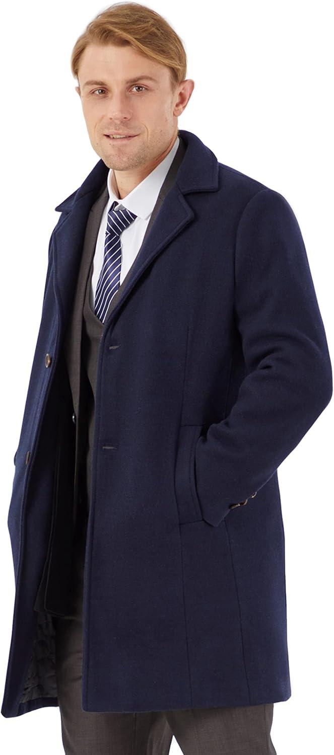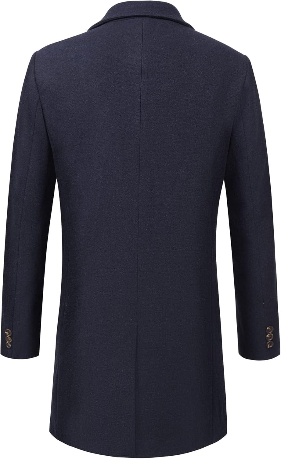 WULFUL Men Wool Trench Coat Slim Fit Winter Coat(Navy)