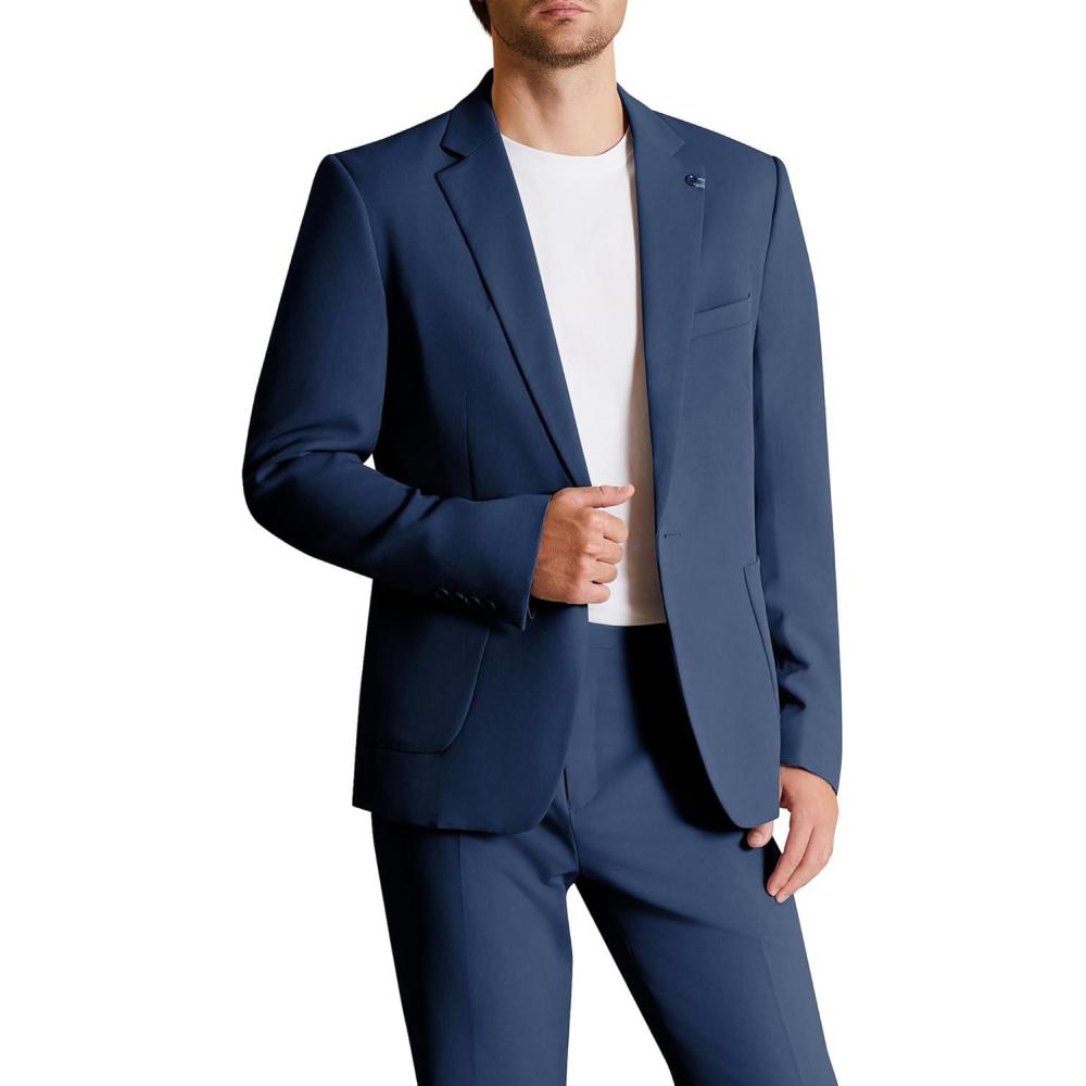 imageWULFUL Mens 2 Piece Slim Fit Suit Set One Button Blazer Jacket Pants SetNavy