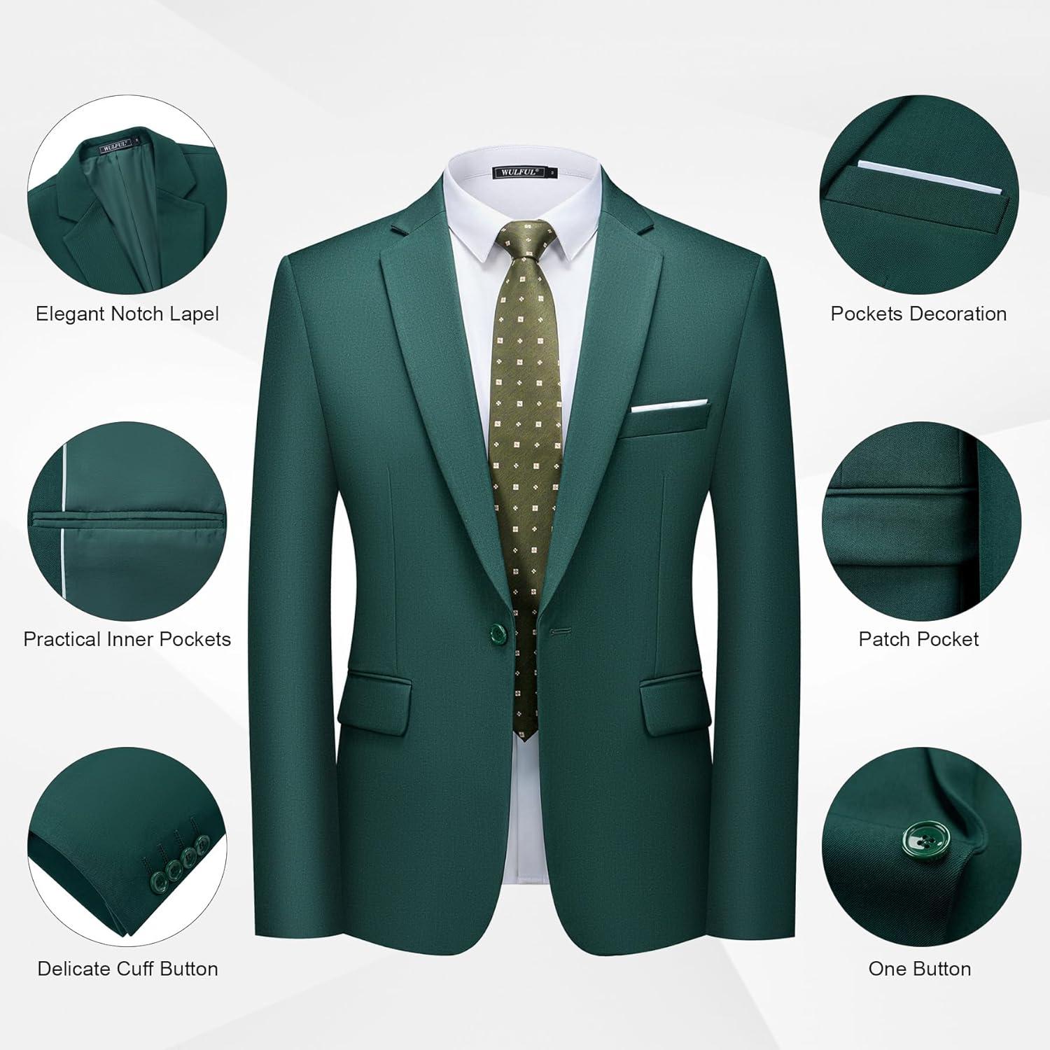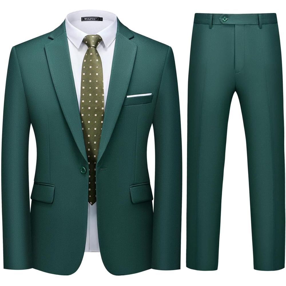 imageWULFUL Mens 2 Piece Slim Fit Suit Set One Button Blazer Jacket Pants Tuxedo Set for Party Wedding and BusinessBlackish Green