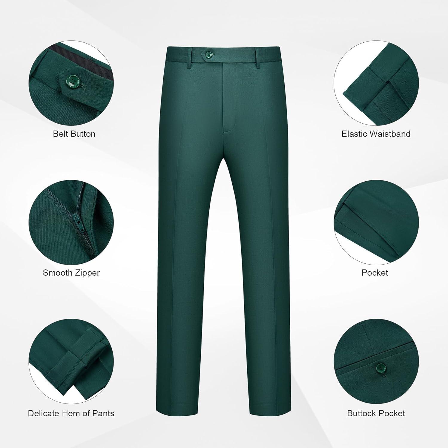 WULFUL Men’s 2 Piece Slim Fit Suit Set One Button Blazer Jacket Pants Tuxedo Set for Party, Wedding and Business(Blackish Green)