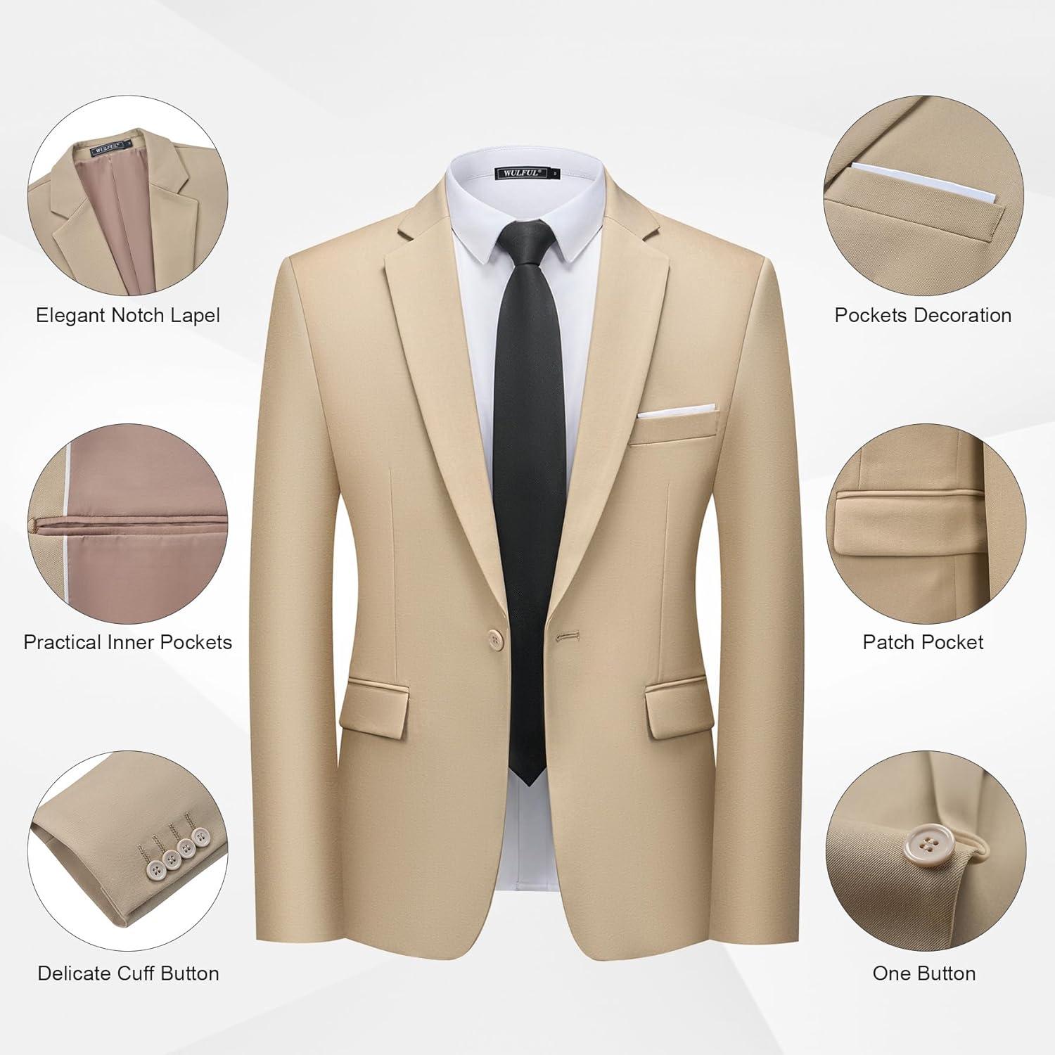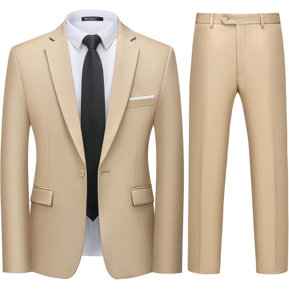 WULFUL Men's 2 Piece Slim Fit Suit Set One Button Blazer Jacket Pants Tuxedo Set for Party, Wedding and Business(Champagne)