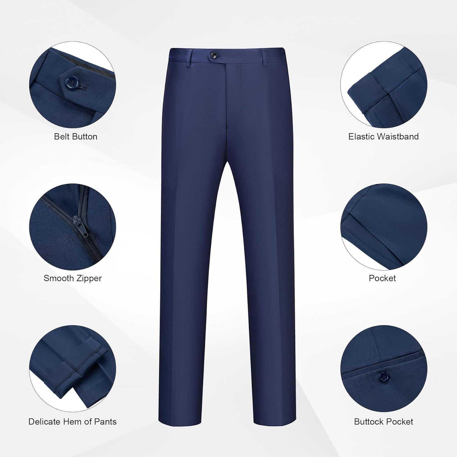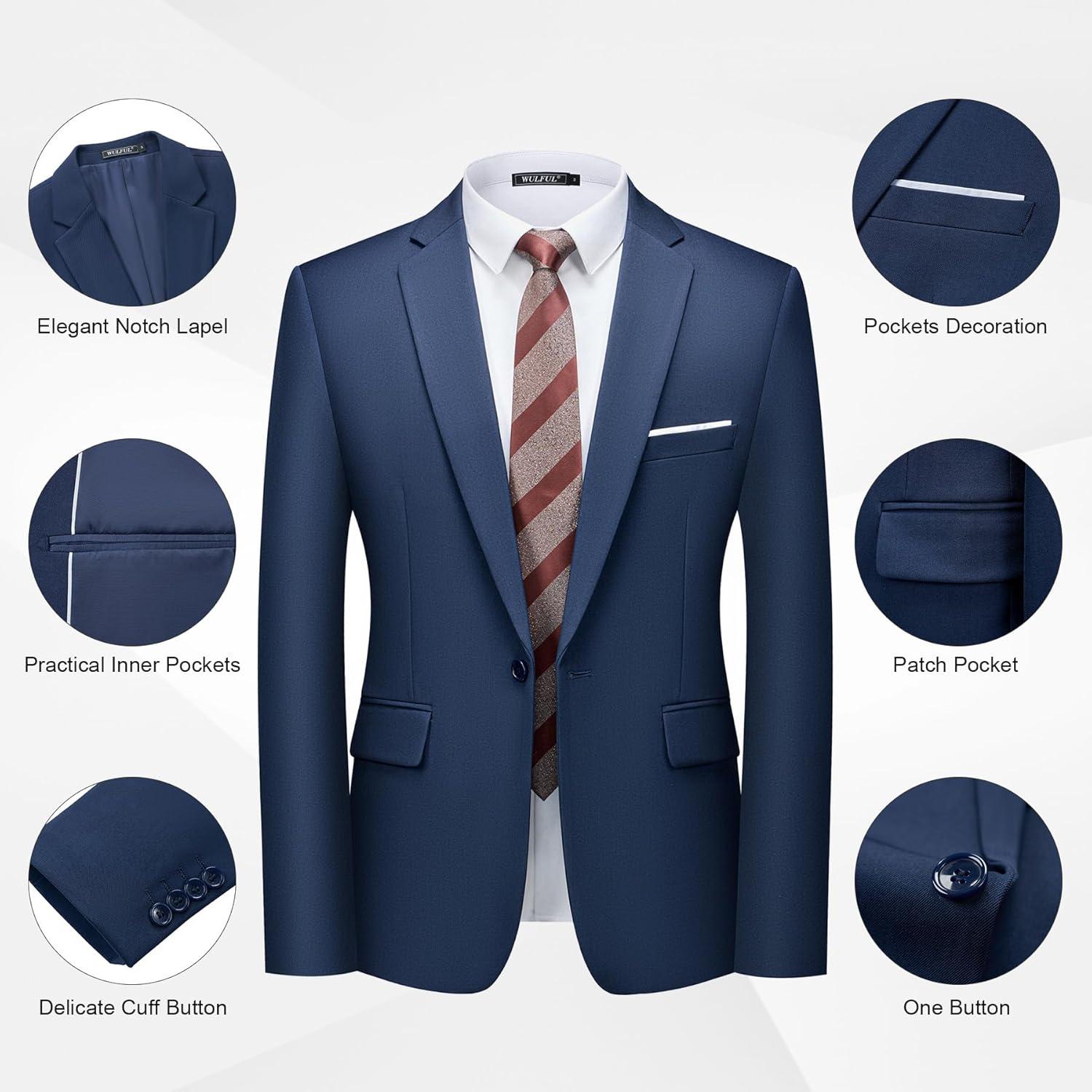 WULFUL Men's 2 Piece Slim Fit Suit Set One Button Blazer Jacket Pants Tuxedo Set for Party, Wedding and Business(Navy)