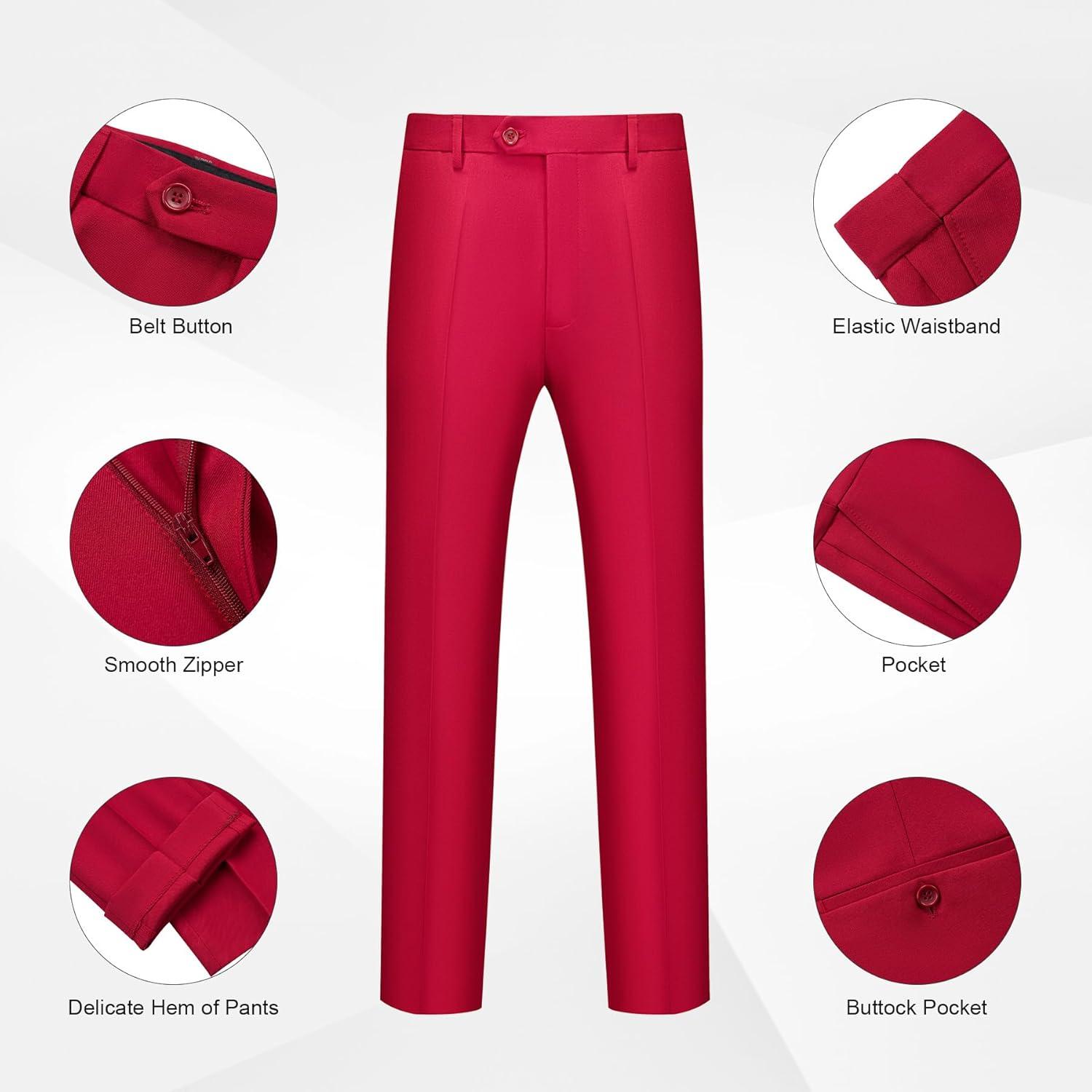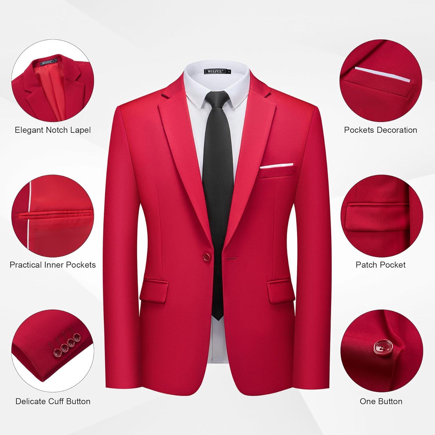 WULFUL Men's 2 Piece Slim Fit Suit Set One Button Blazer Jacket Pants Tuxedo Set for Party, Wedding and Business(Red)
