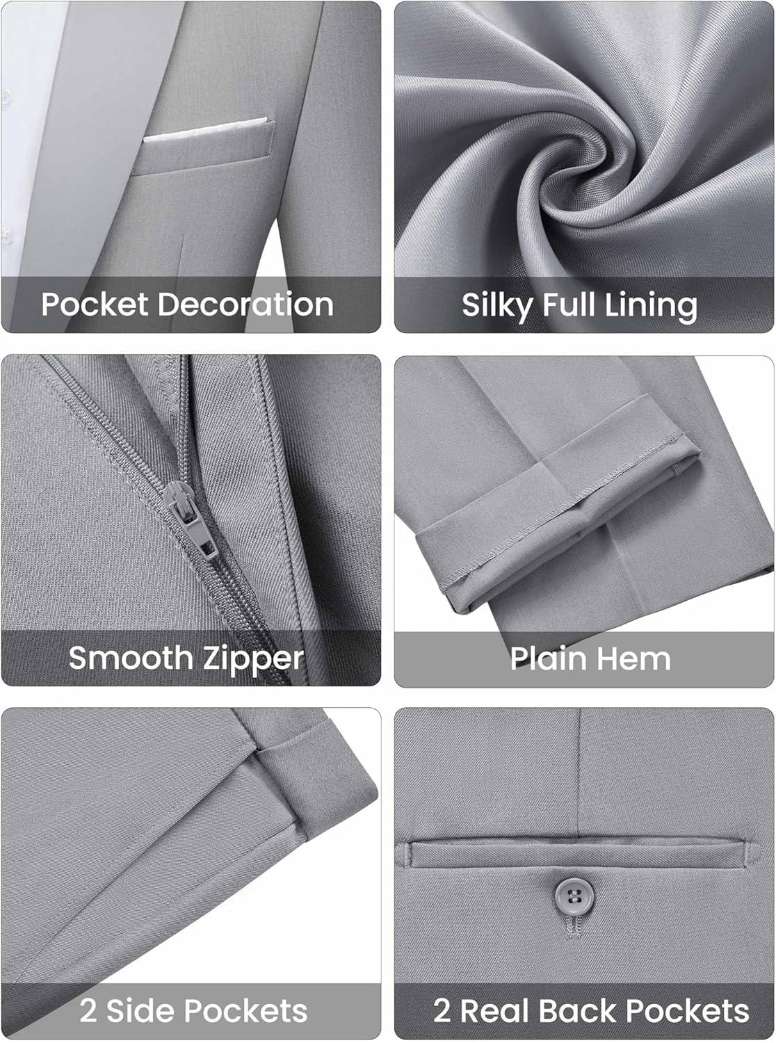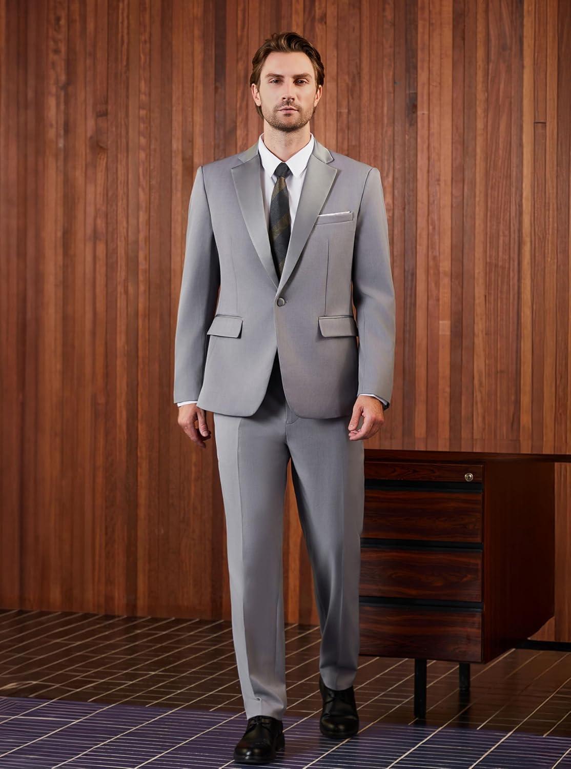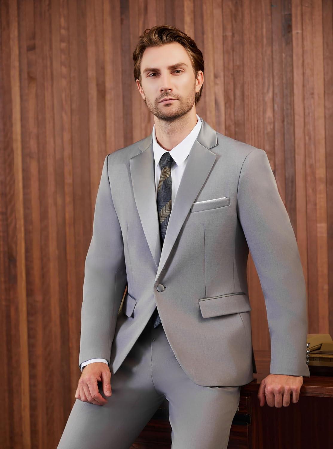 WULFUL Men’s 2 Piece Slim Fit Suit Set One Button Blazer Jacket Pants Tuxedo Set for Prom, Wedding and Business(Light Grey- Light Grey Lapel)