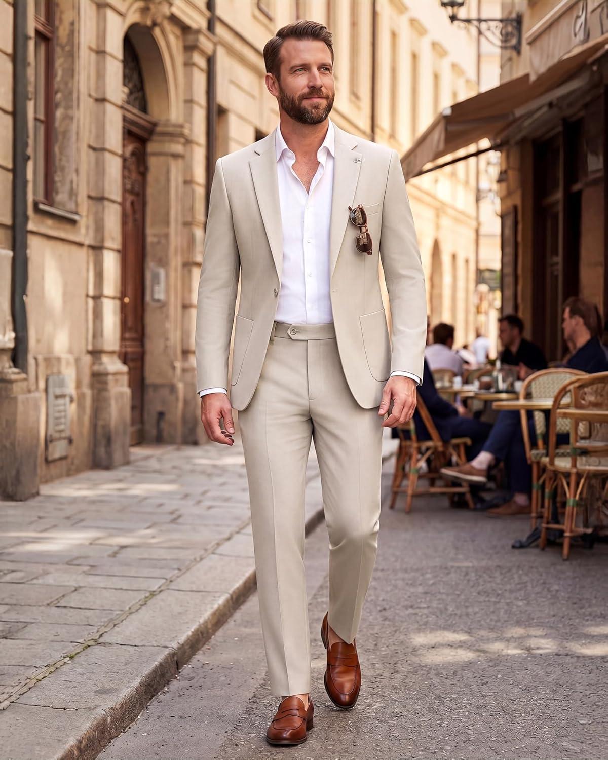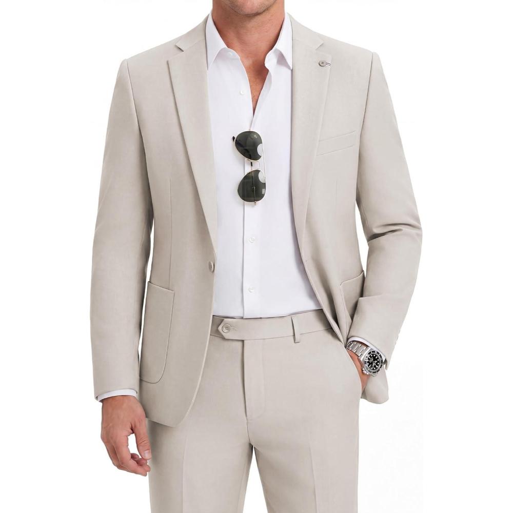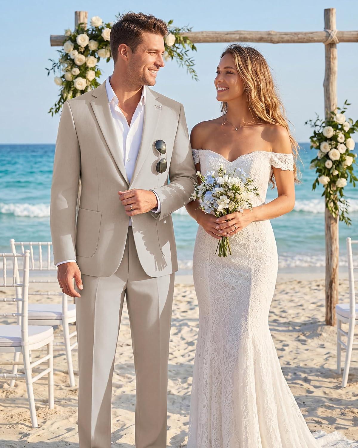 WULFUL Men's 2 Piece Slim Fit Suit Set One Button Casual Blazer Jacket Pants Set,Classic Fit Suits for Men Wedding Business(Champagne)