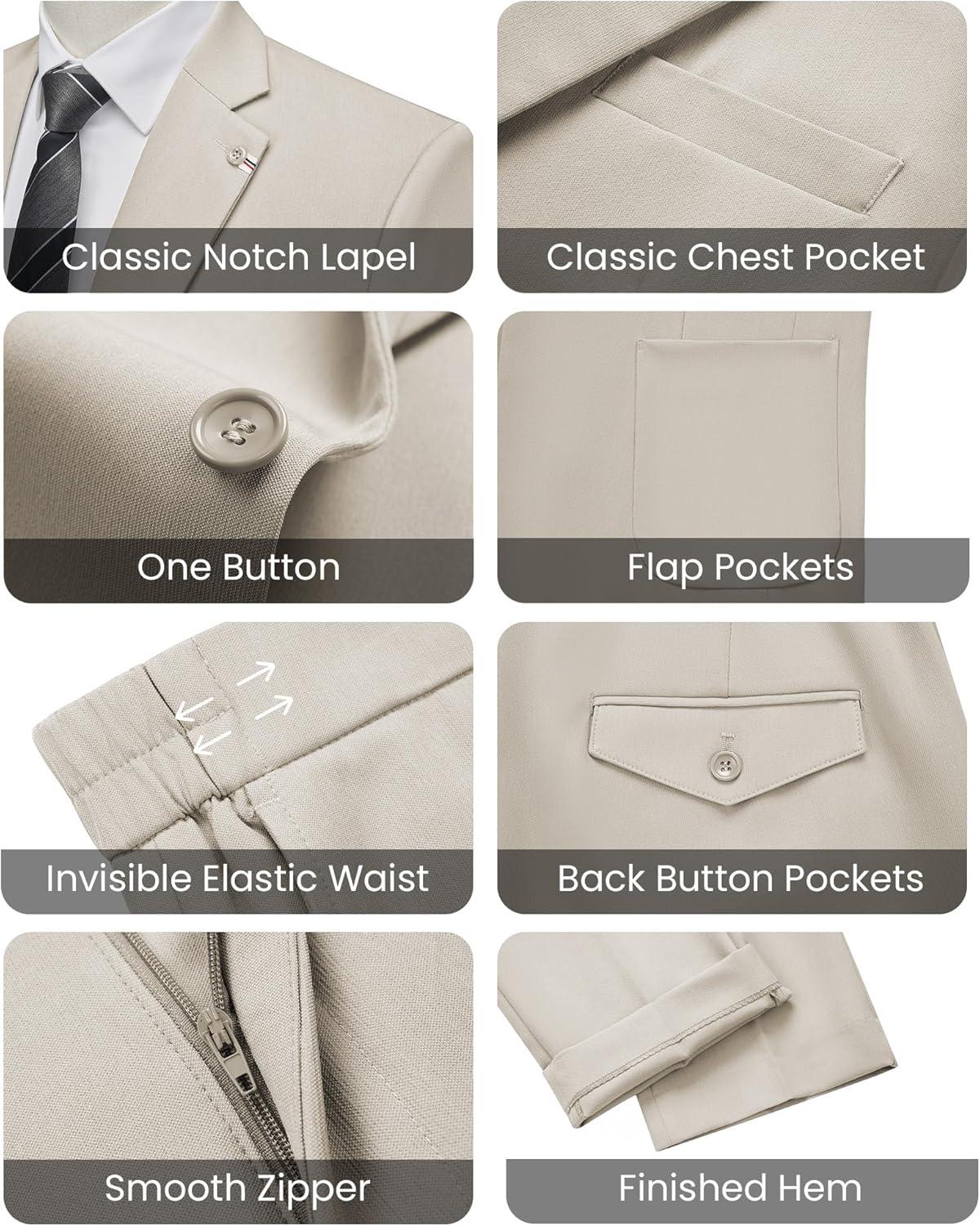 WULFUL Men’s 2 Piece Slim Fit Suit Set One Button Casual Blazer Jacket Pants Set,Classic Fit Suits for Men Wedding Business(Champagne)