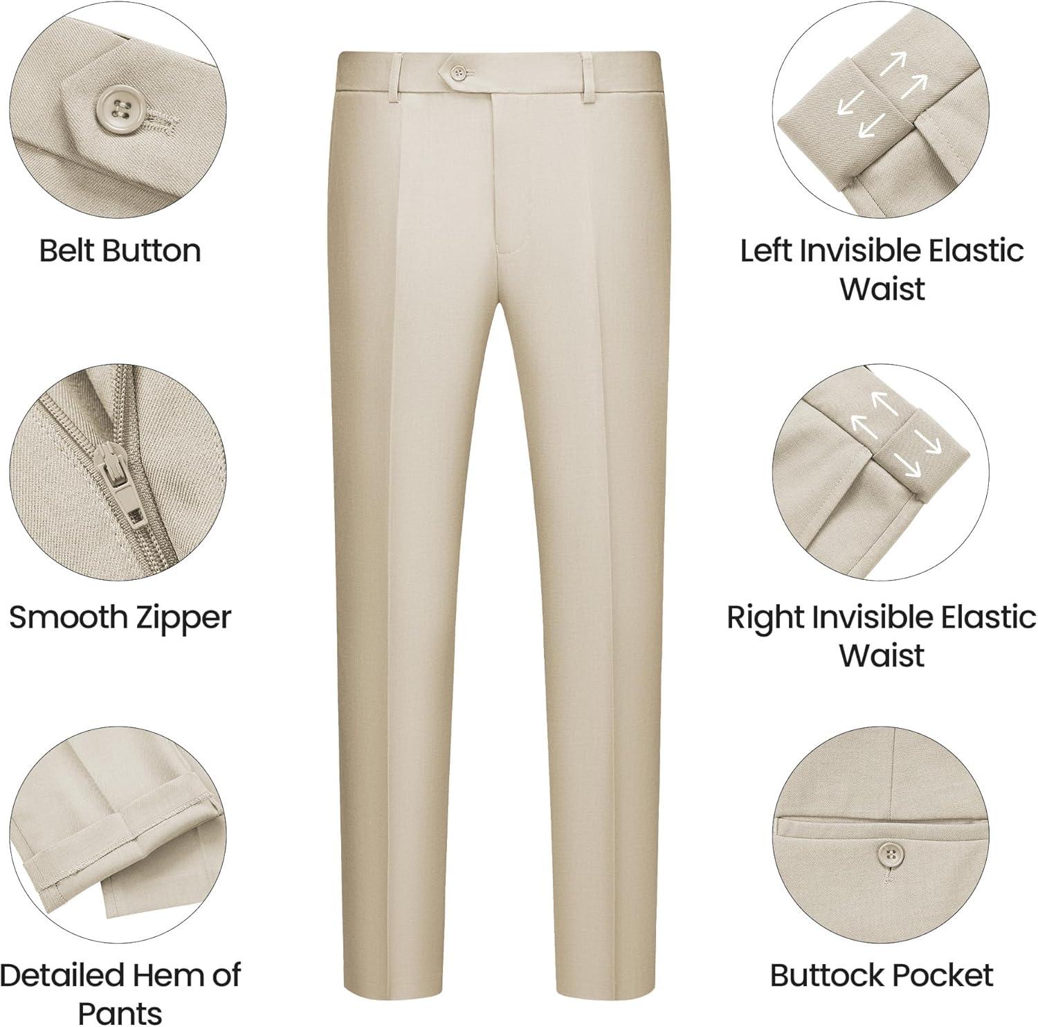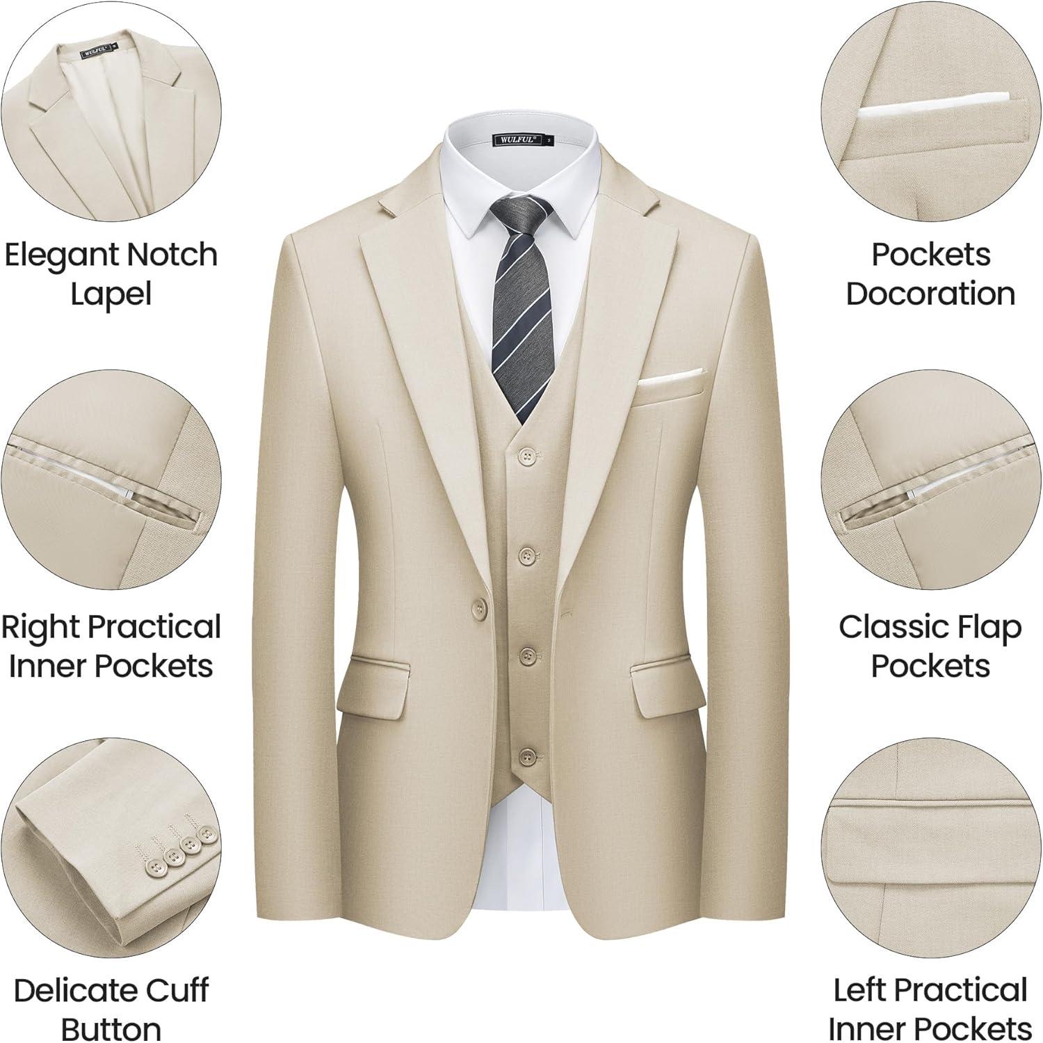 imageWULFUL Mens 3 Piece Slim Fit Suit Set One Button Blazer Jacket Pants Tuxedo SetChampagne