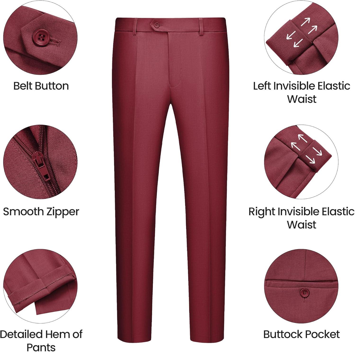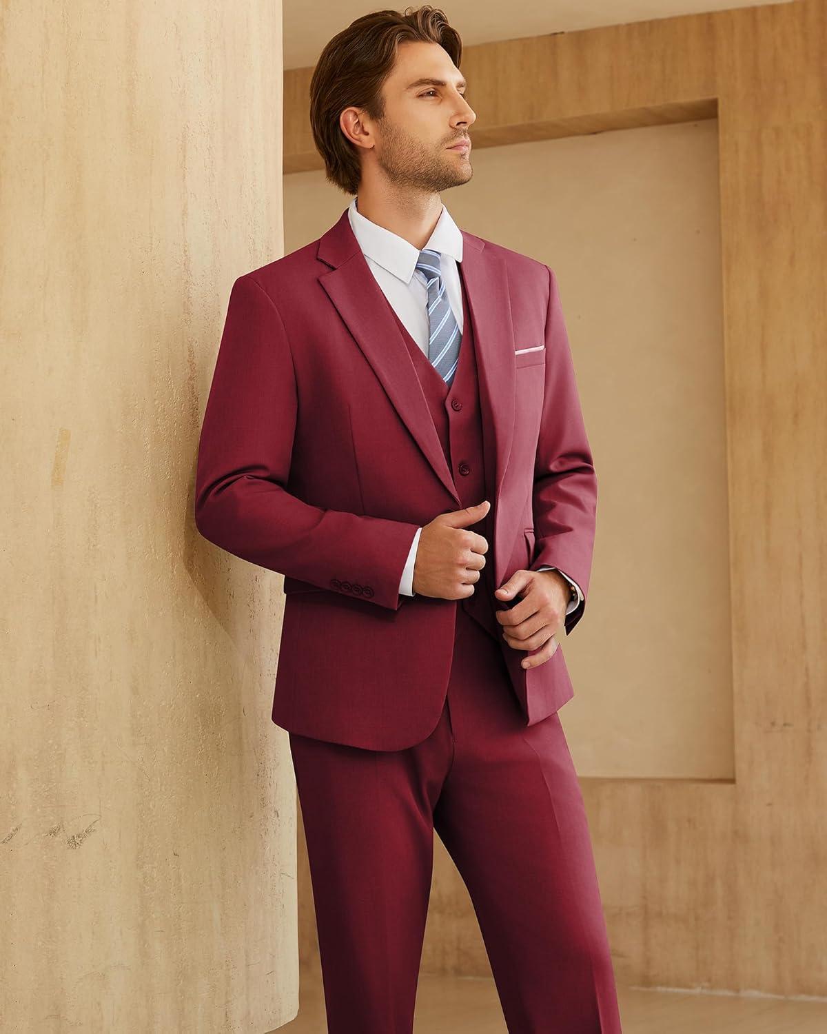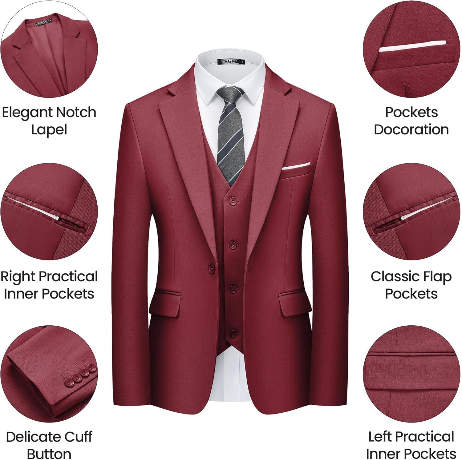 WULFUL Men's 3 Piece Slim Fit Suit Set One Button Blazer Jacket Pants Tuxedo Set(Red)