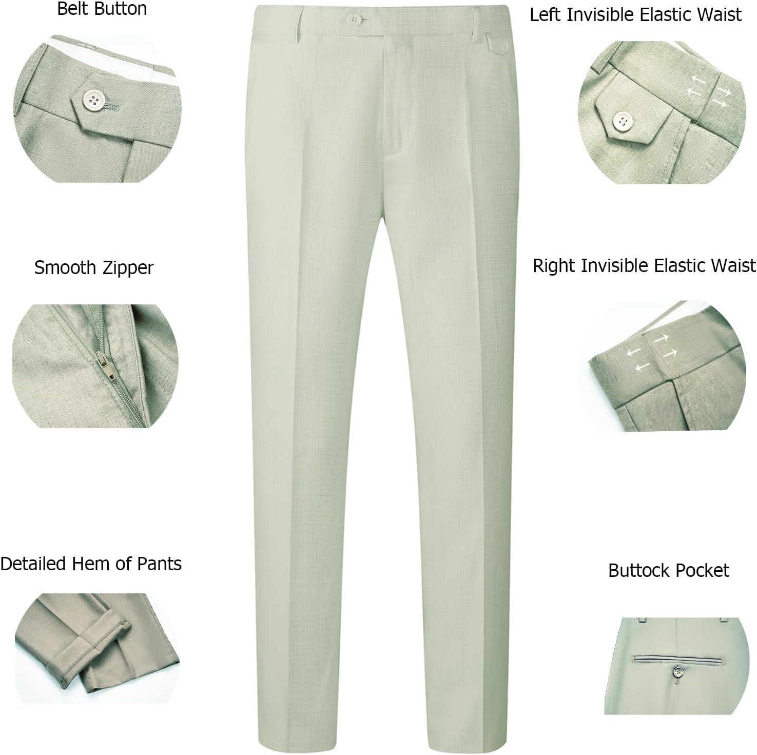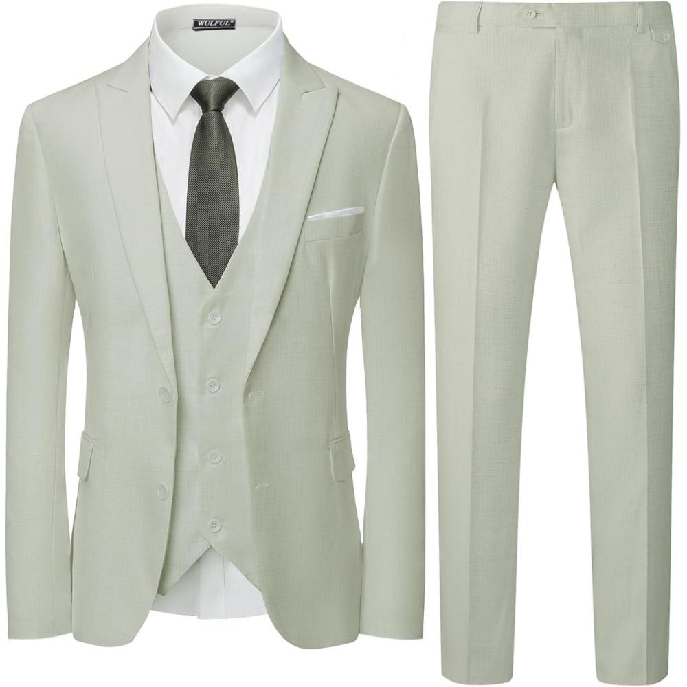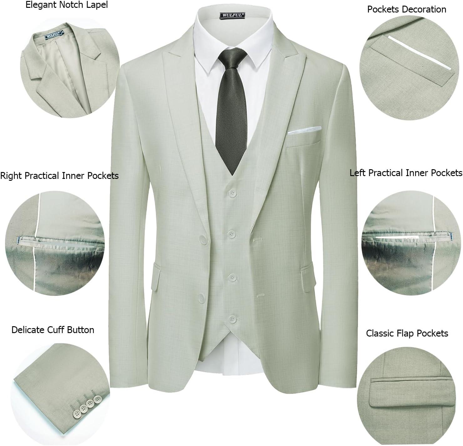 WULFUL Men's 3 Piece Slim Fit Suit Set Two Button Blazer Jacket Vest Pants Tuxedo Set for Party, Wedding and Business(Celery Green)