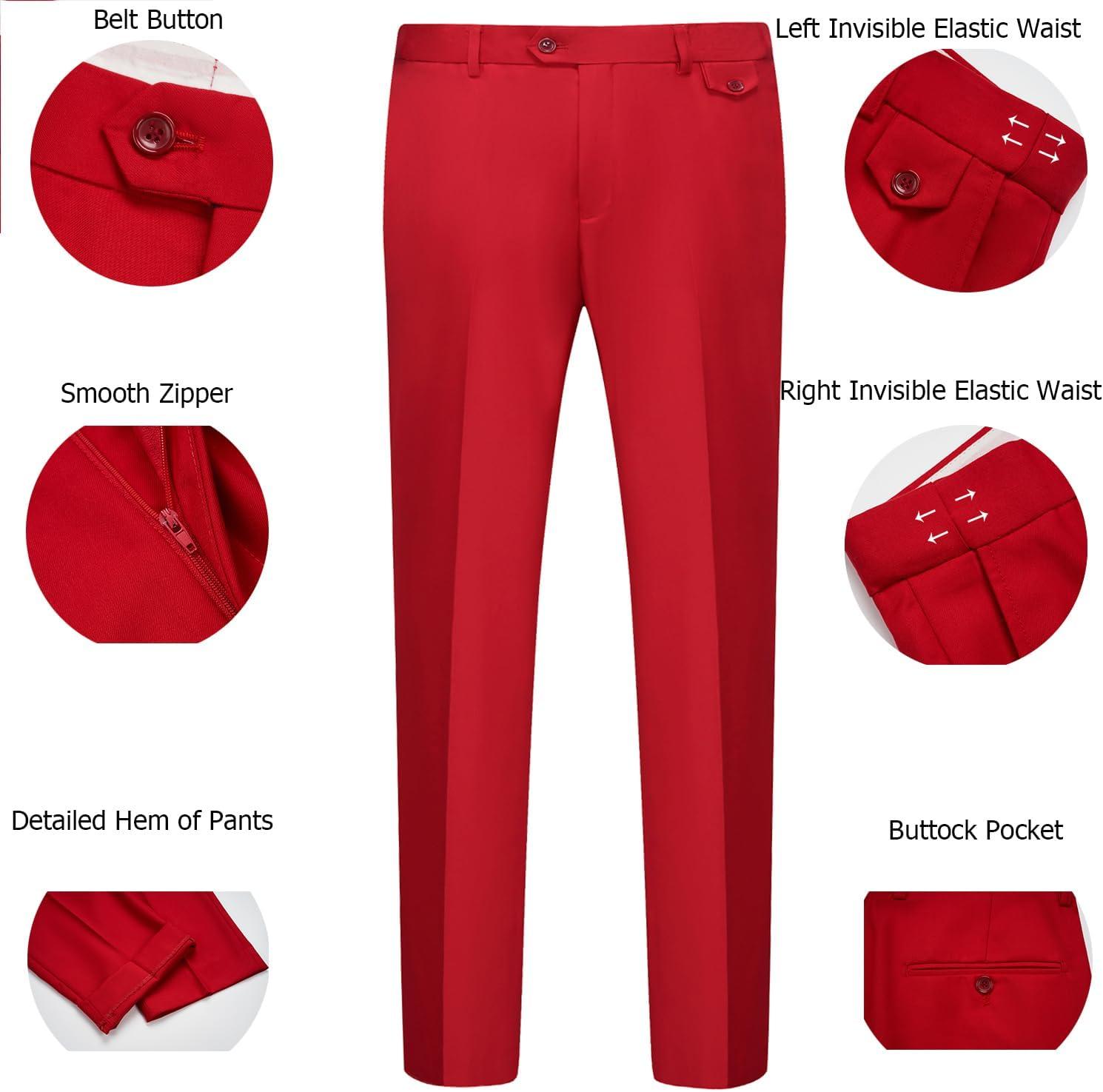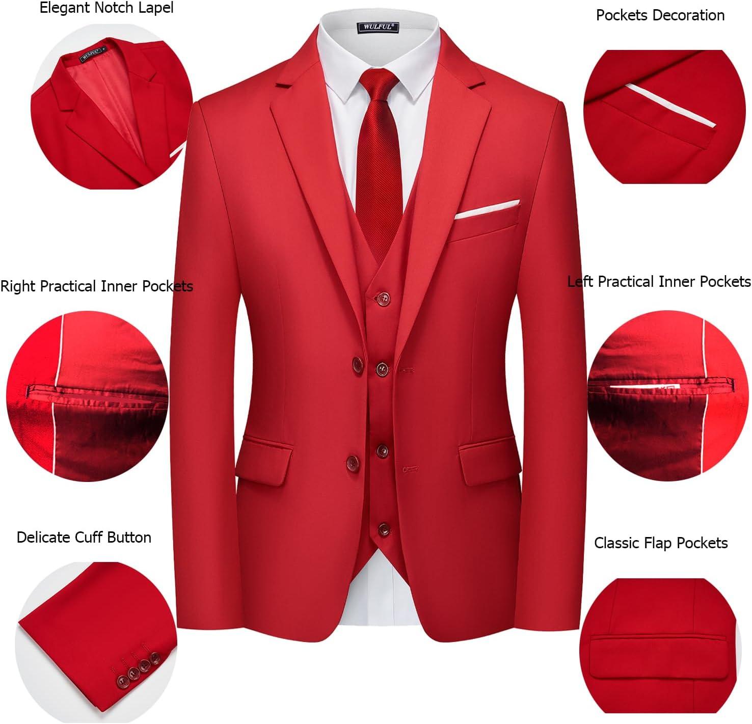 WULFUL Men's 3 Piece Slim Fit Suit Set Two Button Blazer Jacket Vest Pants Tuxedo Set for Party, Wedding and Business(Red)