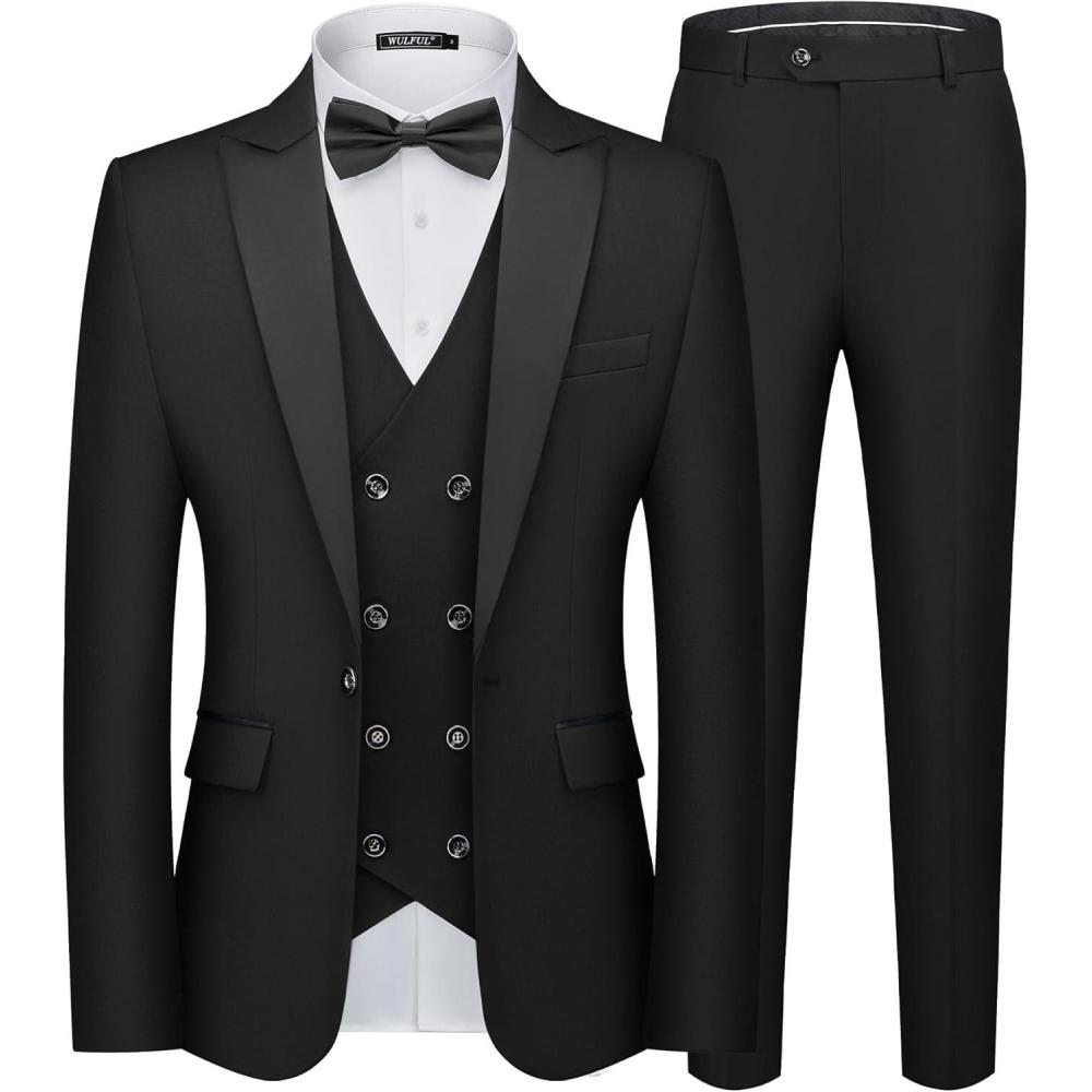 Be the first to review “WULFUL Men’s 3 Piece Suits Slim Fit Tuxedo Suit Set Double Breasted Suit Jacket Vest Pants Set for Wedding Prom(Black)” Cancel reply