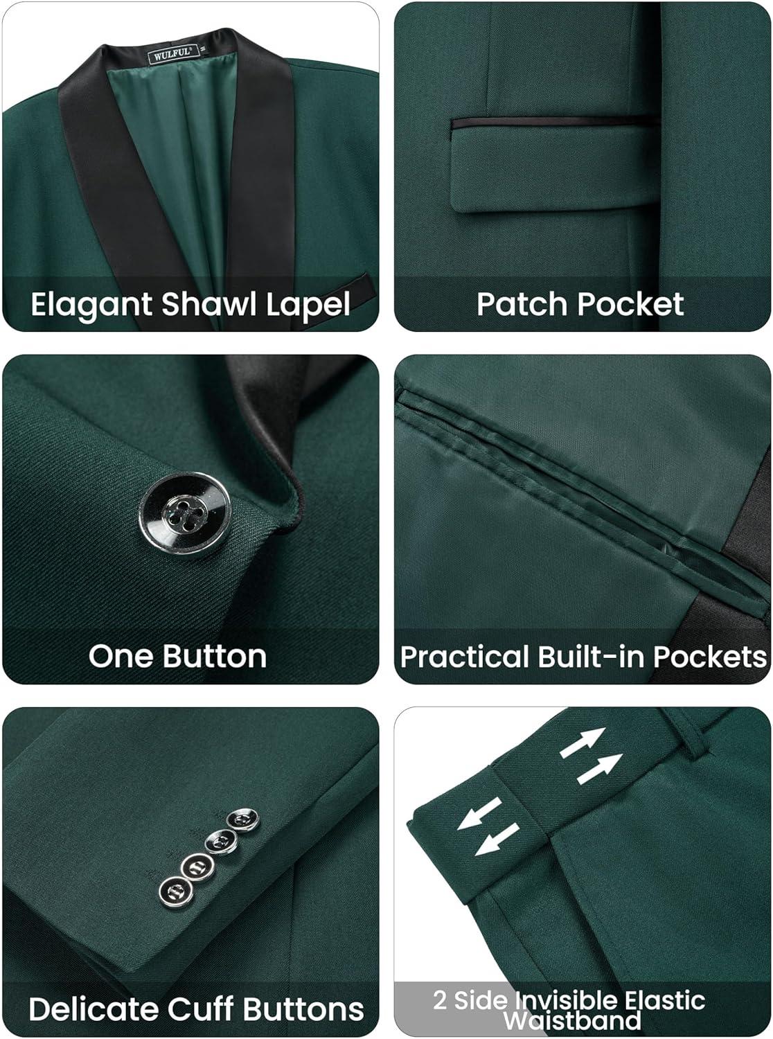 Be the first to review “WULFUL Men’s 3 Piece Suits Slim Fit Tuxedo Suit Set One Button Shawl Lapel Blazer Jacket Vest Pants Set for Prom, Business(Dark Green)”