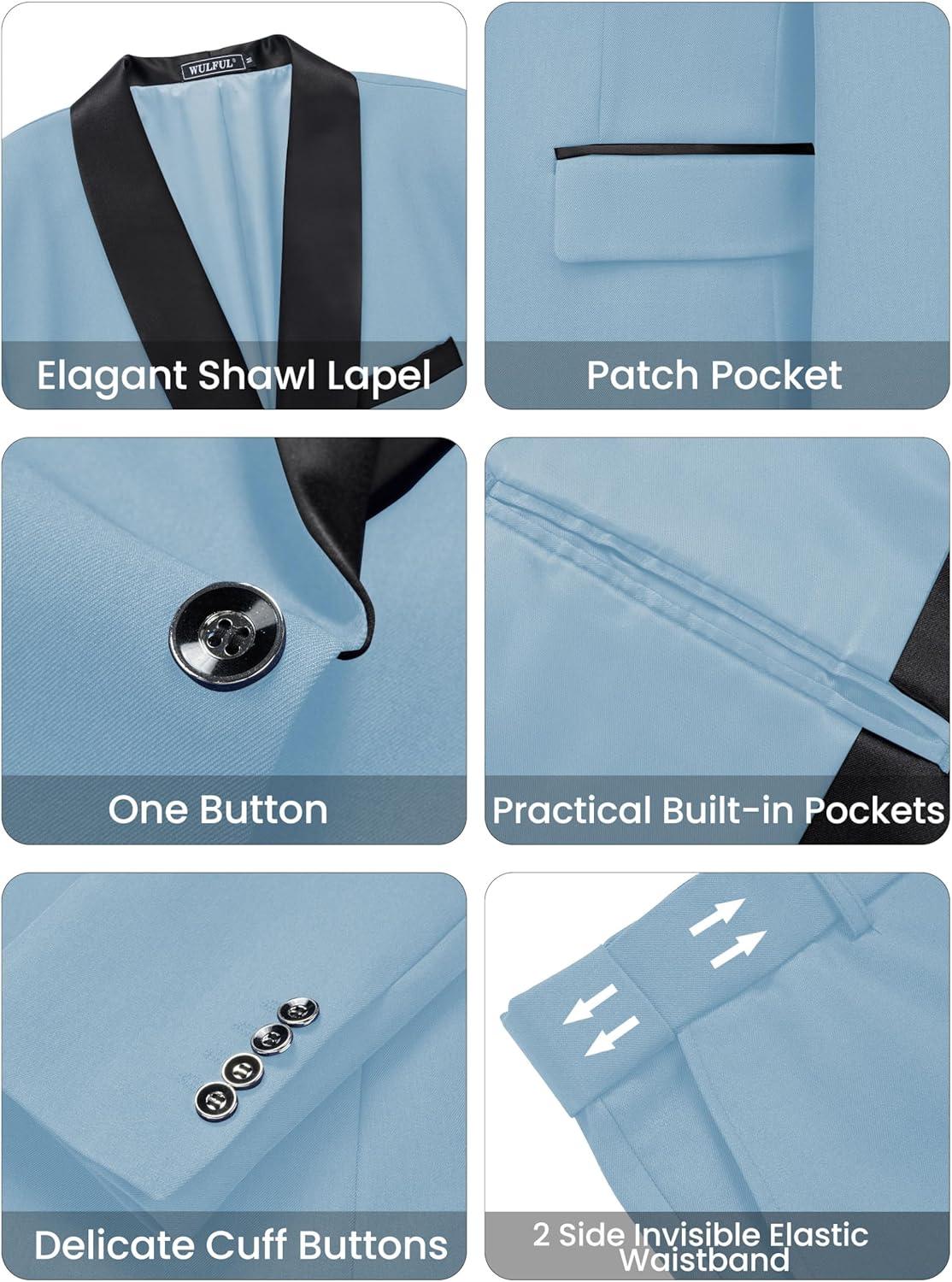 Be the first to review “WULFUL Men’s 3 Piece Suits Slim Fit Tuxedo Suit Set One Button Shawl Lapel Blazer Jacket Vest Pants Set for Prom, Business(Light Blue)”