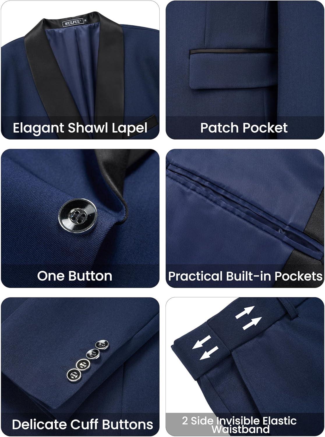 Be the first to review “WULFUL Men’s 3 Piece Suits Slim Fit Tuxedo Suit Set One Button Shawl Lapel Blazer Jacket Vest Pants Set for Prom, Business(Navy)”
