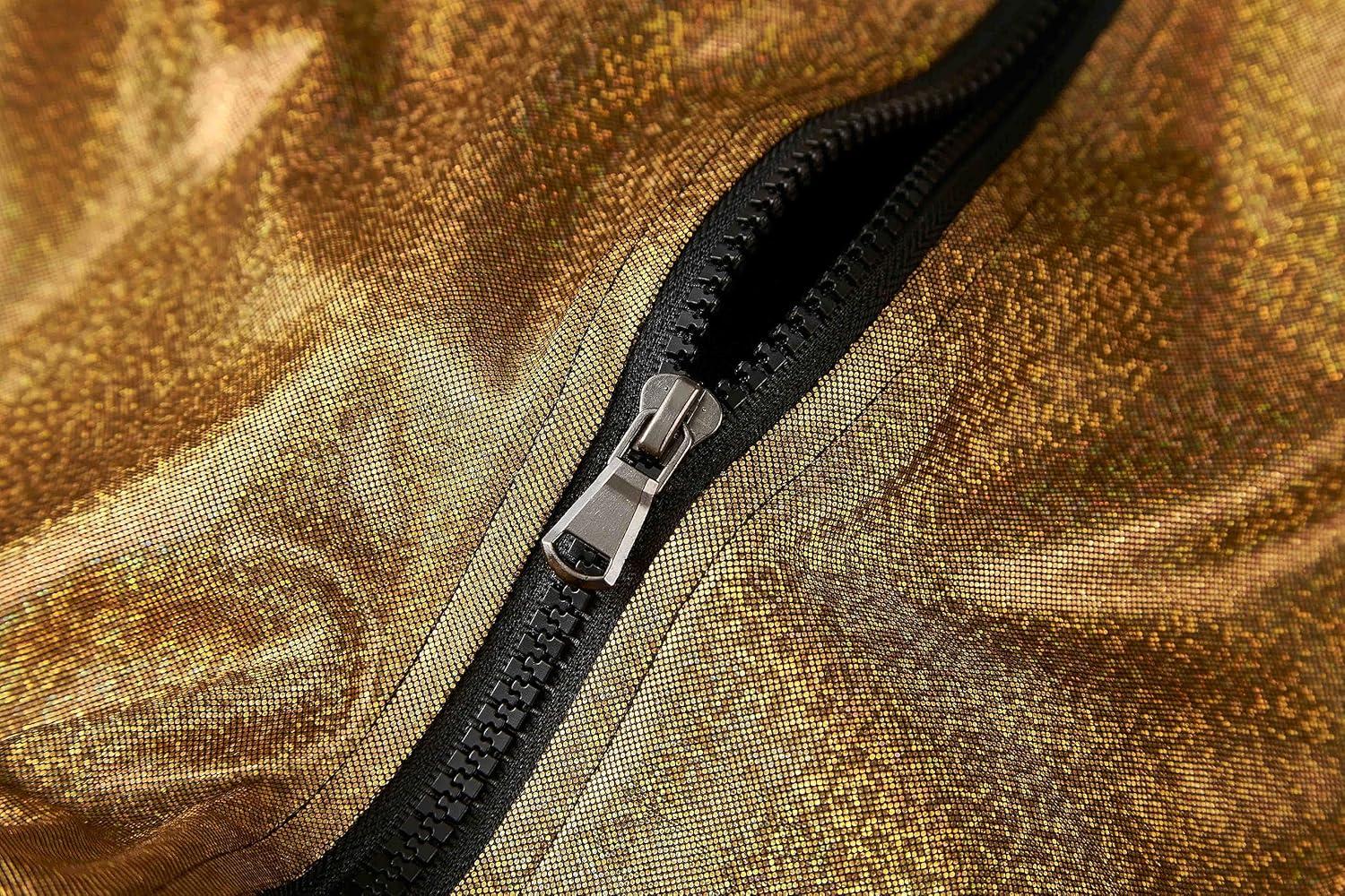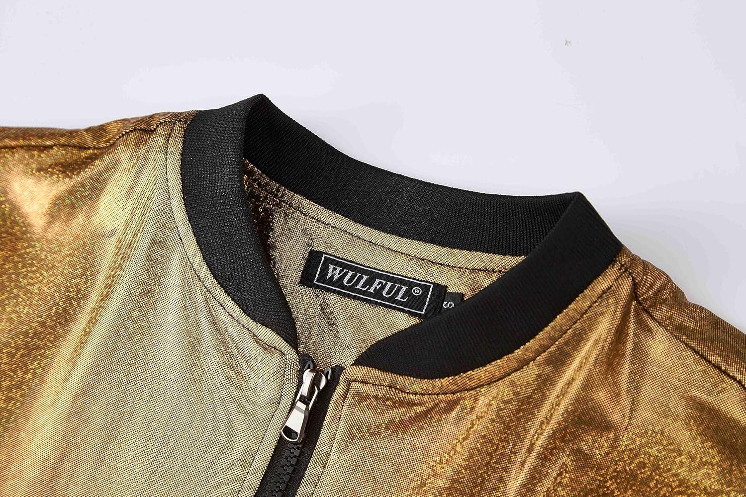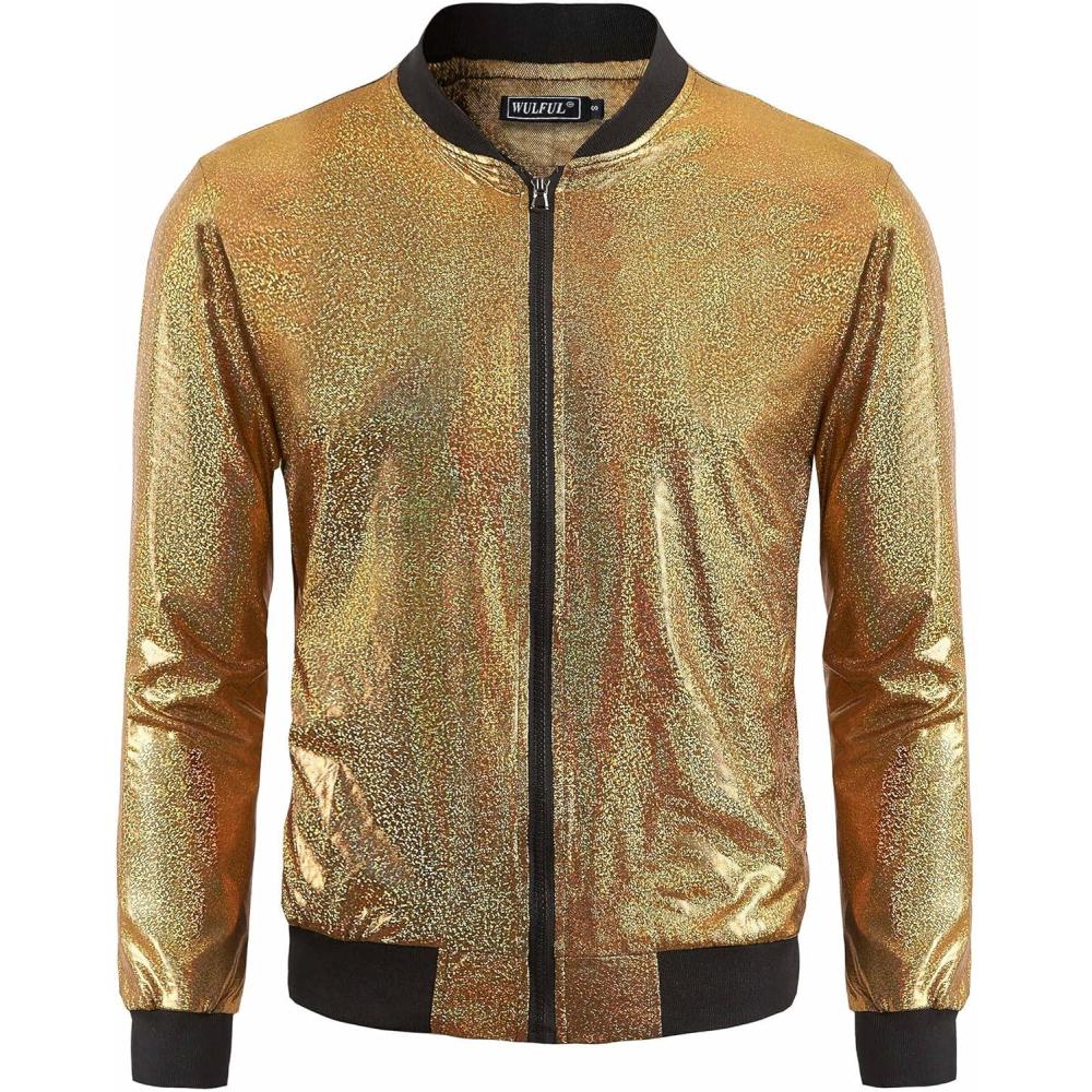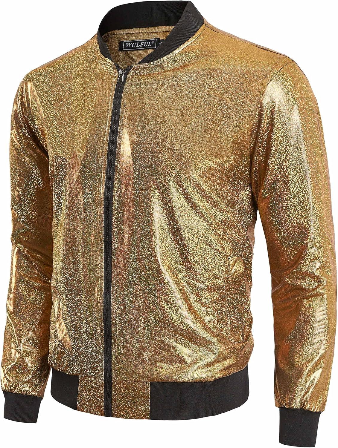 WULFUL Men’s 70s Disco Costume Party Sequin Metallic Varsity Bomber Jacket(Gold02)