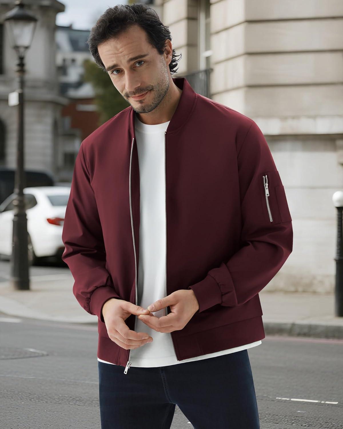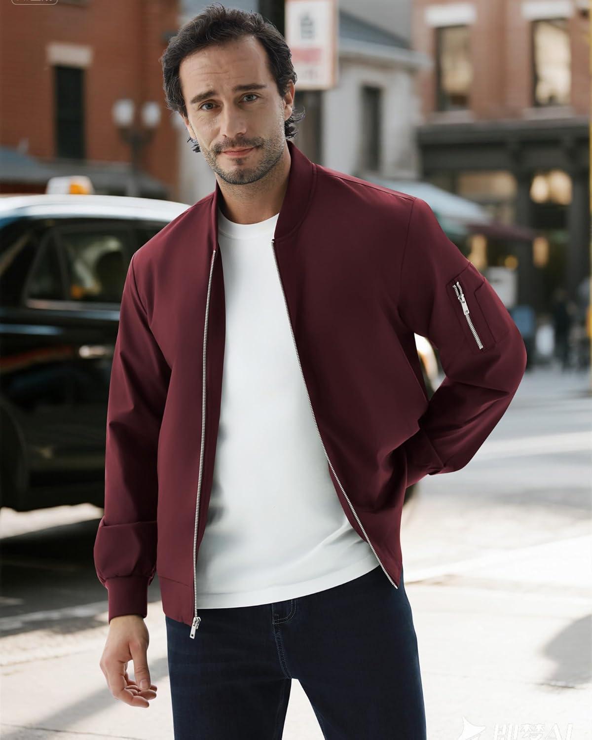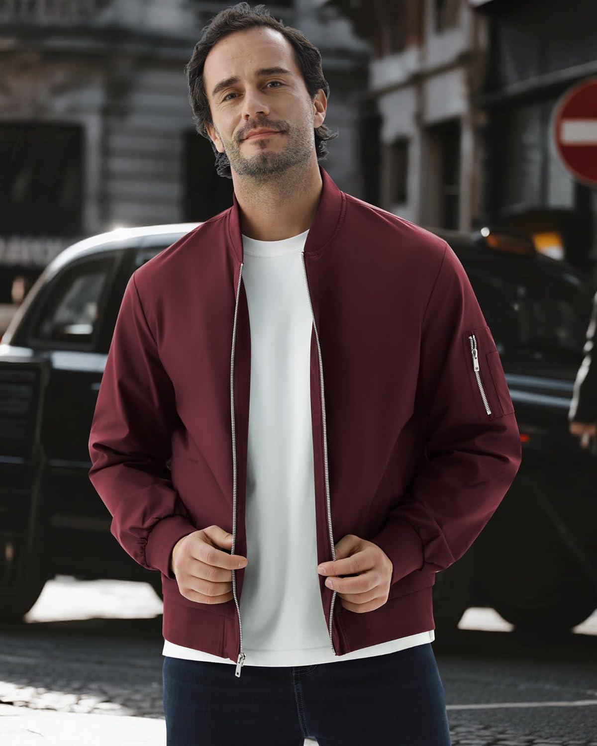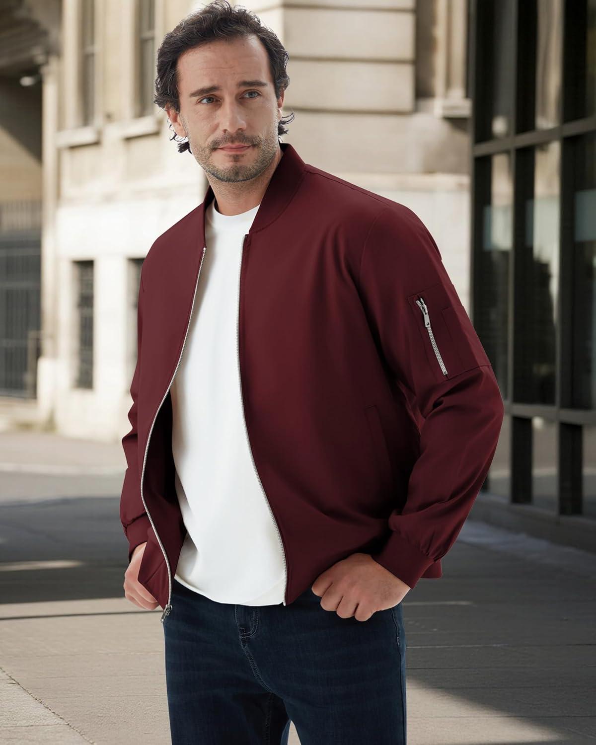 WULFUL Men's Bomber Jacket Lightweight Casual Windbreaker Zip Up Coat with Pocket(Burgundy)