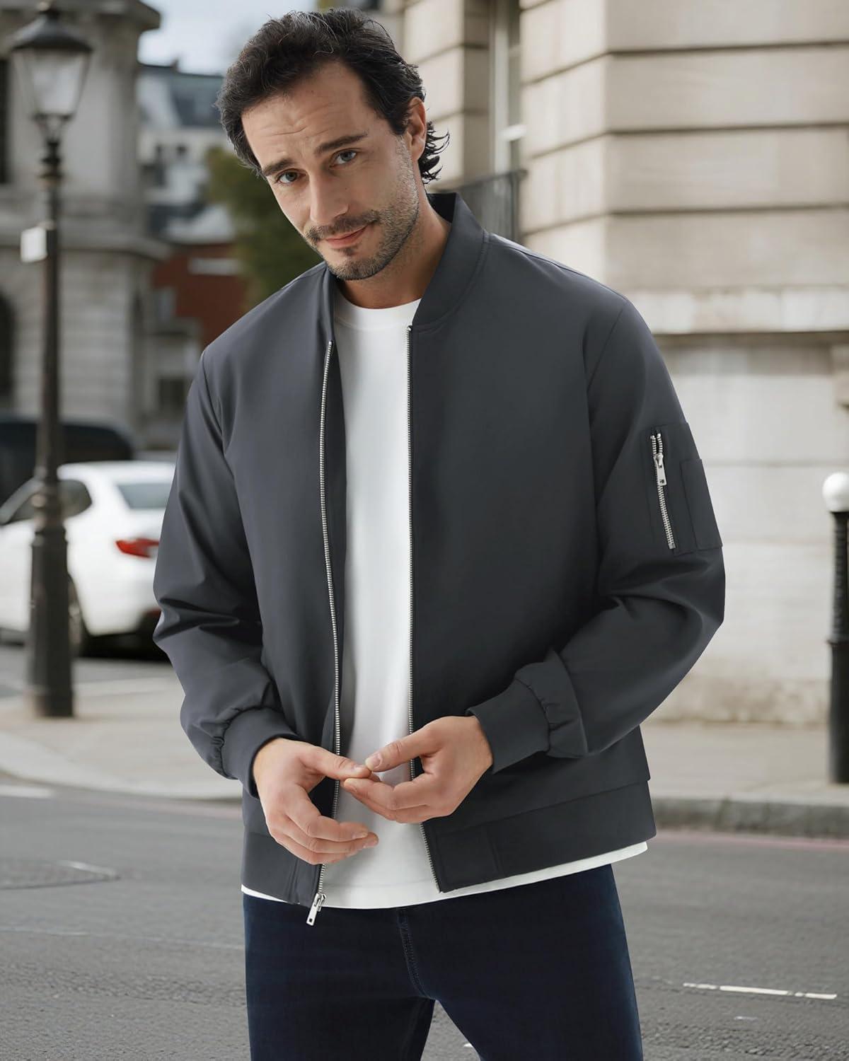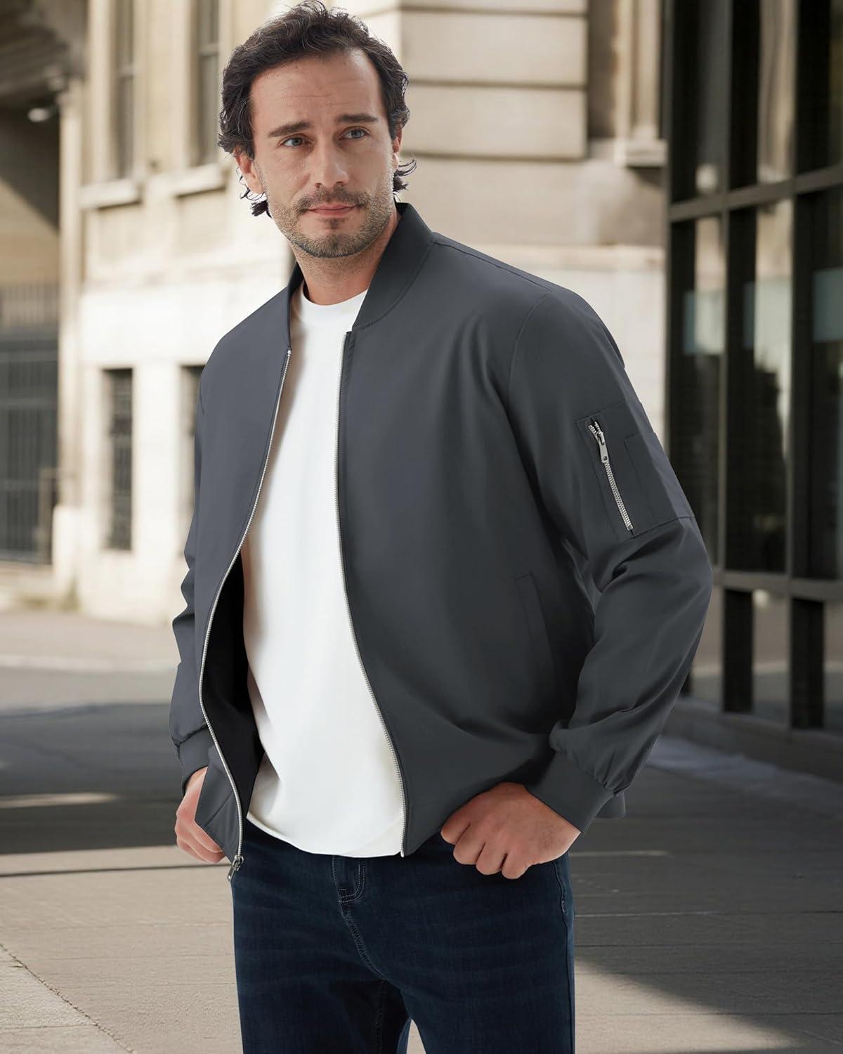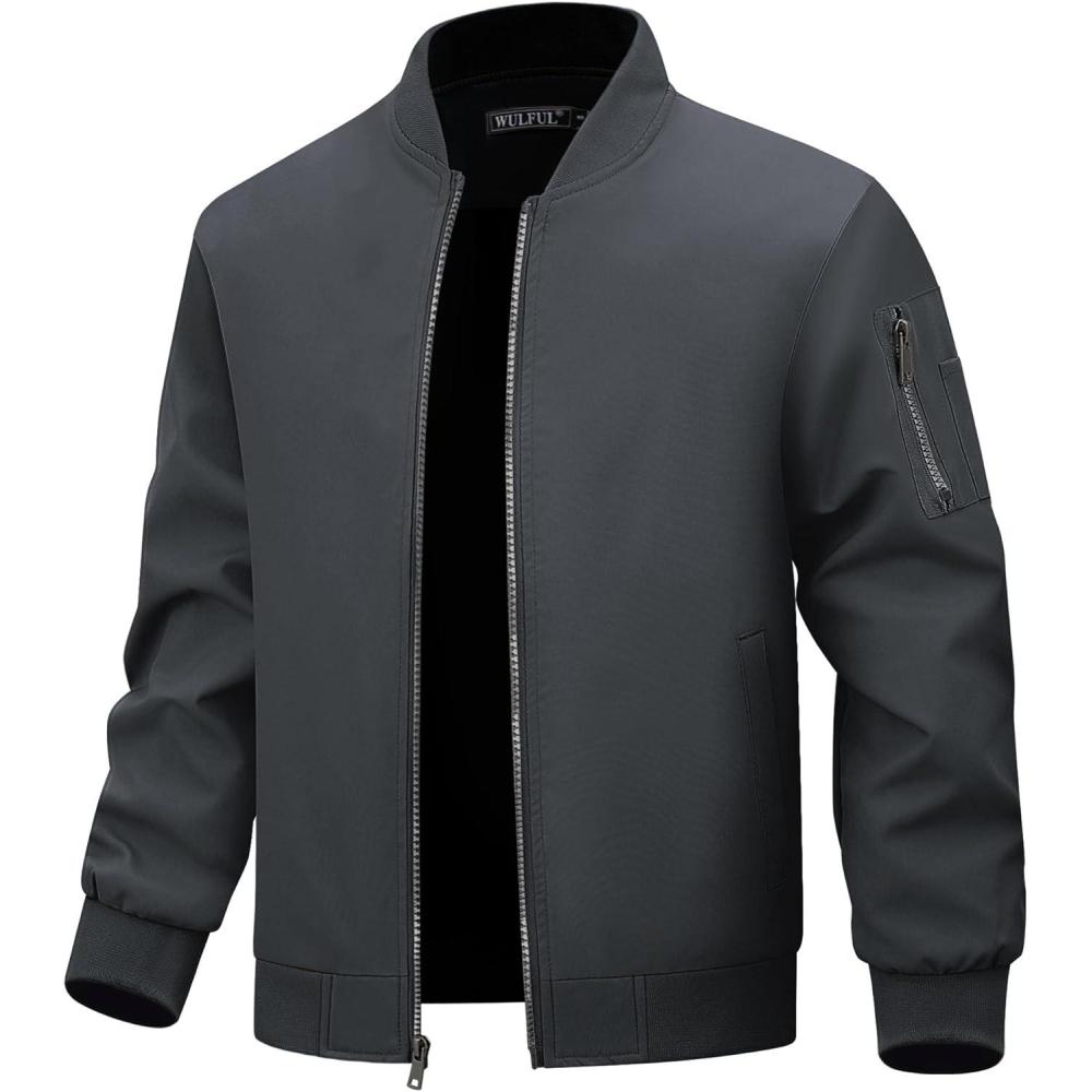 WULFUL Men's Bomber Jacket Lightweight Casual Windbreaker Zip Up Coat with Pocket(Deep Grey)