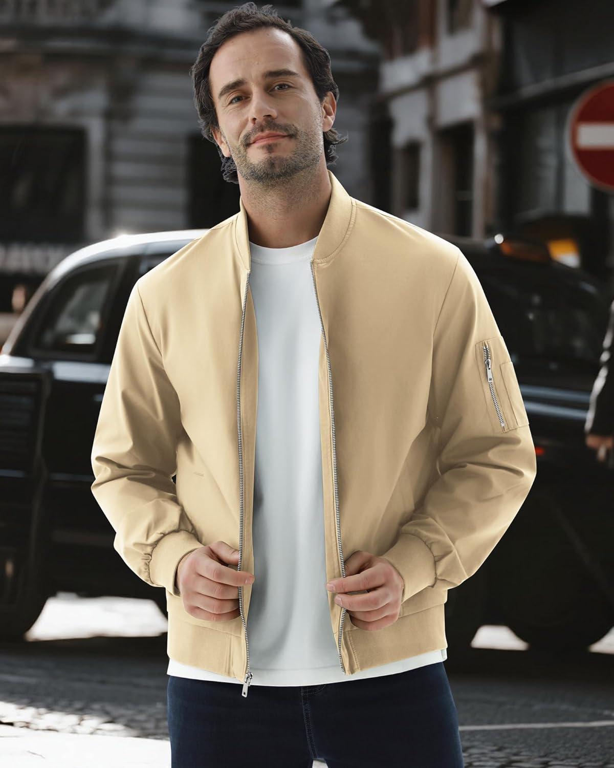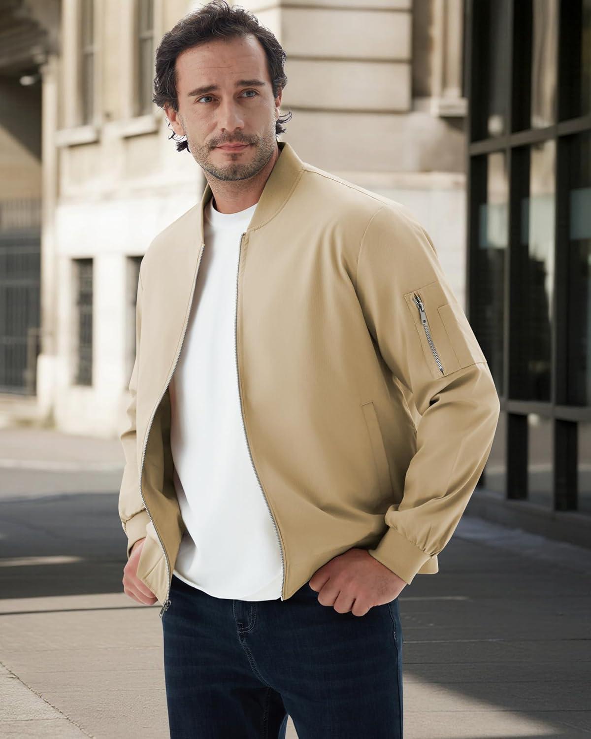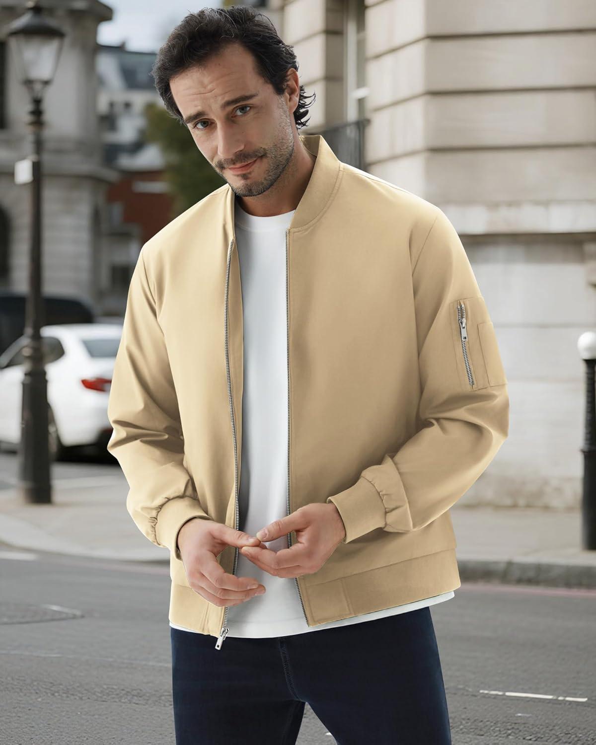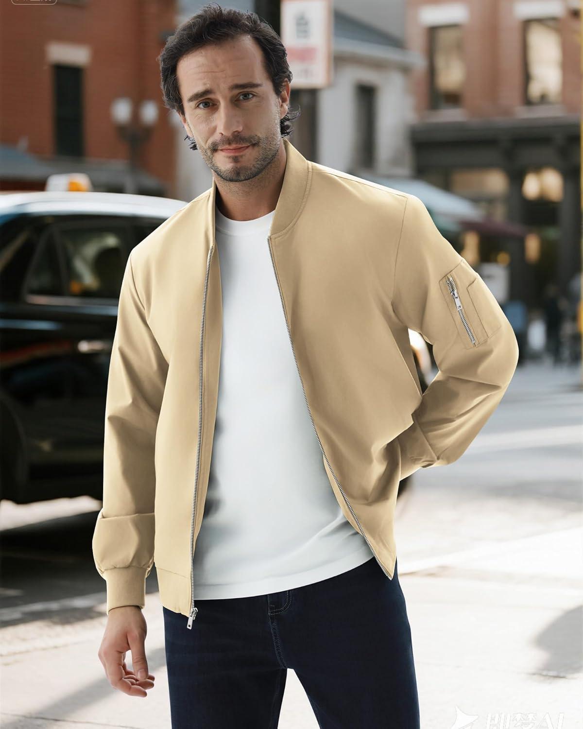 WULFUL Men's Bomber Jacket Lightweight Casual Windbreaker Zip Up Coat with Pocket(Khaki)