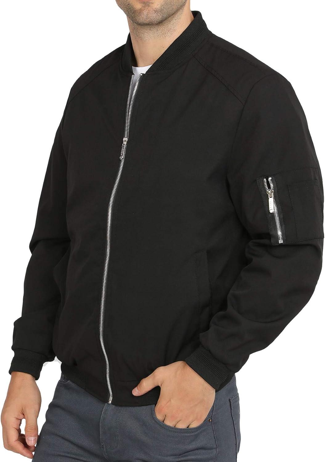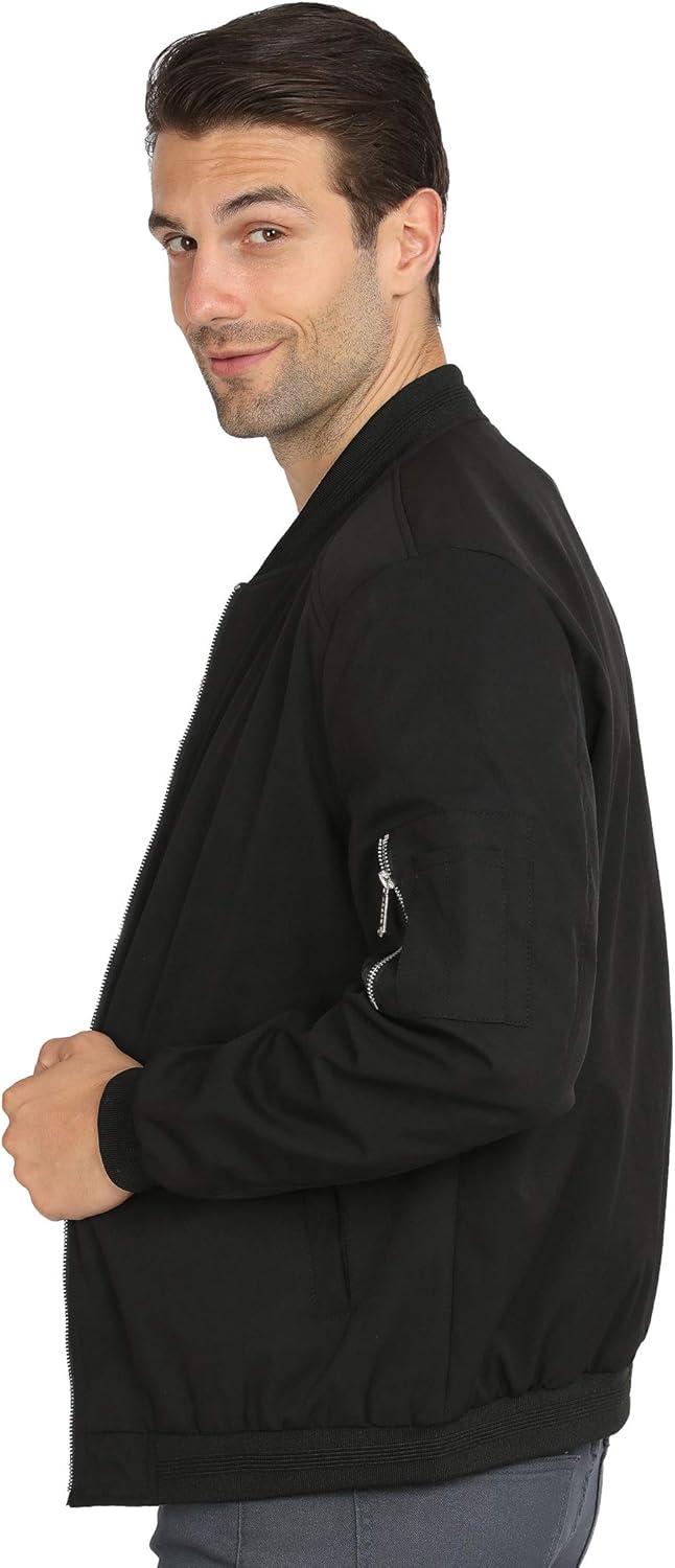 WULFUL Mens Casual Lightweight Jacket Softshell Flight Bomber Jacket Varsity Windbreaker(Black)