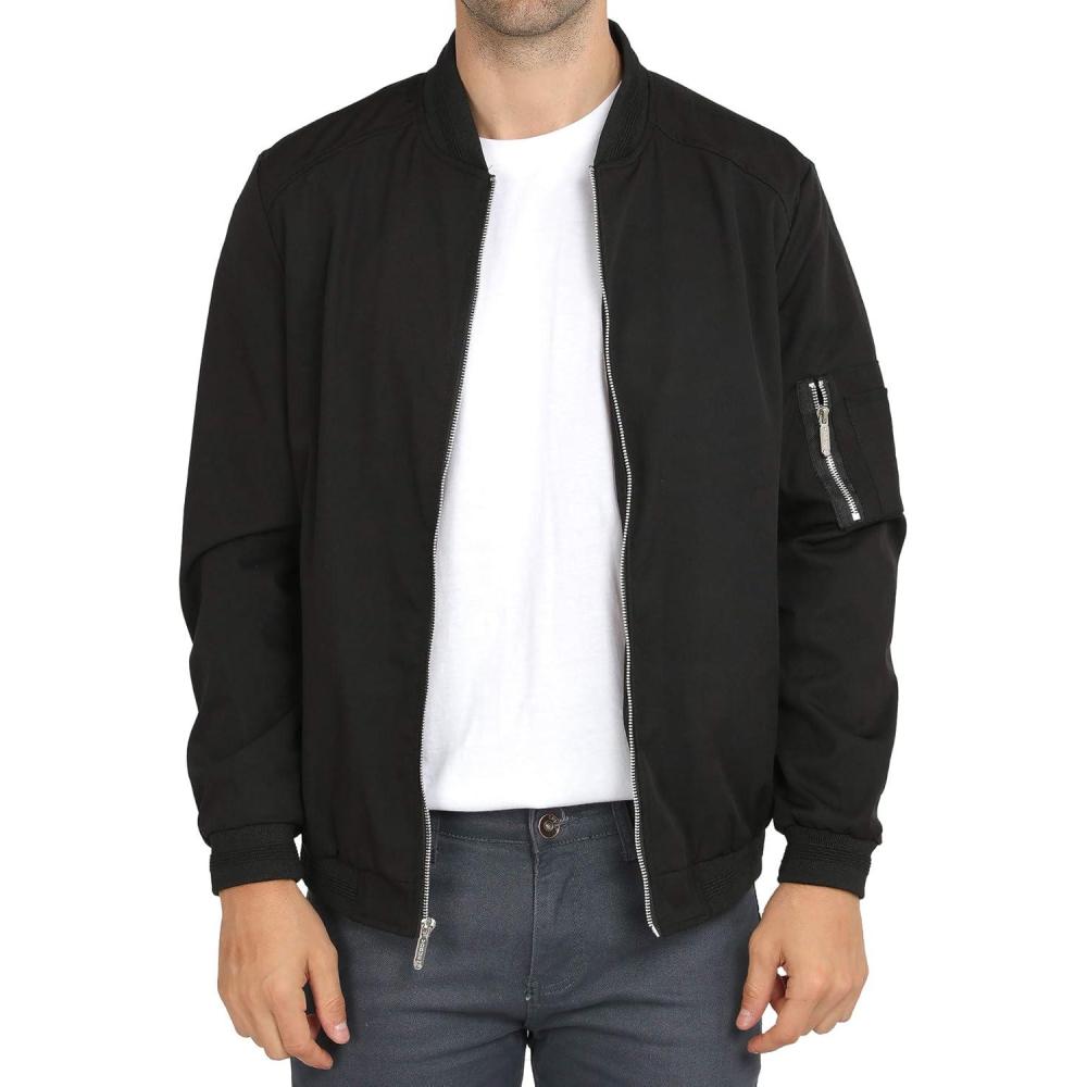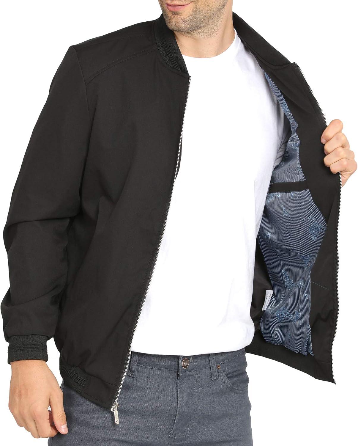 imageWULFUL Mens Casual Lightweight Jacket Softshell Flight Bomber Jacket Varsity WindbreakerBlack
