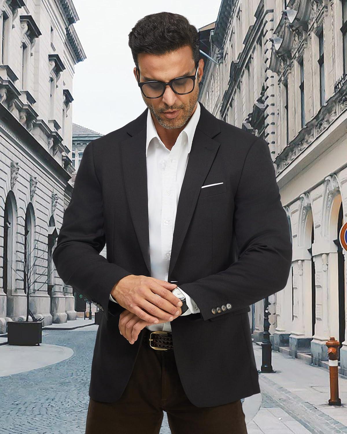 WULFUL Mens Casual Sport Coat Blazer Lightweight One Button Suit Jackets Black-New Large