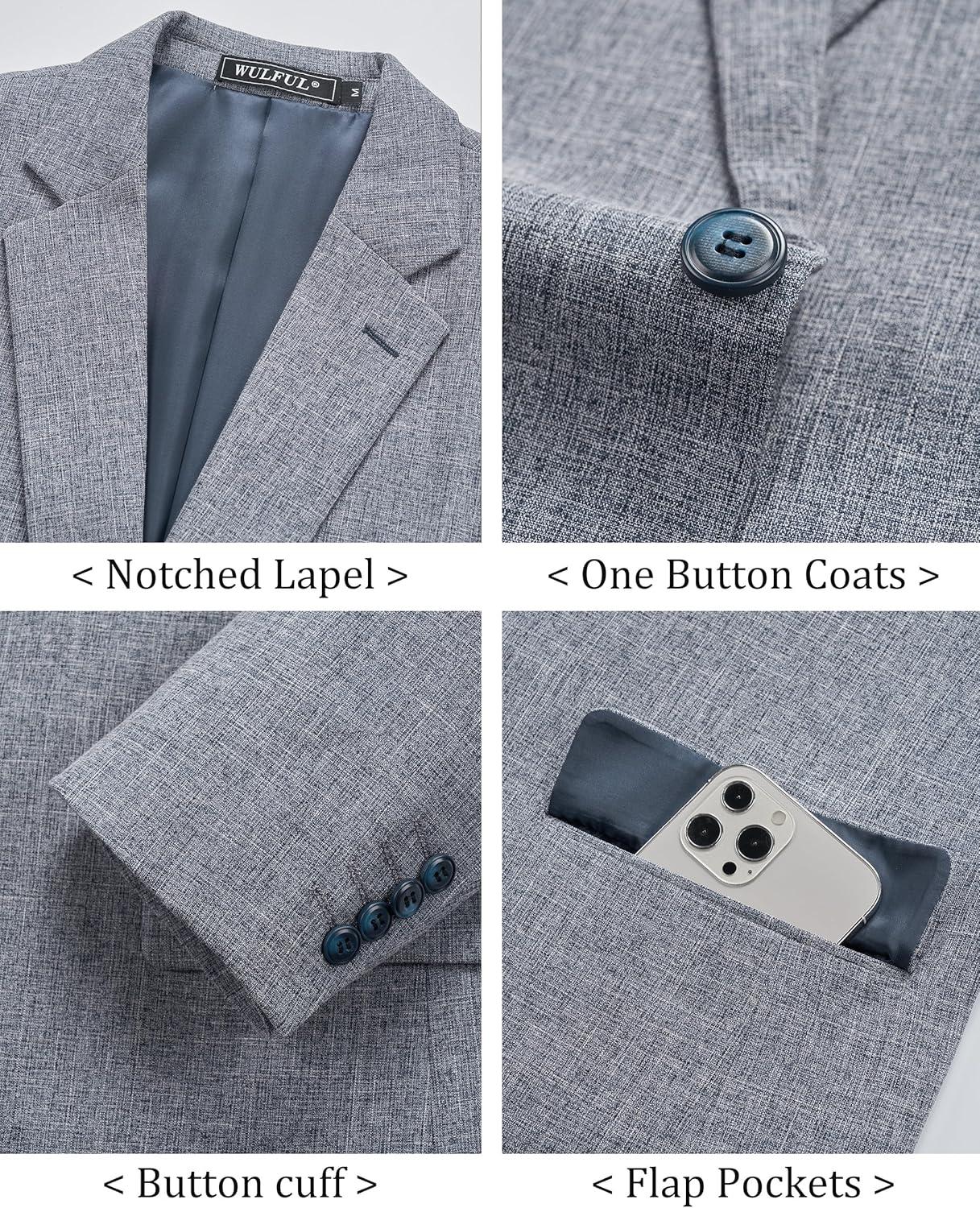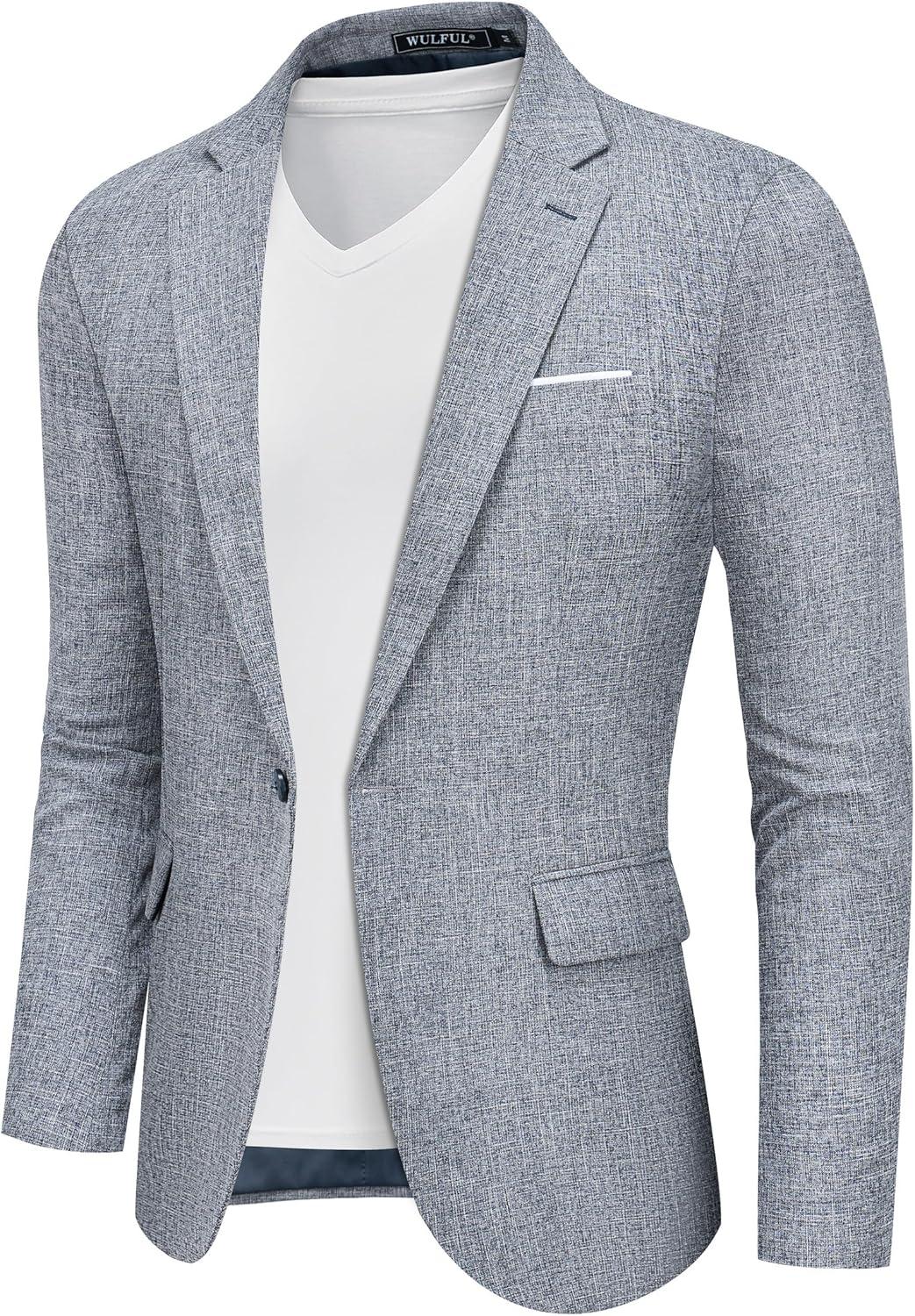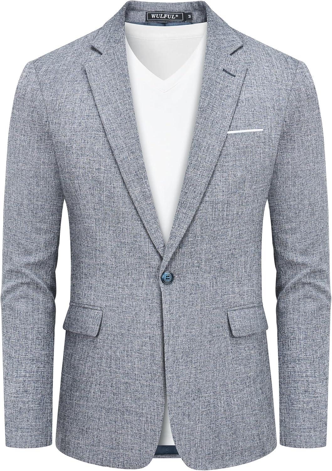 WULFUL Mens Casual Sport Coat Blazer Lightweight One Button Suit Jackets Blue-New Medium