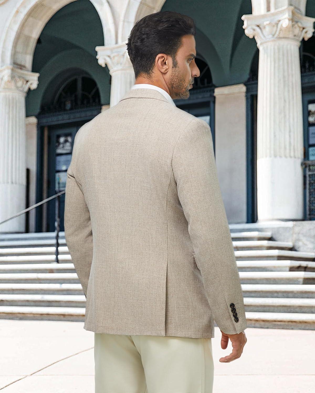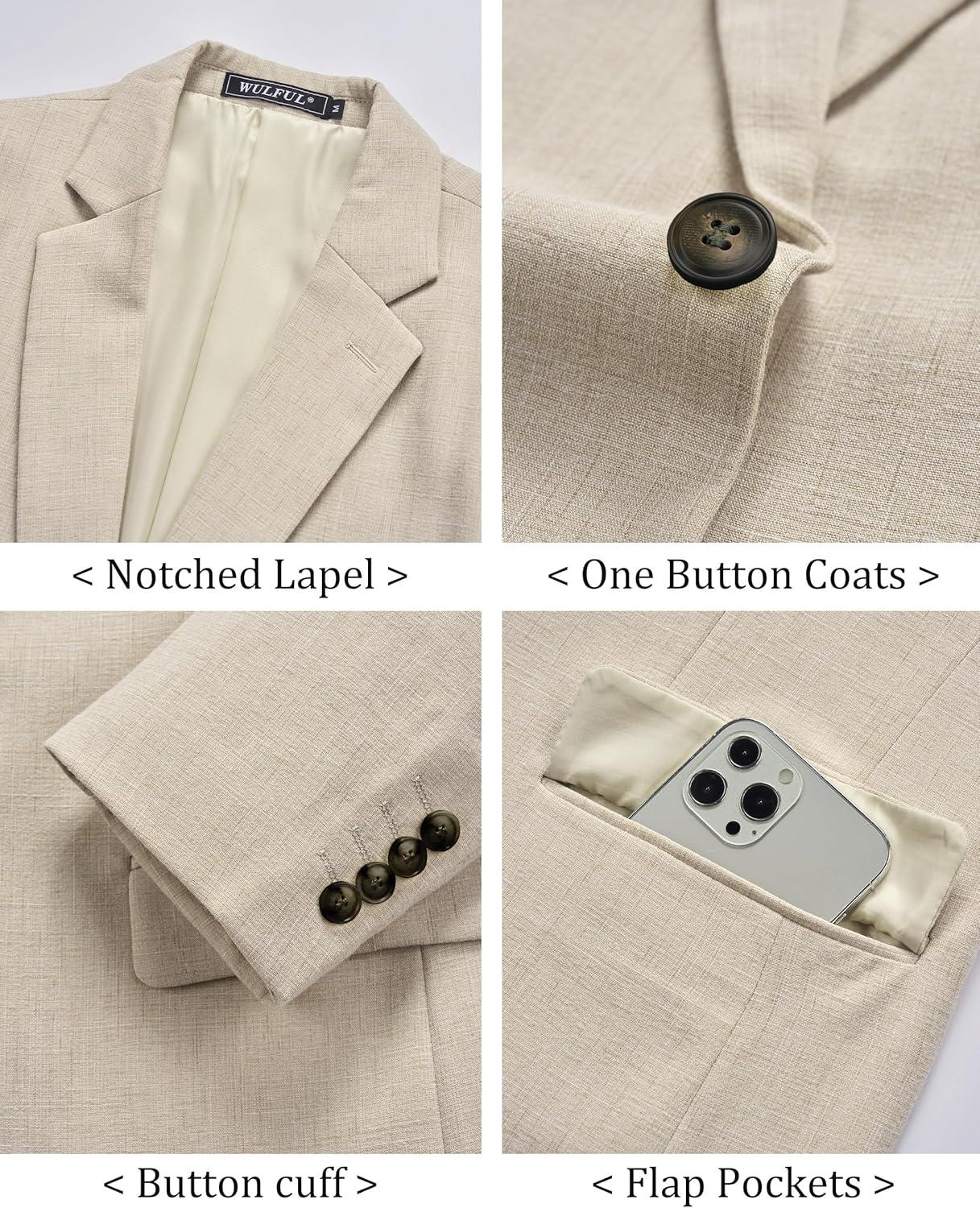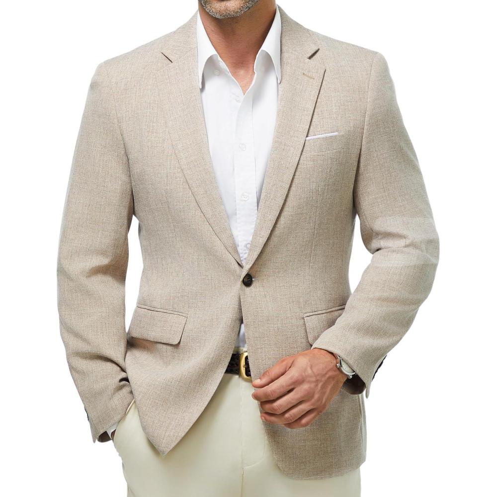 WULFUL Mens Casual Sport Coat Blazer Lightweight One Button Suit Jackets(Beige-new)