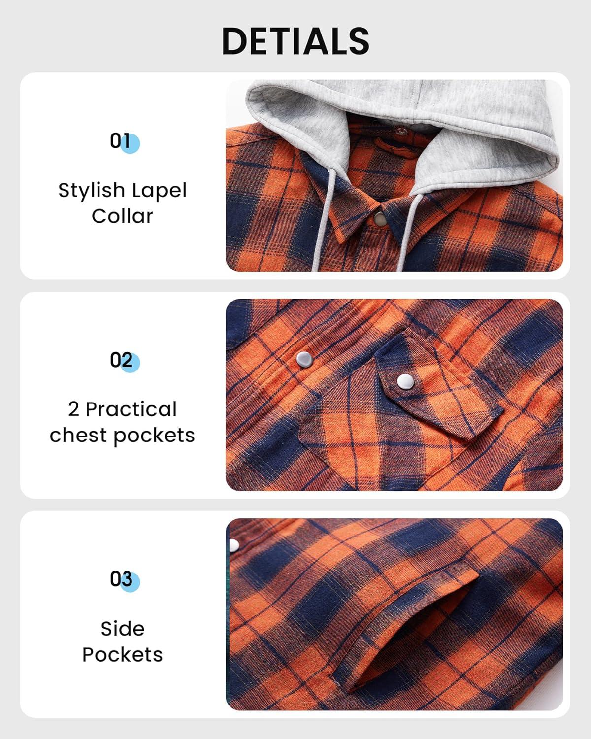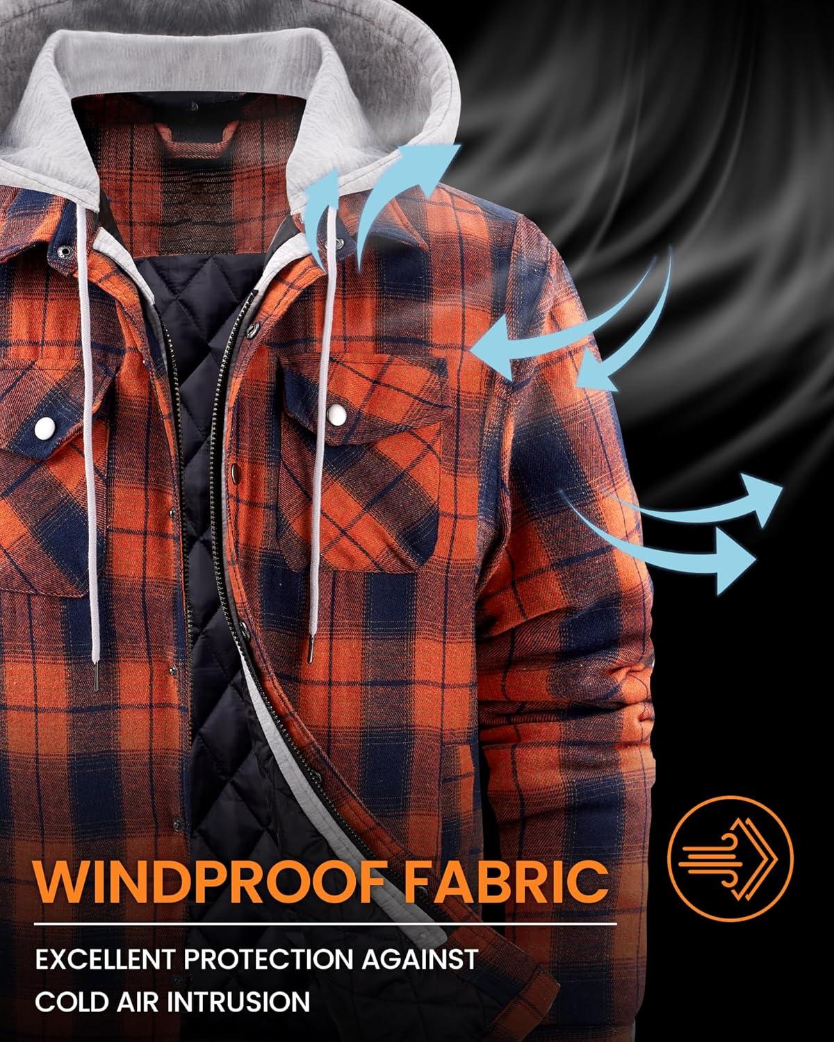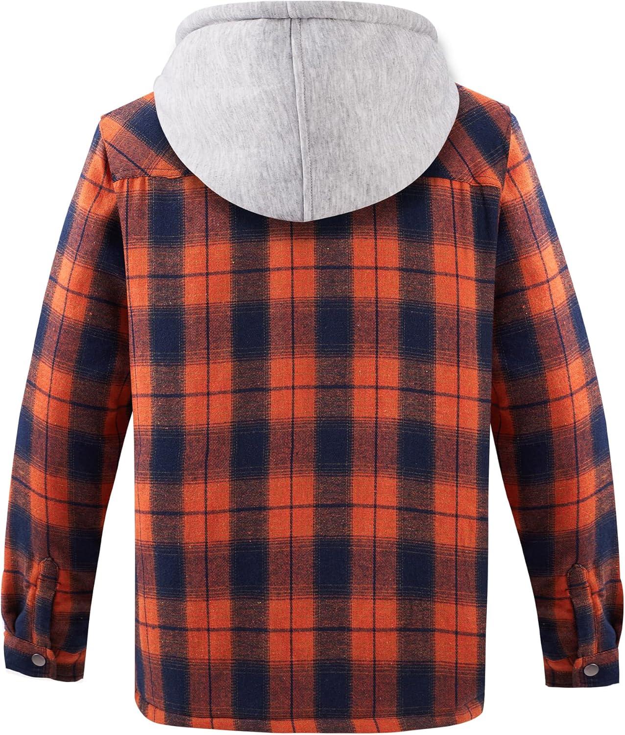 WULFUL Men’s Cotton Plaid Shirts Jacket Fleece Lined Flannel Shirts with Hood(Grey567)