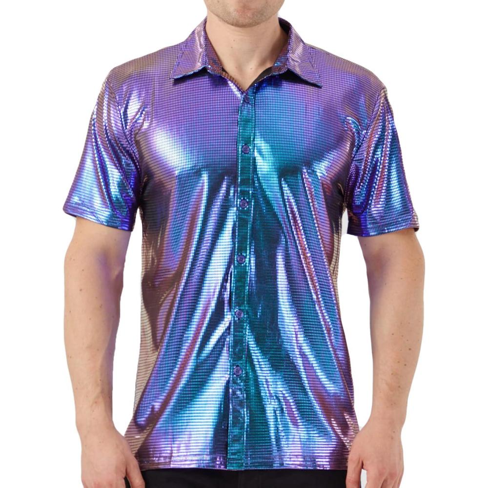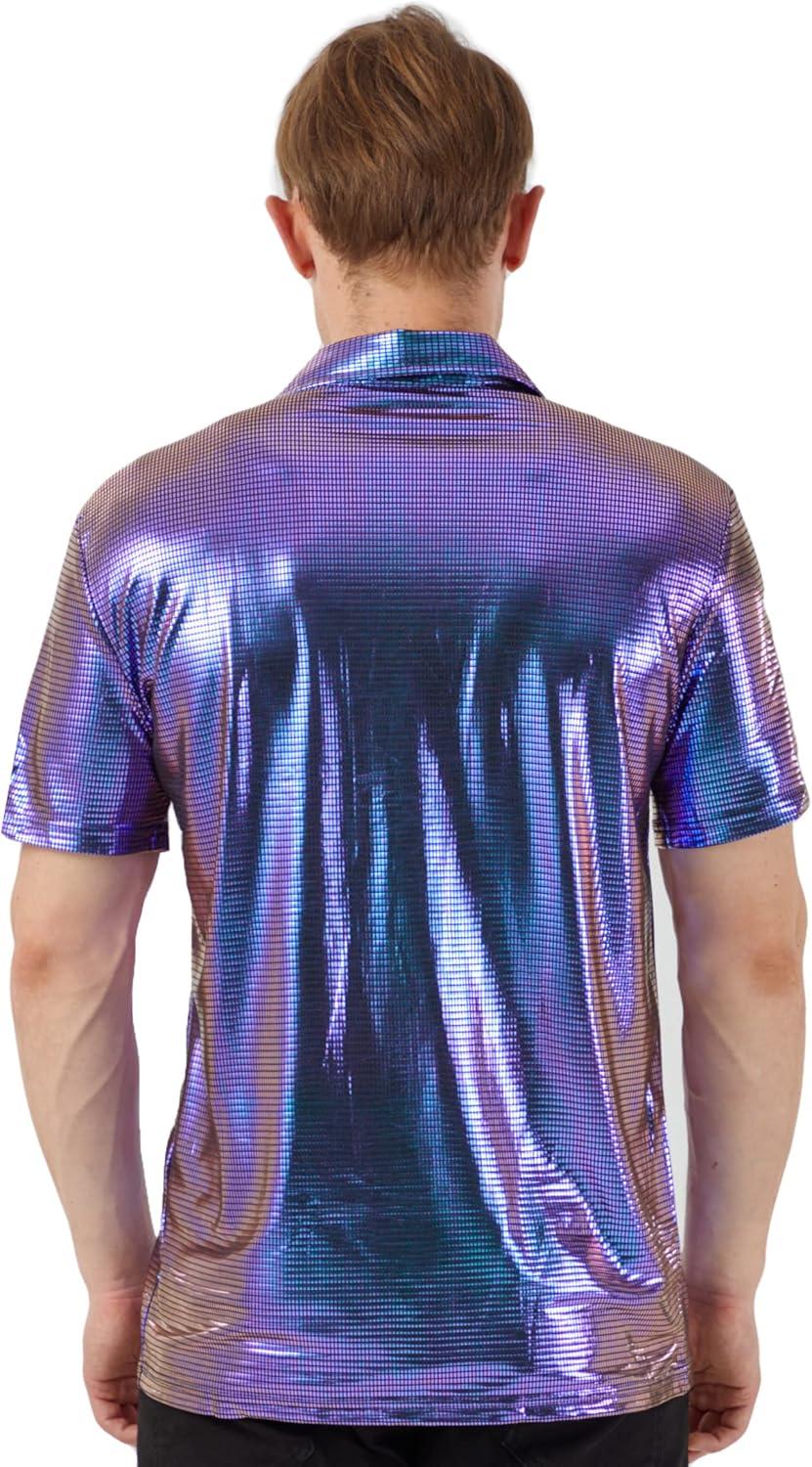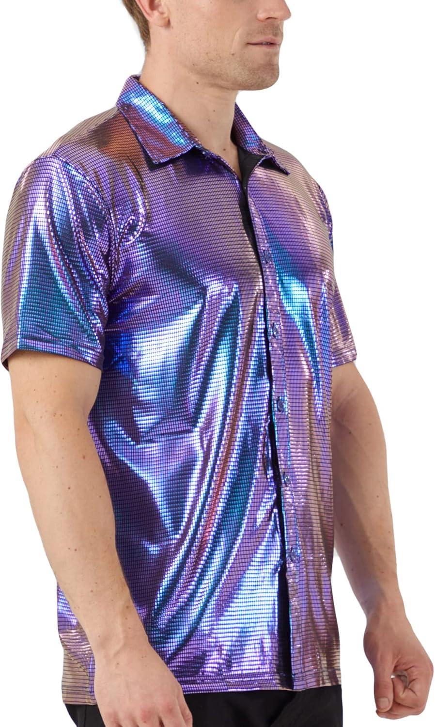 Men Disco Shirt,Sequins Short Sleeve Button Down Shirts,70s Party Costume Dress Shirts