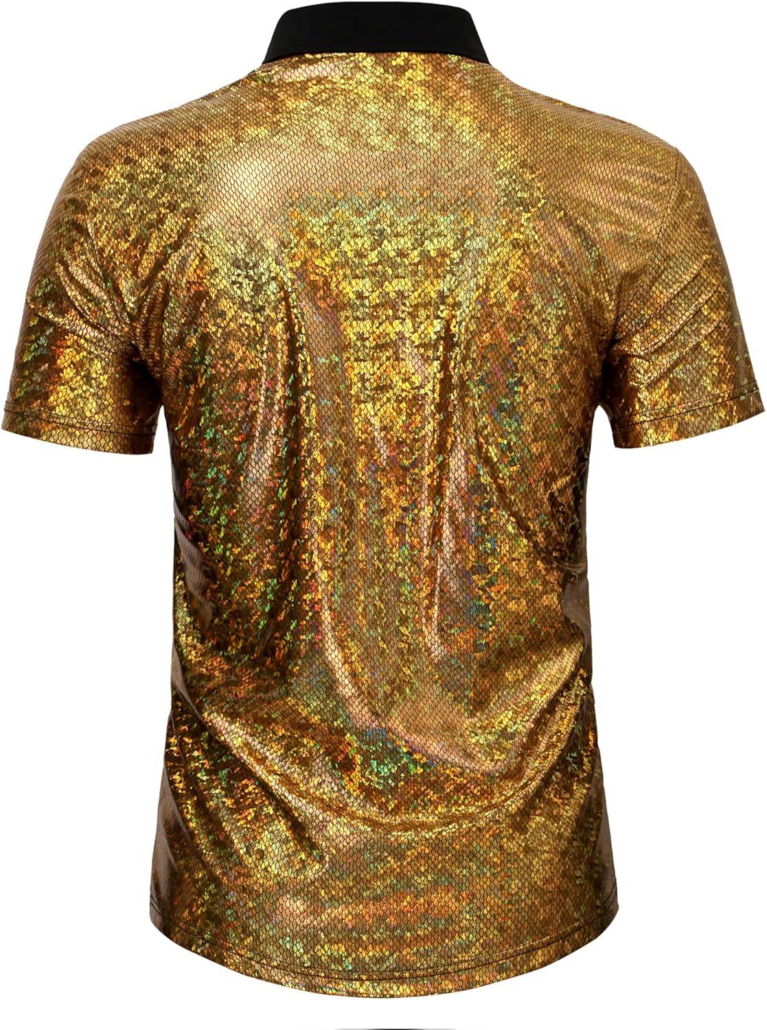 Men Disco Shirt,Sequins Short Sleeve Button Down Shirts,70s Party Costume Dress Shirts