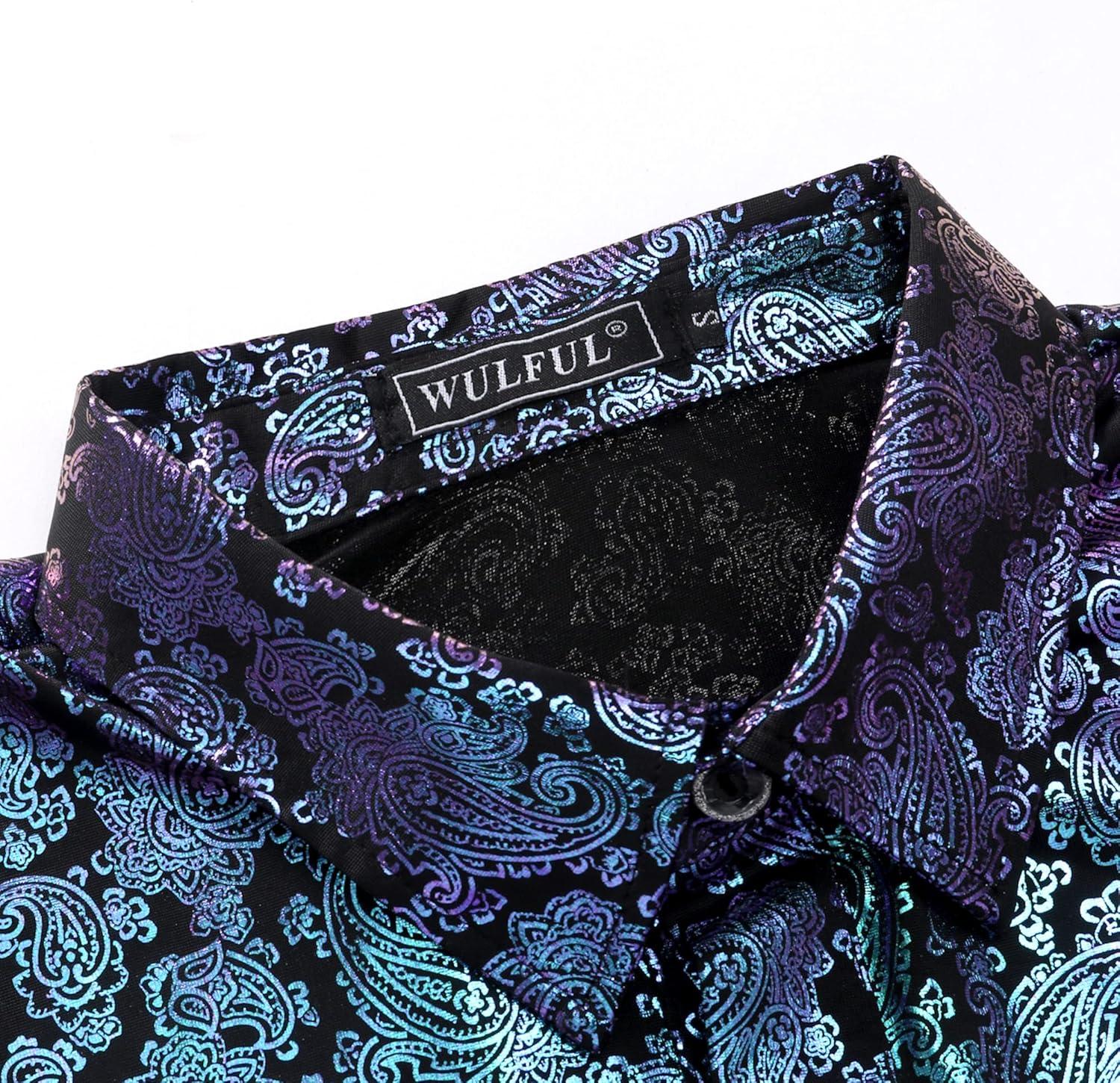 WULFUL Men’s Disco Shirt Sequins Short Sleeve Button Down Shirts 70s Party Costume Dress Shirts(Multicolor056)