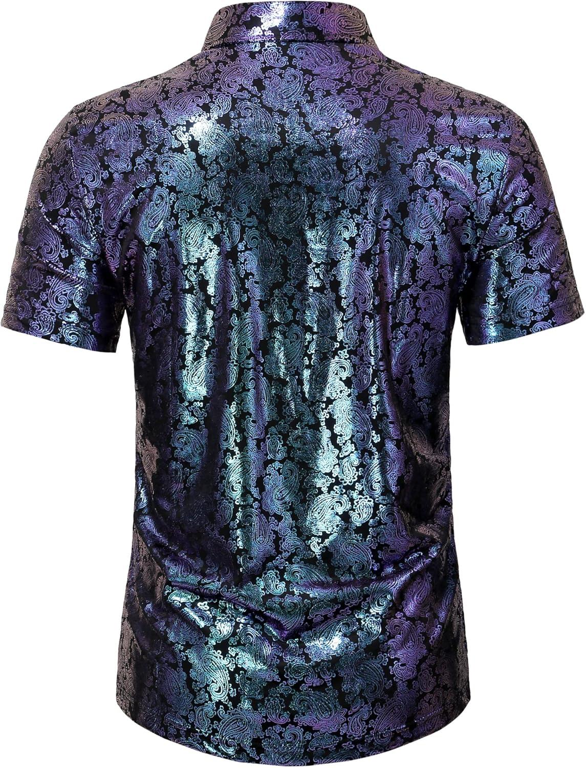 Men Disco Shirt,Sequins Short Sleeve Button Down Shirts,70s Party Costume Dress Shirts