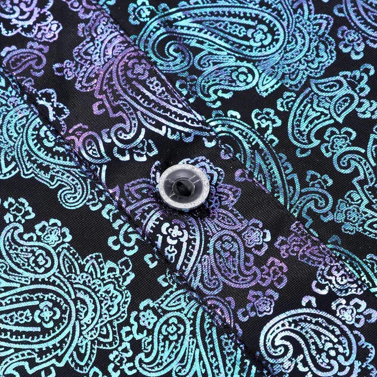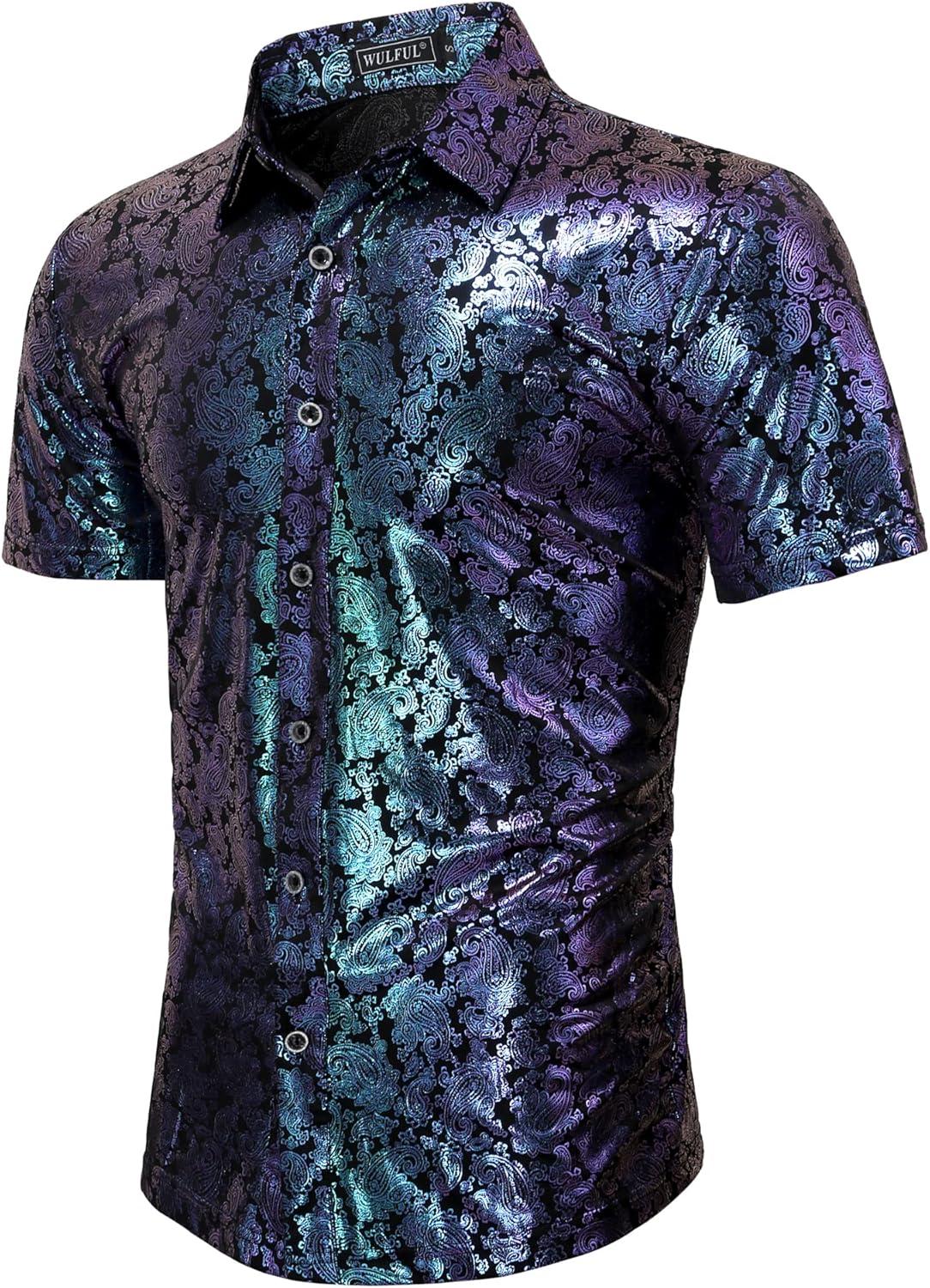 WULFUL Men's Disco Shirt Sequins Short Sleeve Button Down Shirts 70s Party Costume Dress Shirts(Multicolor056)