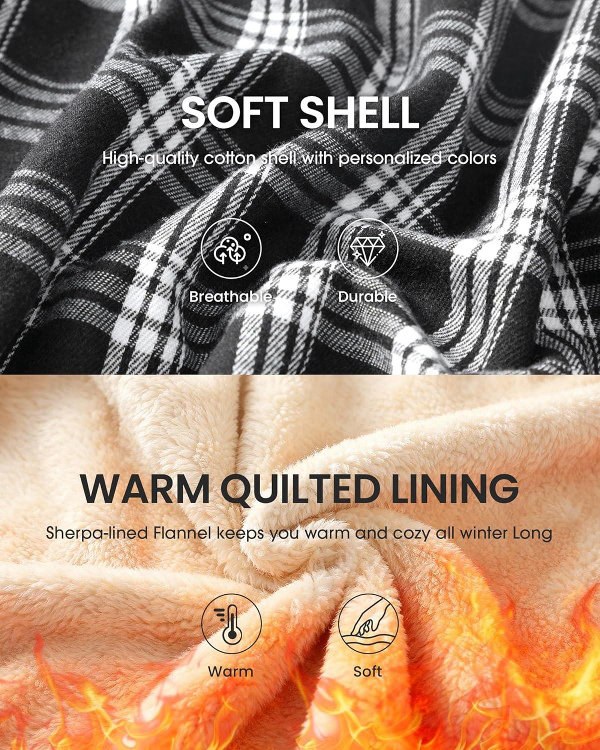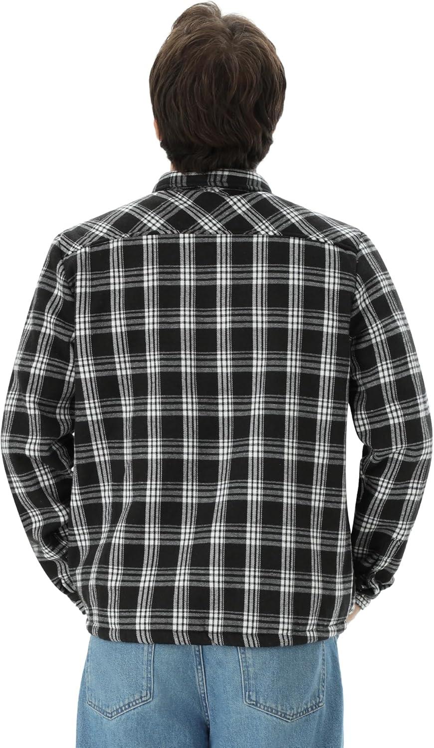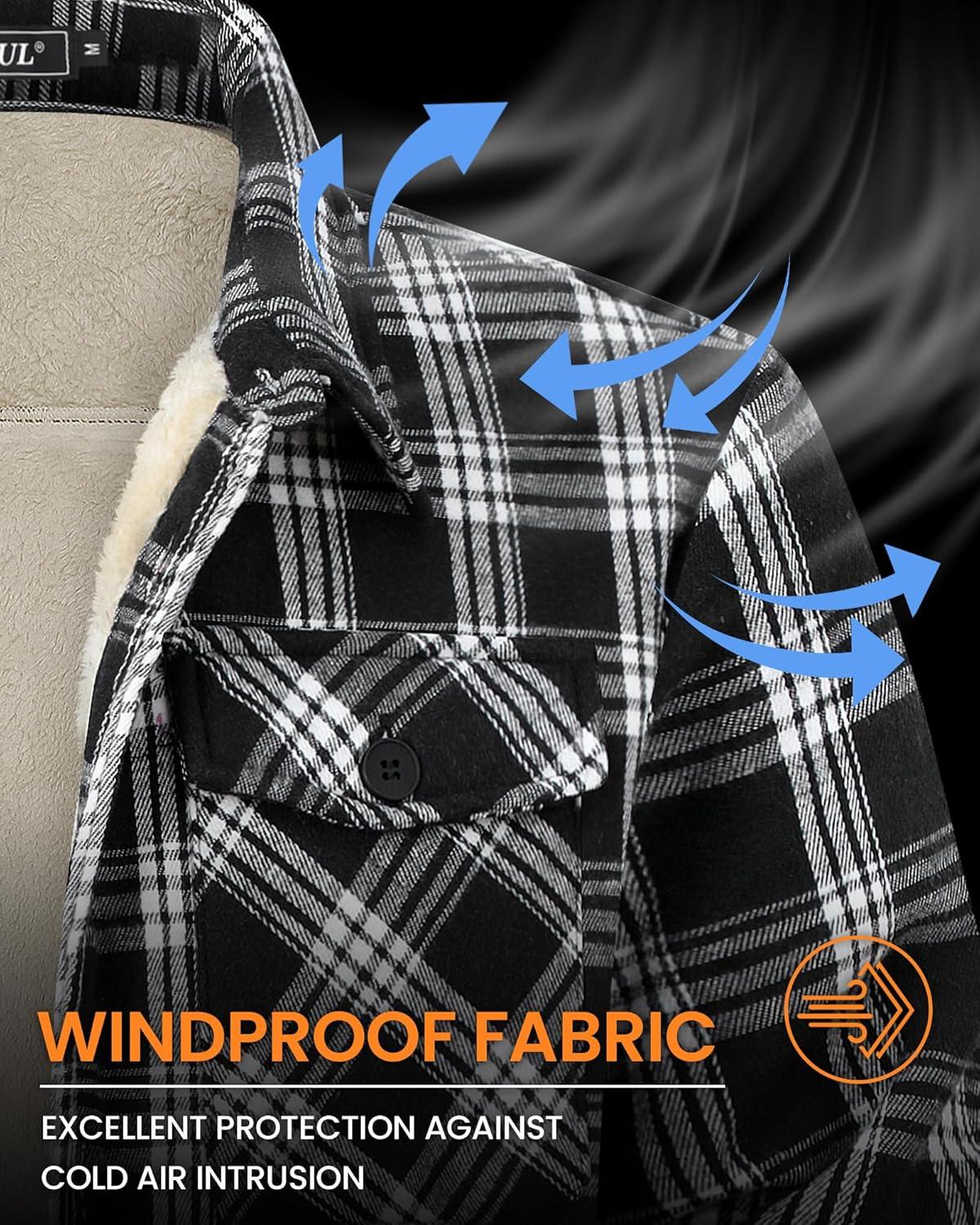 imageWULFUL Mens Flannel Fleece Jackets Sherpa Lined Shirt Jacket Plaid Jackets Shacket Winter Outerwear WarmBlack758