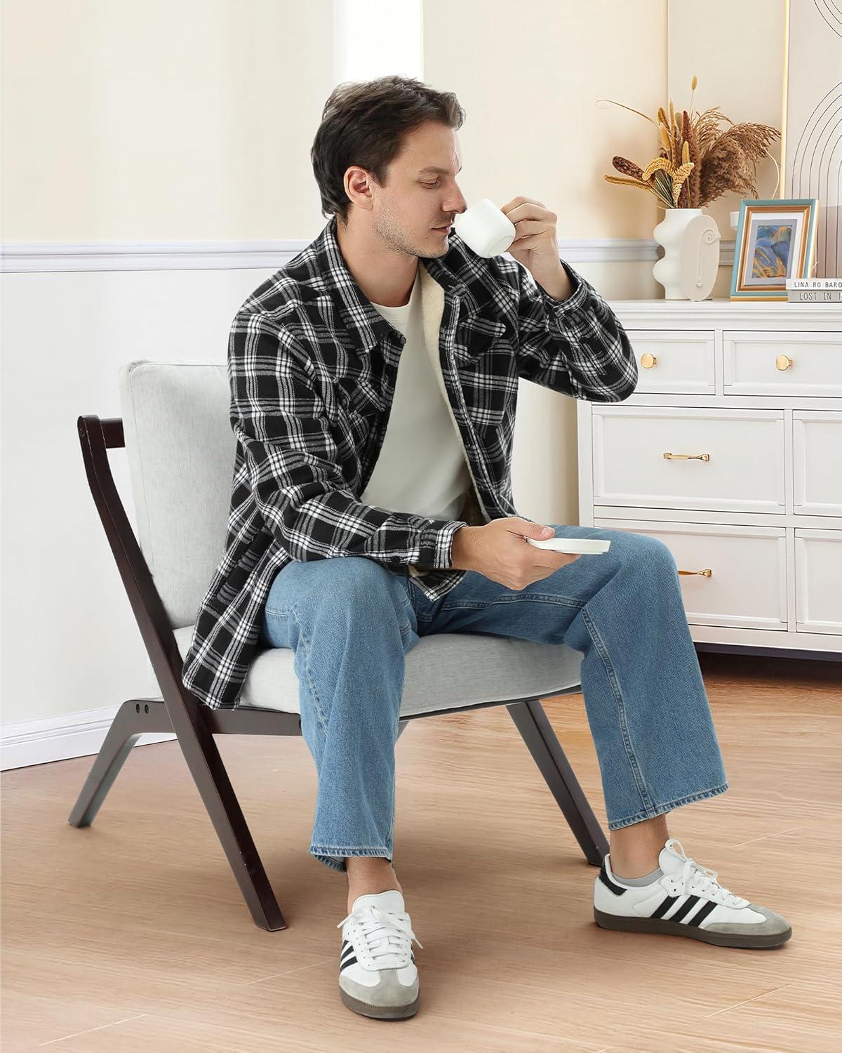 WULFUL Men’s Flannel Fleece Jackets Sherpa Lined Shirt Jacket Plaid Jackets Shacket Winter Outerwear Warm(Black649)