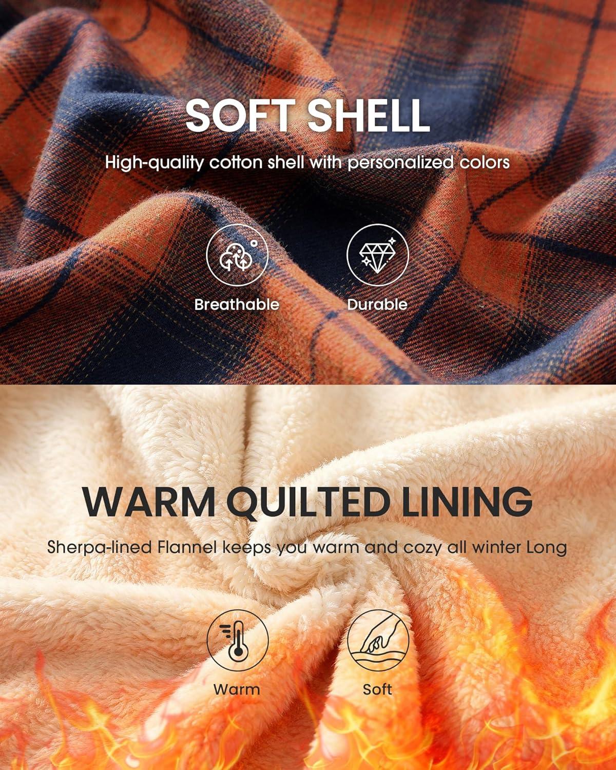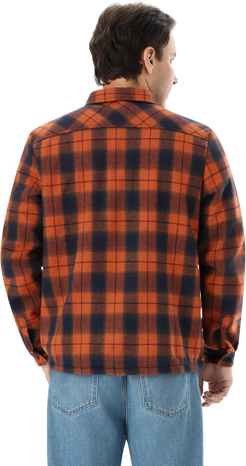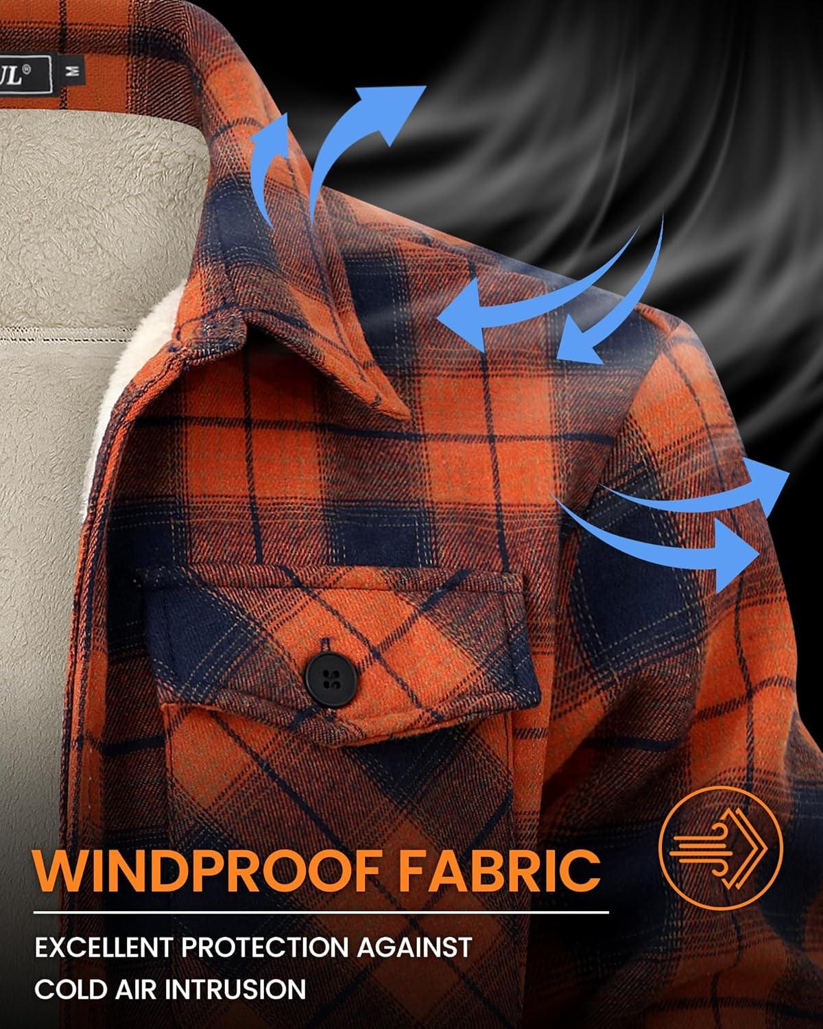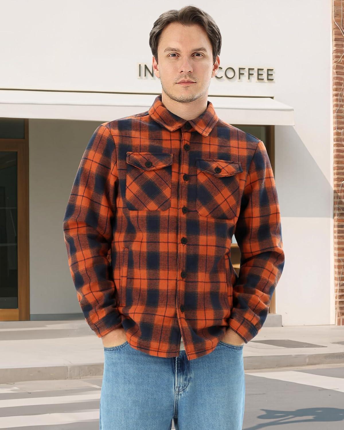 WULFUL Men’s Flannel Fleece Jackets Sherpa Lined Shirt Jacket Plaid Jackets Shacket Winter Outerwear Warm(Navy768)