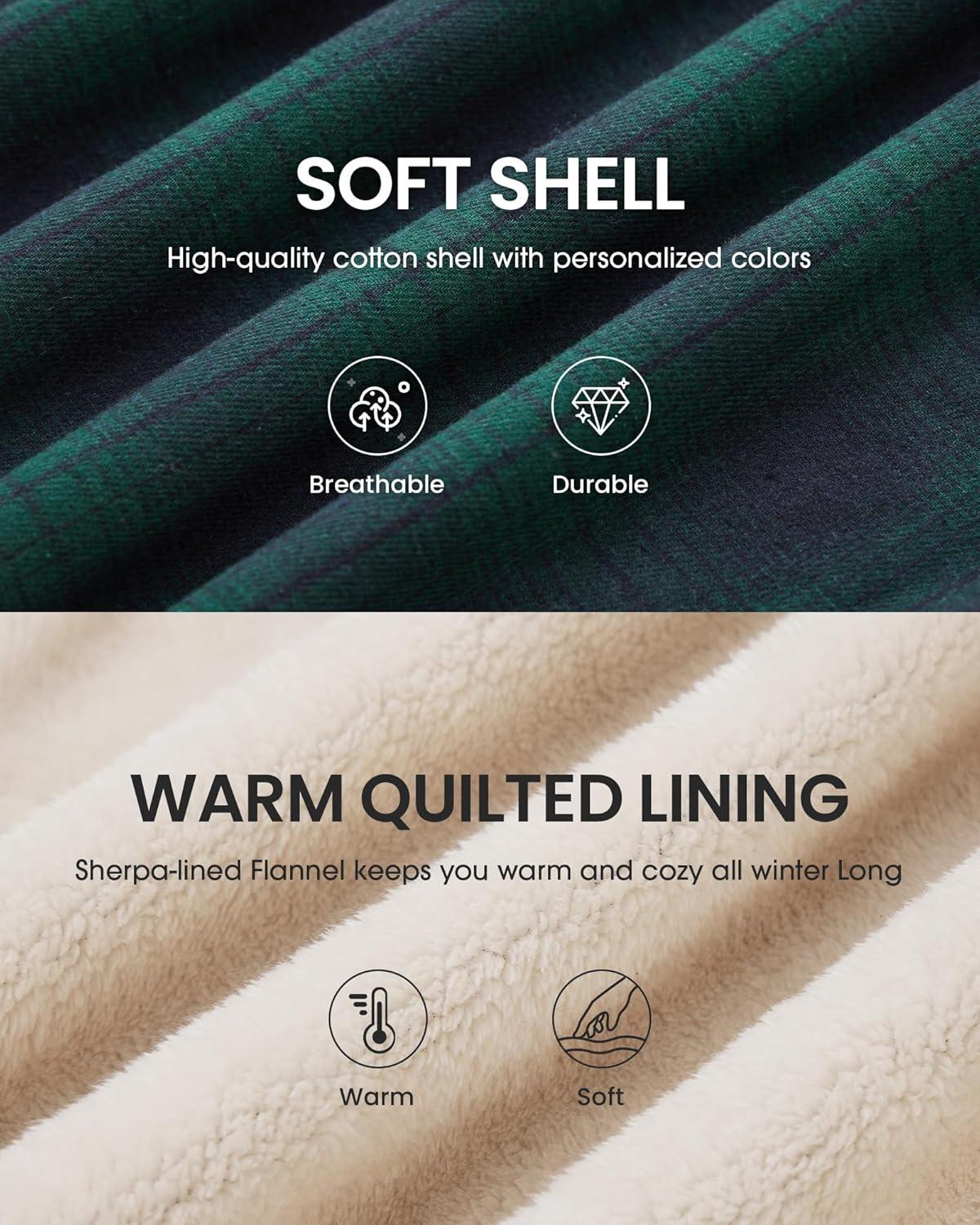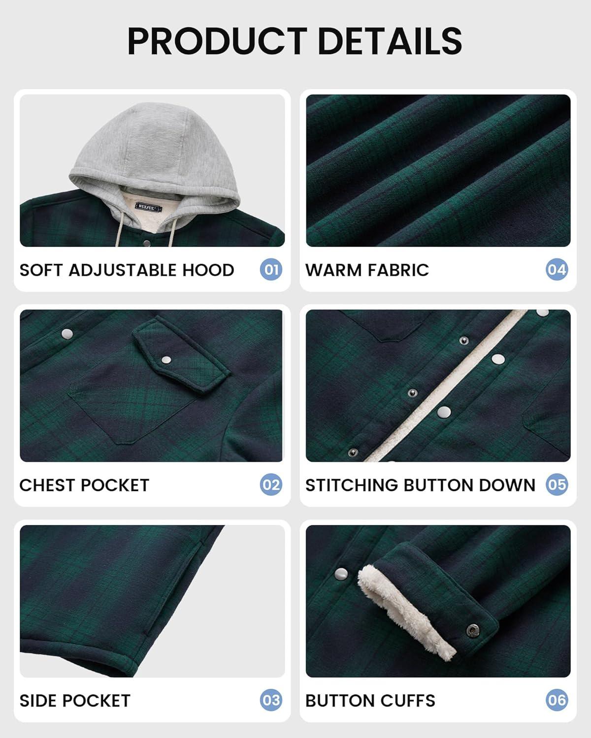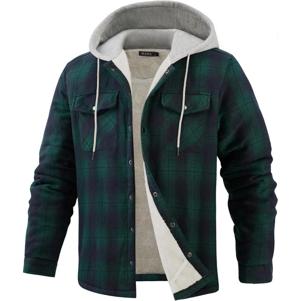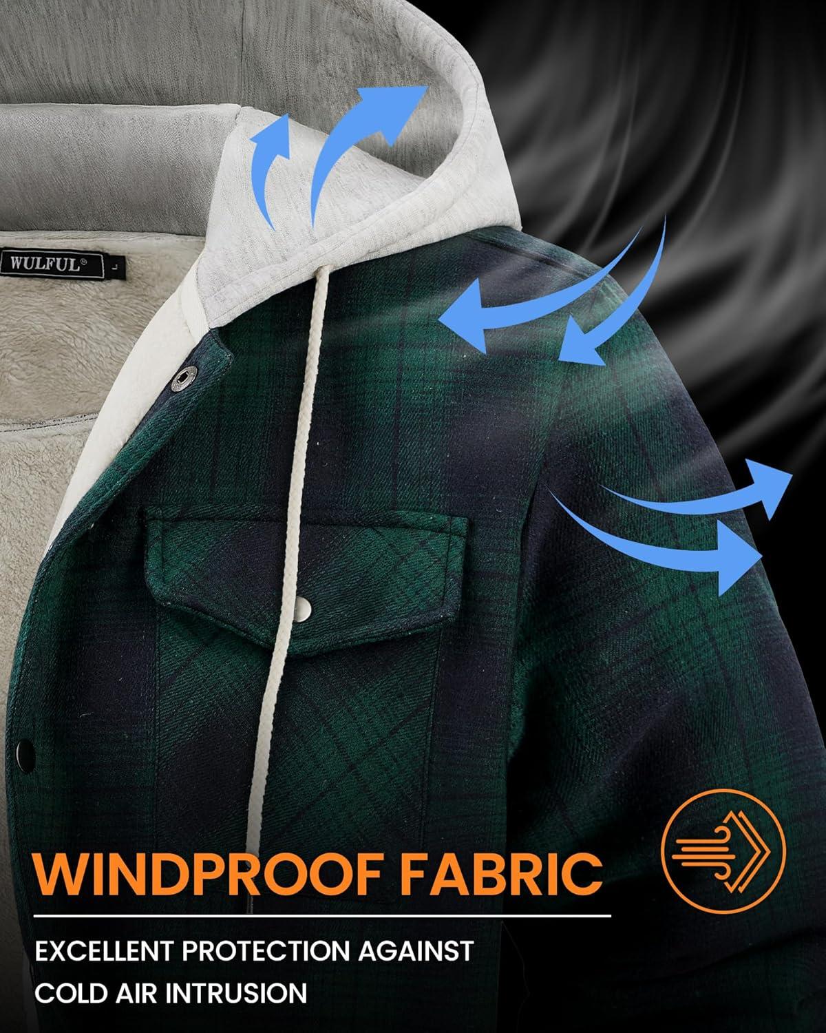 imageWULFUL Mens Flannel Plaid Shirts Jacket Fleece Lined Winter Shirts Soft Warm Coat with Hood for MenGreen813