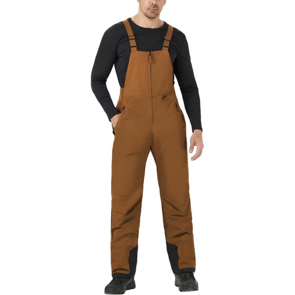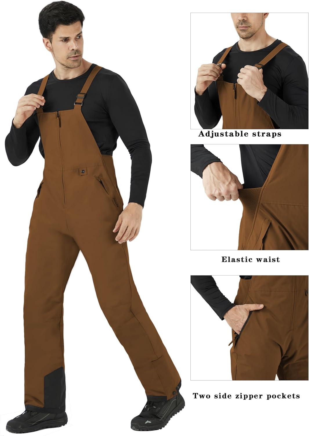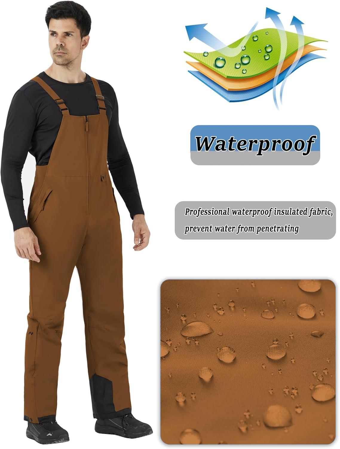 WULFUL Mens Insulated Snow Bibs Waterproof Winter Ski Pants Snowboarding Overalls(Brown)