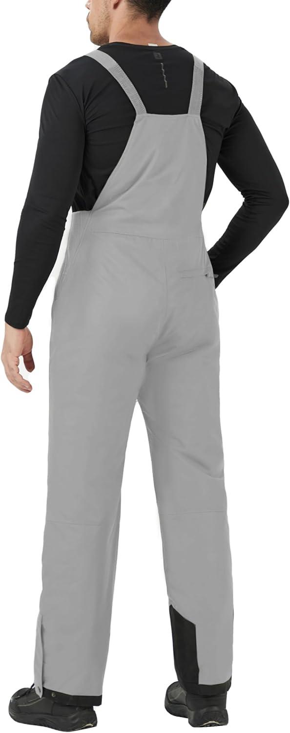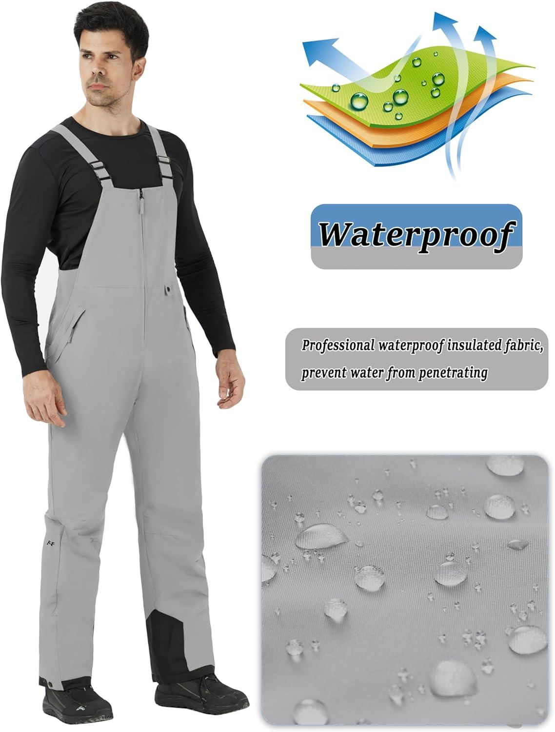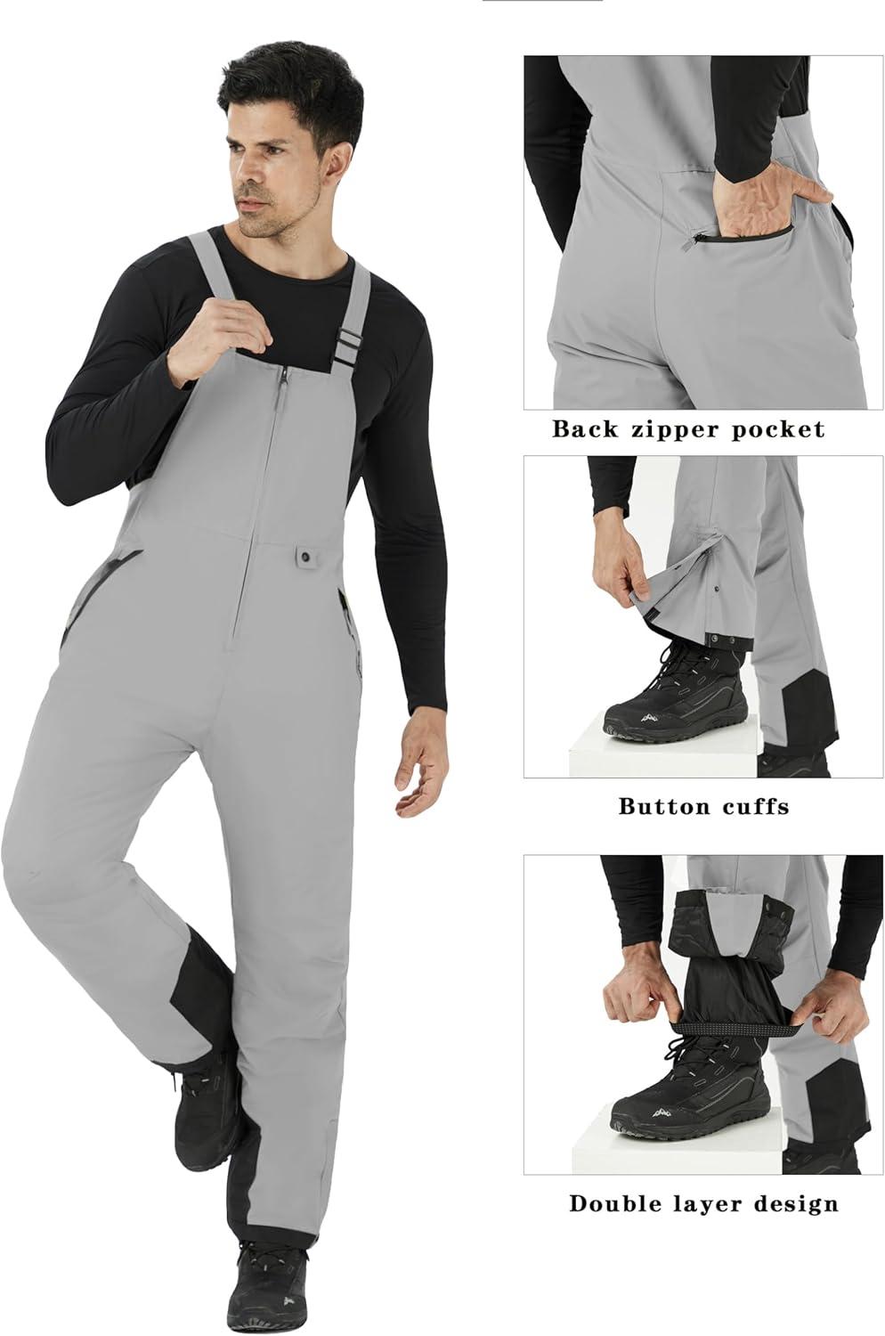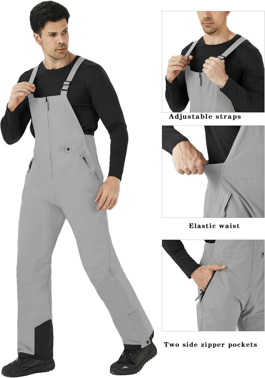 WULFUL Mens Insulated Snow Bibs Waterproof Winter Ski Pants Snowboarding Overalls(Light Grey)