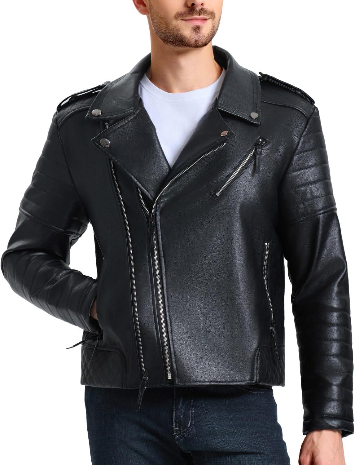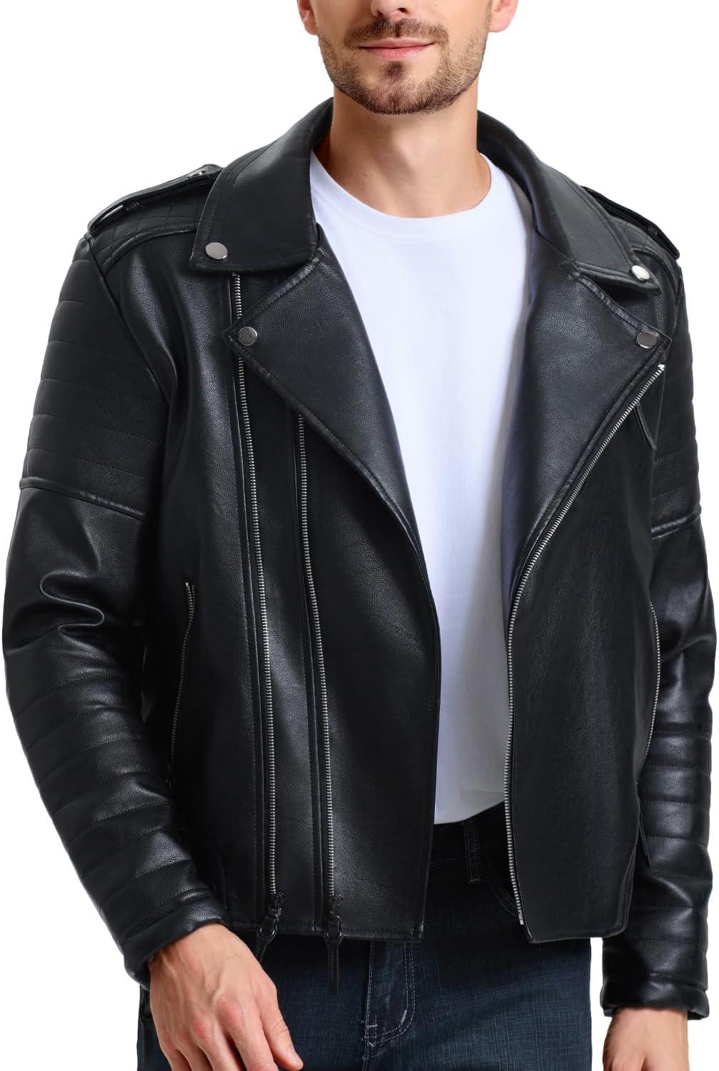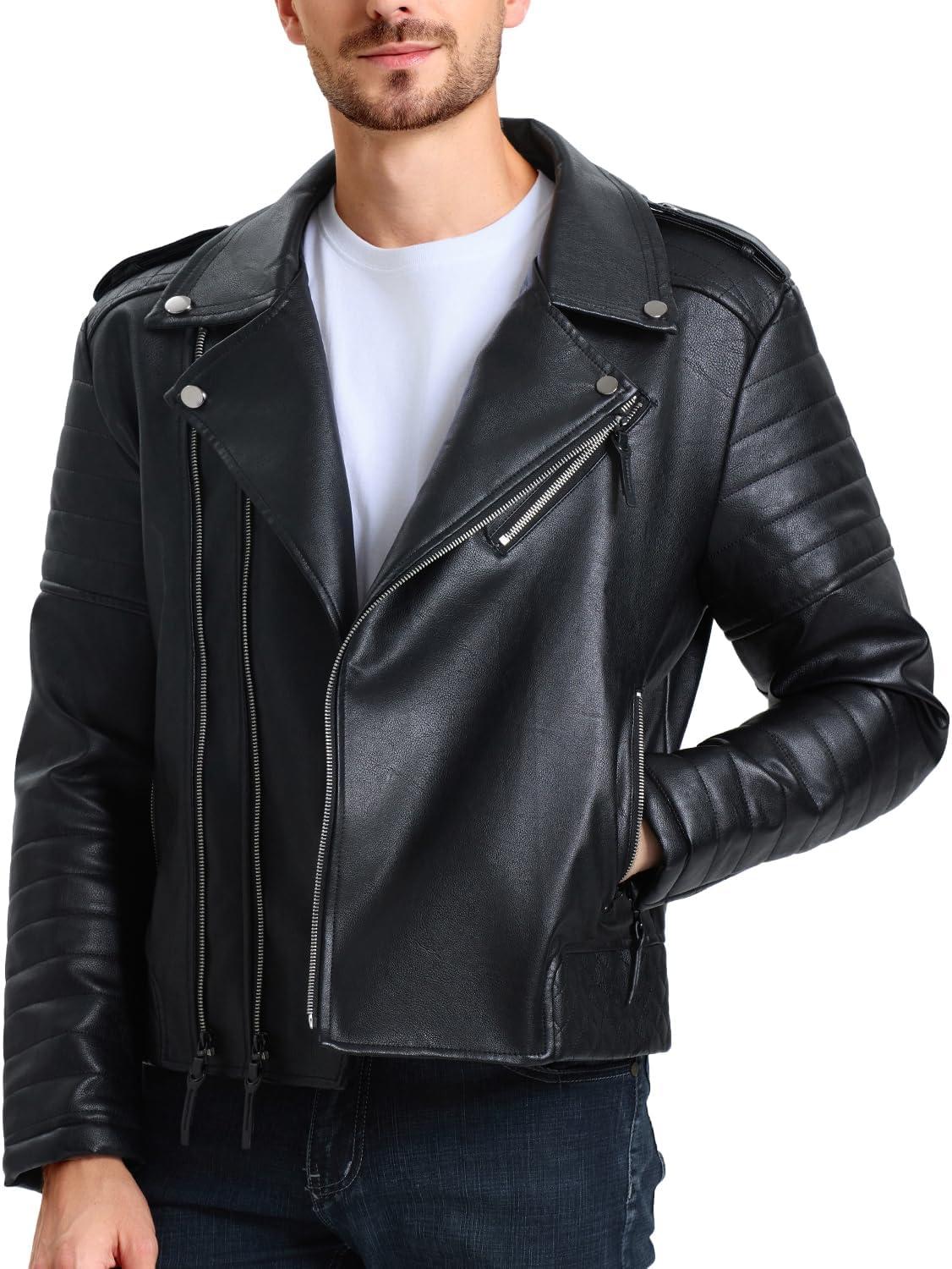 WULFUL Men's Leather Jackets, Faux Bomber Jacket for Men Motorcycle Lapel Asymmetric Zip-Up Slim Fit Biker Coat