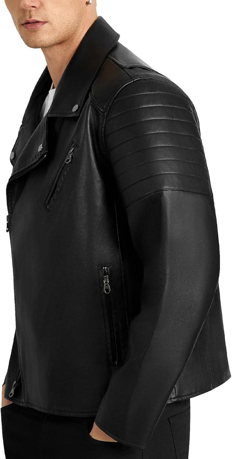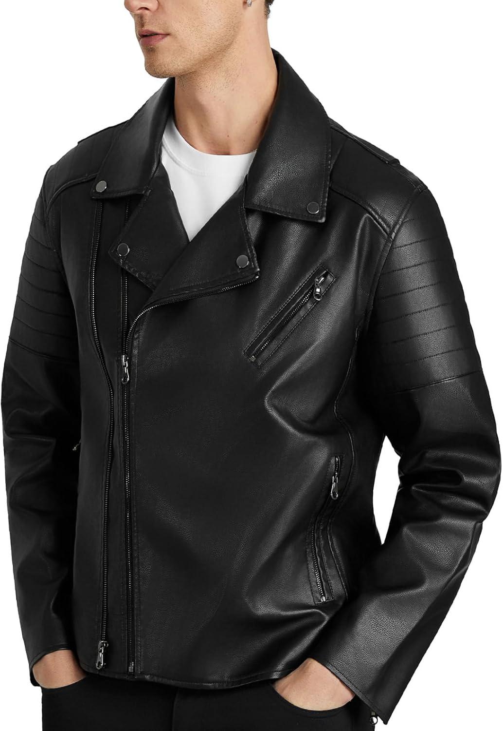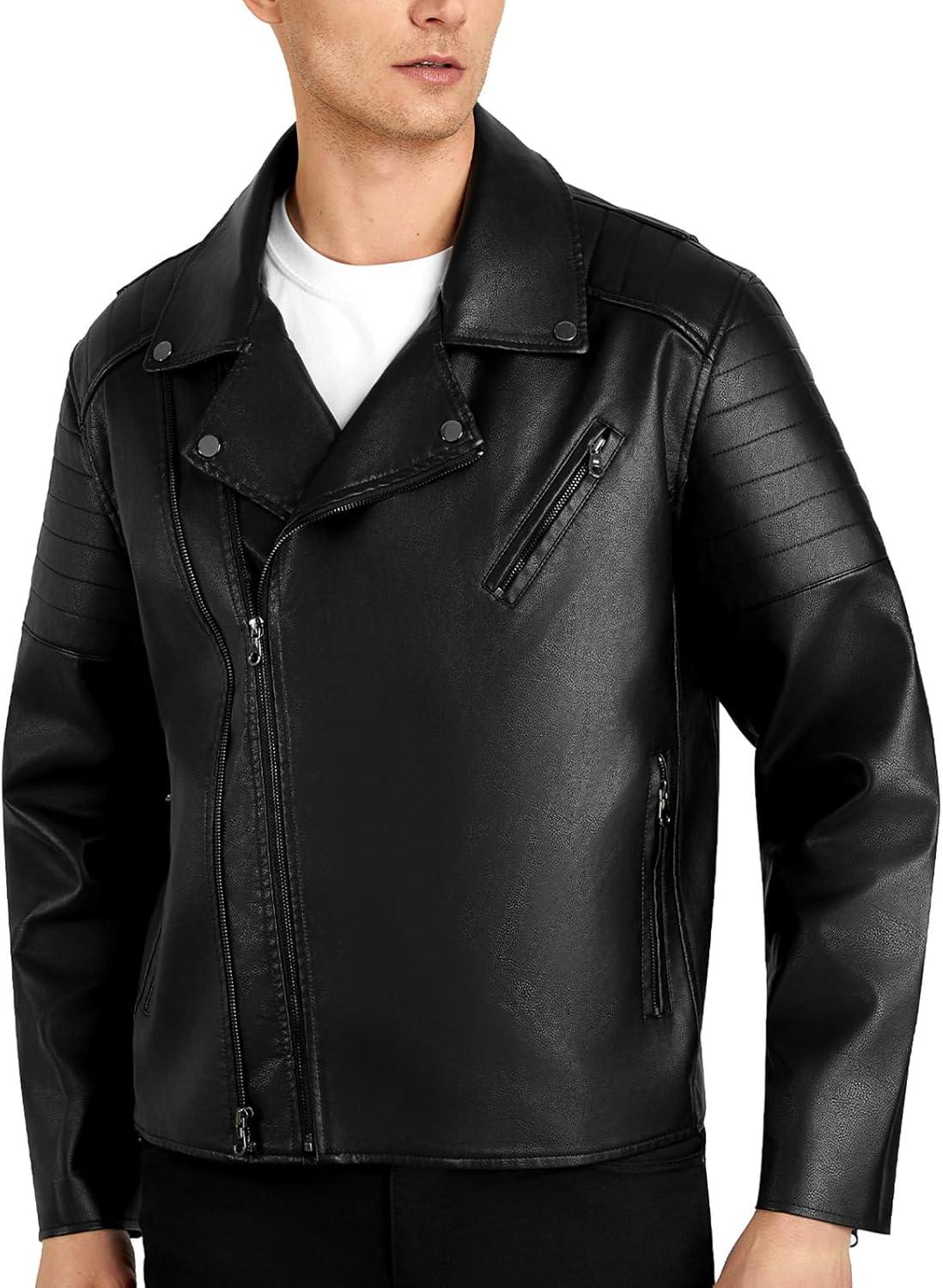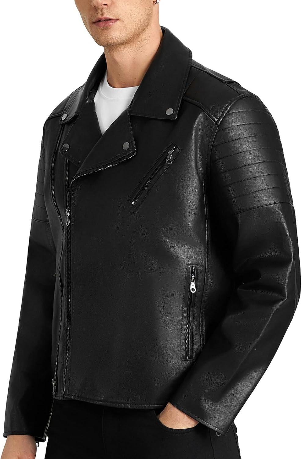 WULFUL Men's Leather Jackets, Faux Bomber Jacket for Men Motorcycle Lapel Asymmetric Zip-Up Slim Fit Biker Coat
