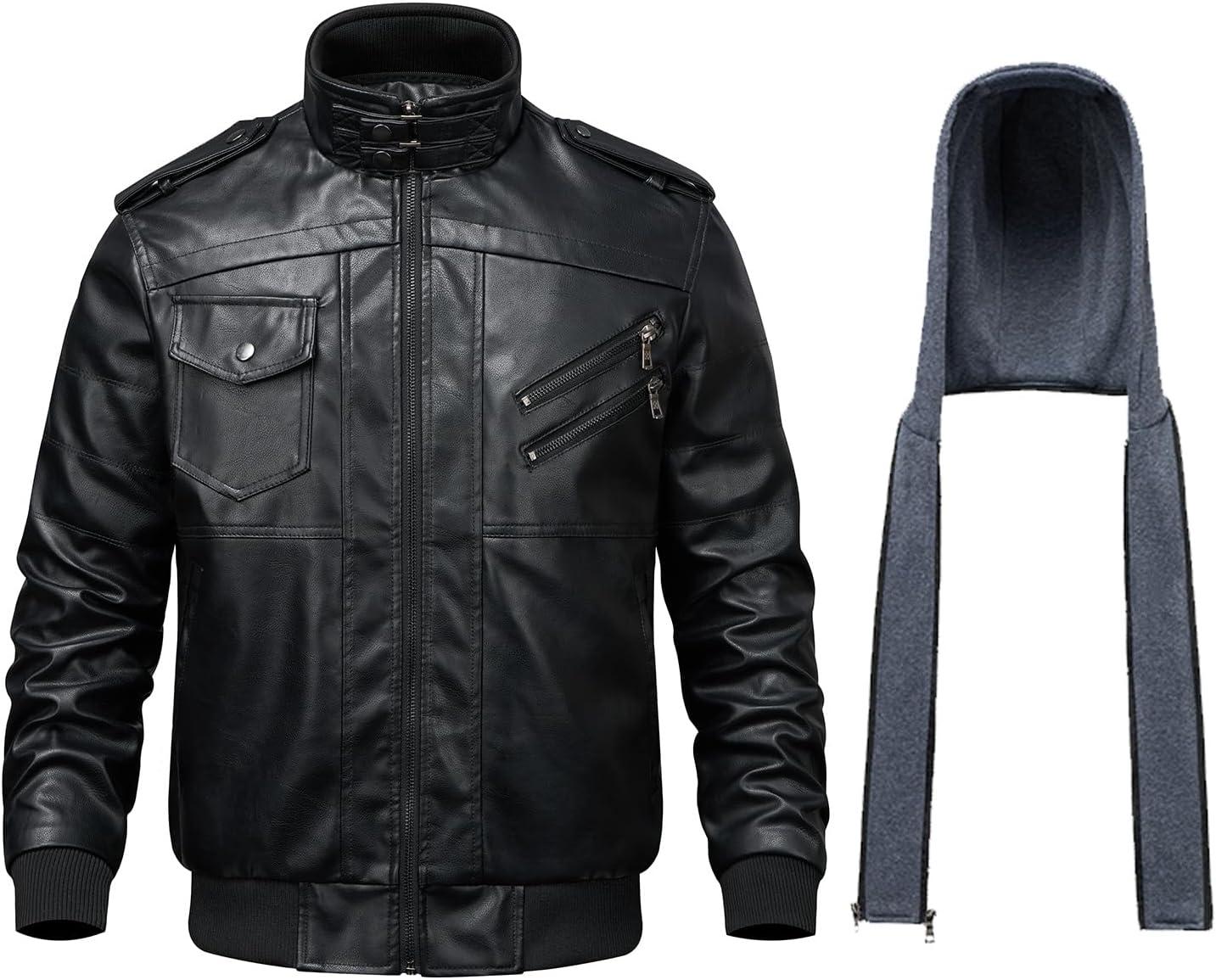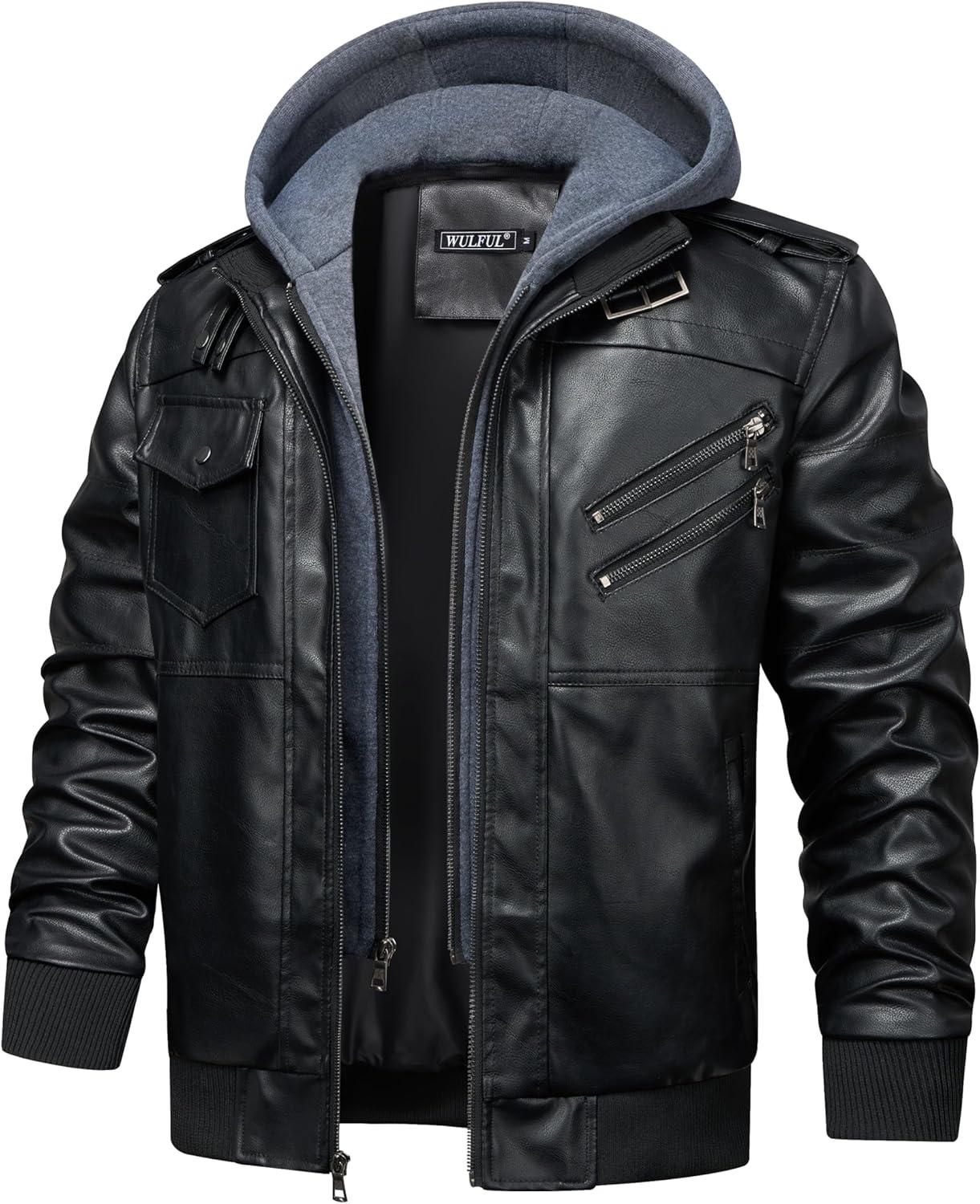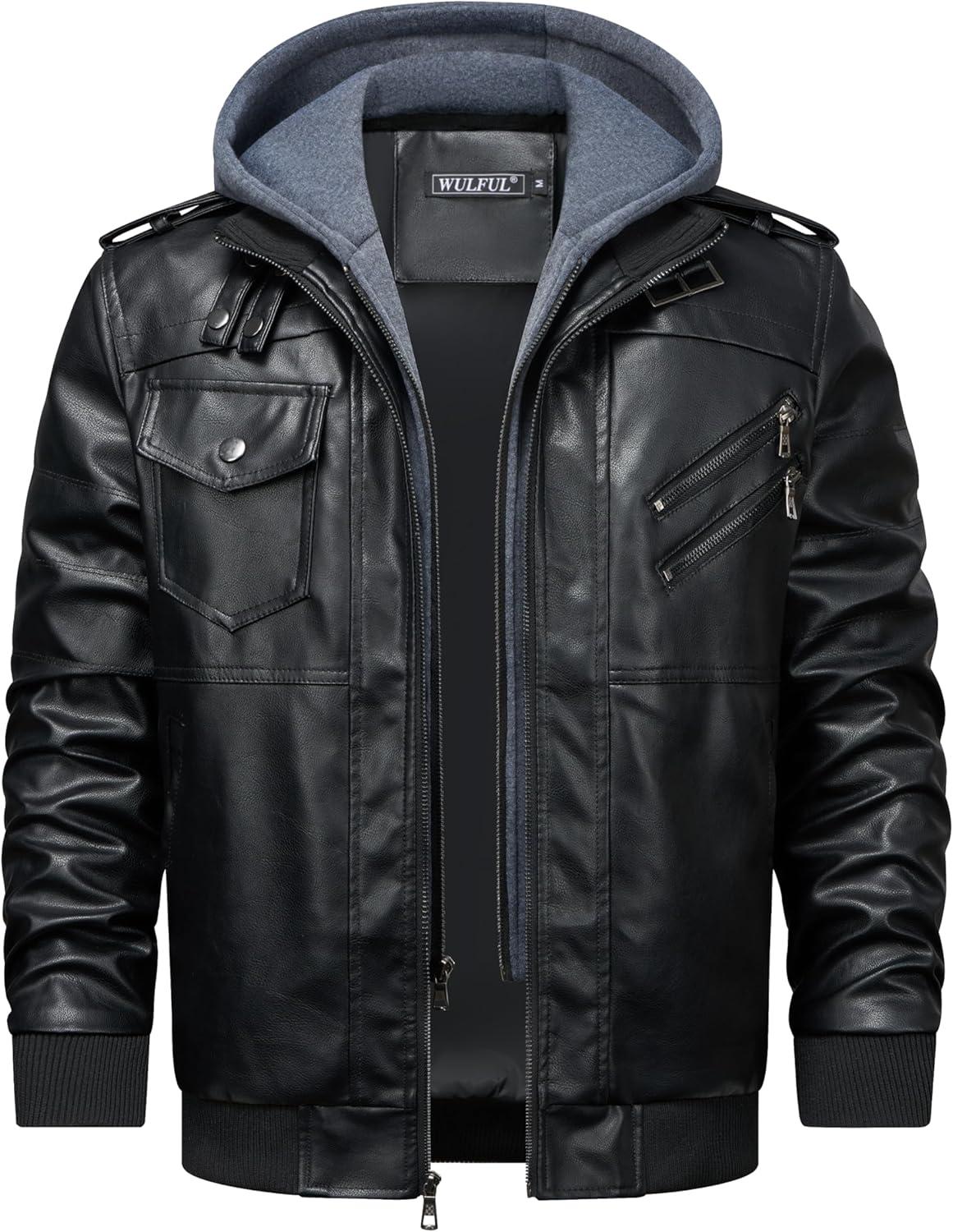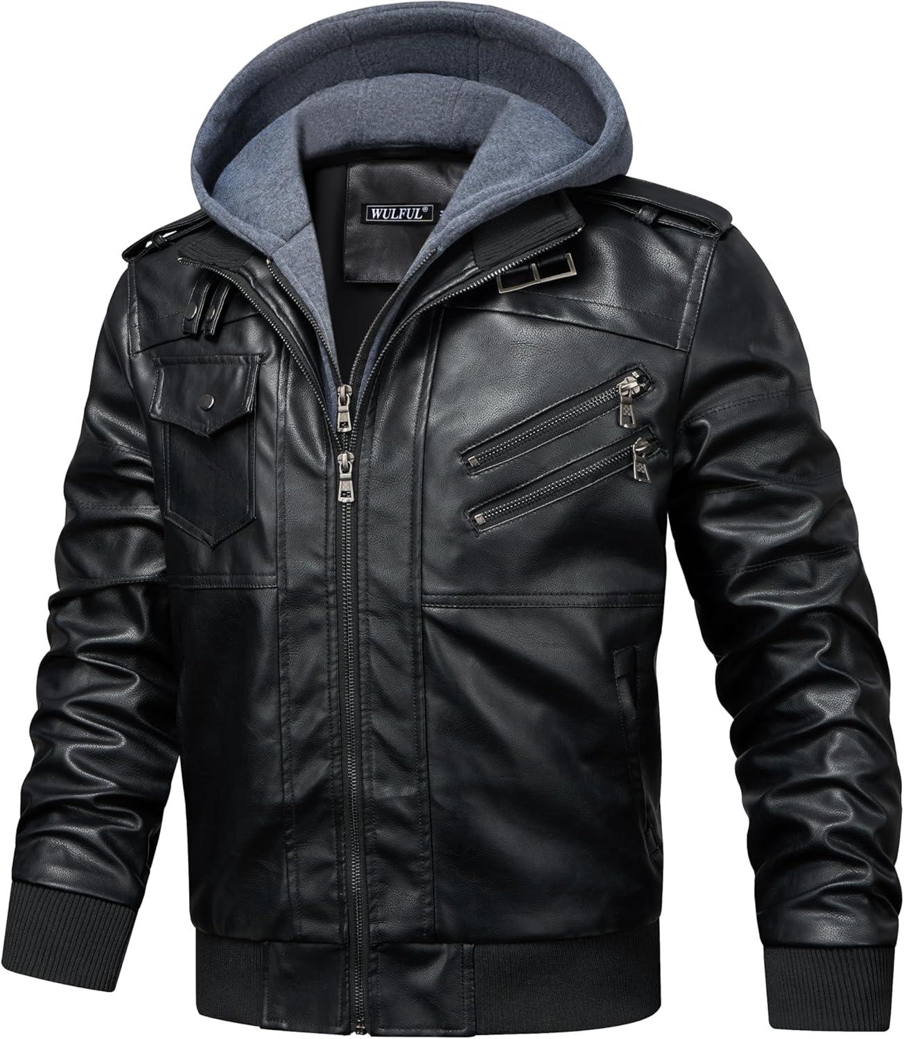 WULFUL Men's Leather Jackets, Faux Leather Jacket for Men Lapel Zip-Up Slim Fit Coat