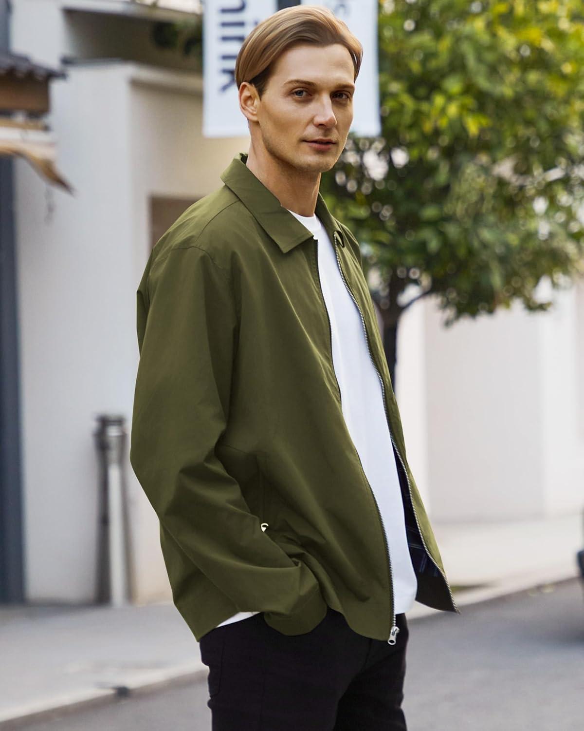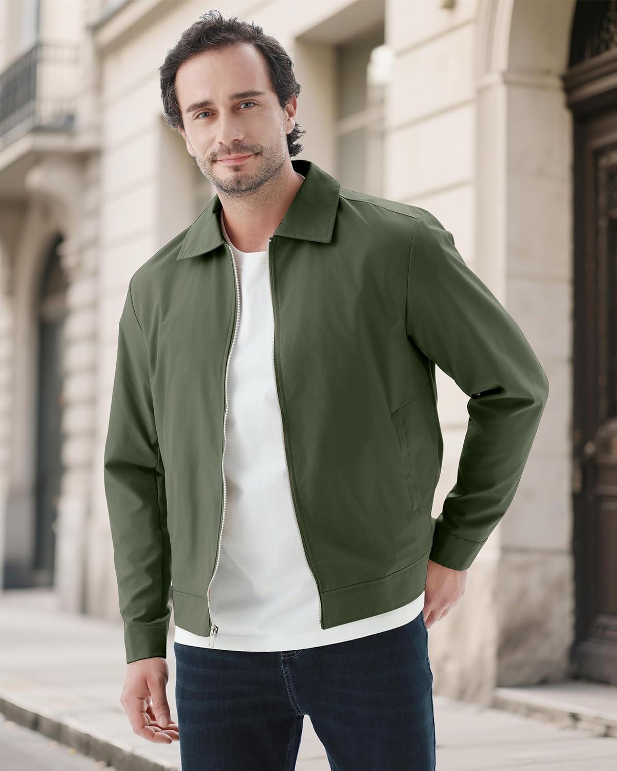WULFUL Men’s Lightweight Jackets Casual Windbreaker Stylish Light Golf Work Dress Business(Army Green)