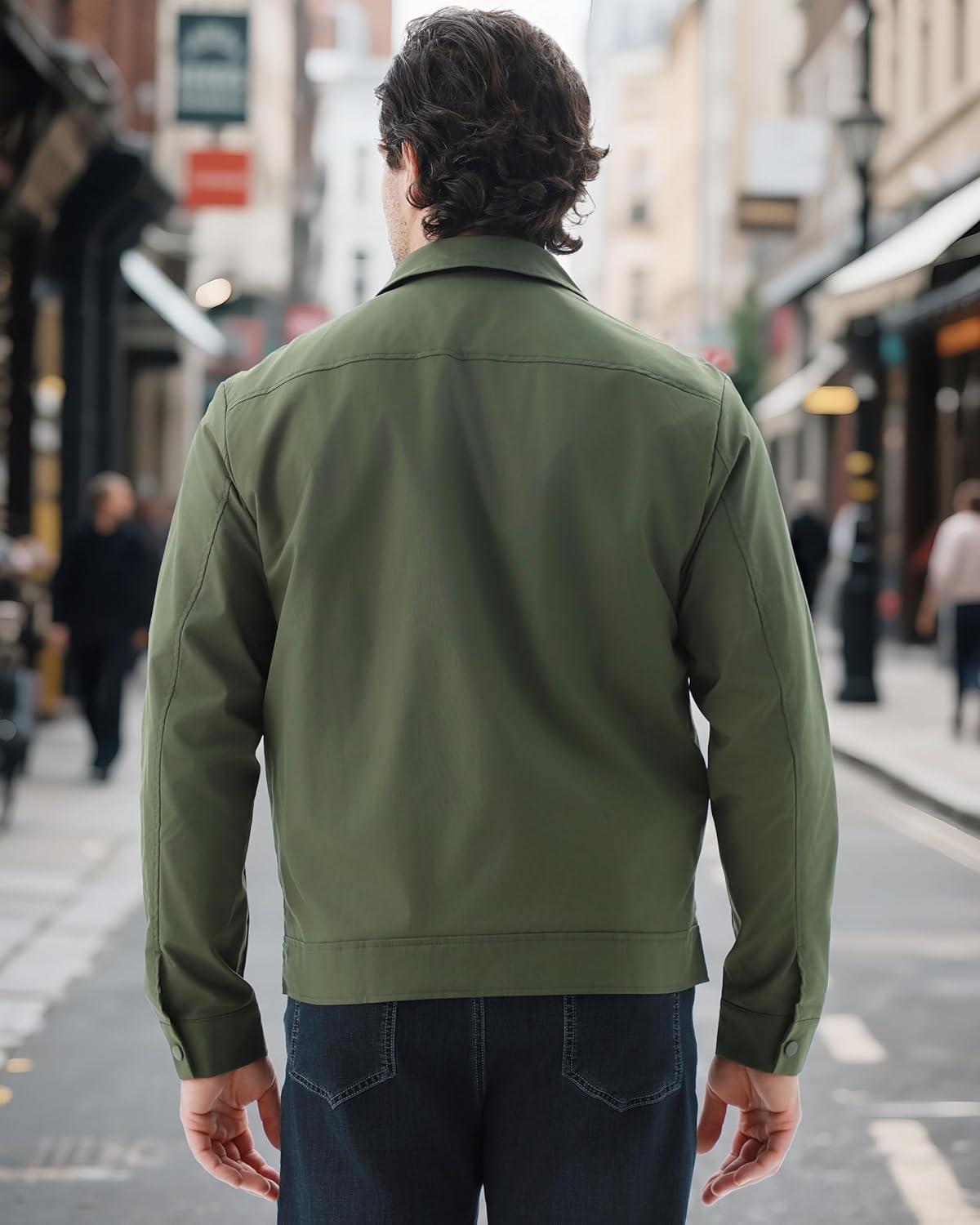 WULFUL Men's Lightweight Jackets Casual Windbreaker Stylish Light Golf Work Dress Business(Army Green)