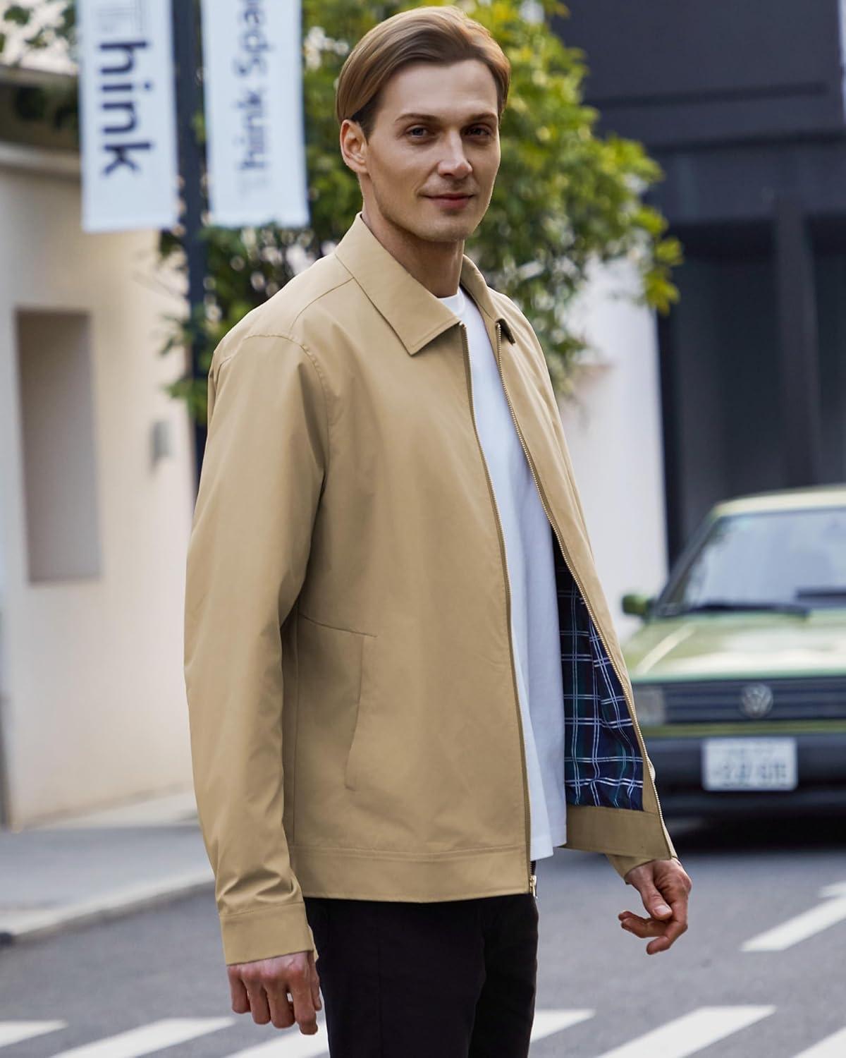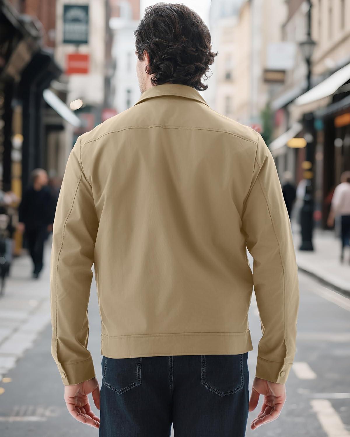 WULFUL Men's Lightweight Jackets Casual Windbreaker Stylish Light Golf Work Dress Business(Khaki)