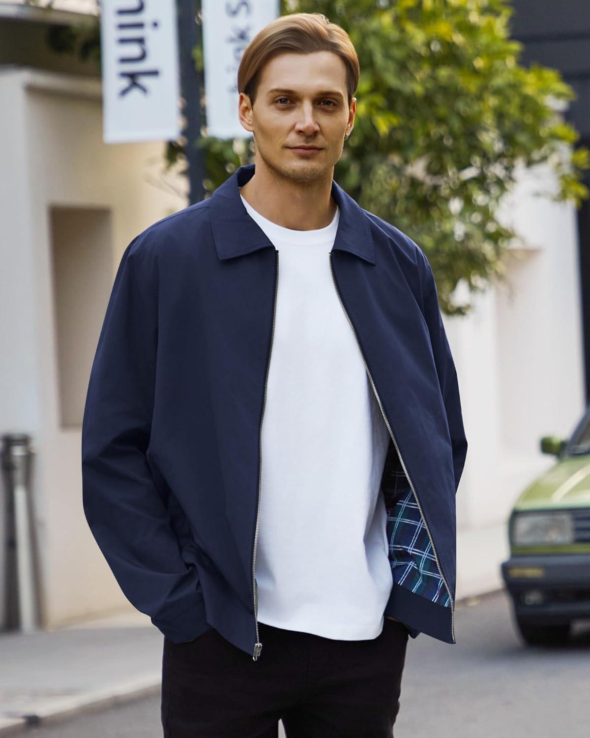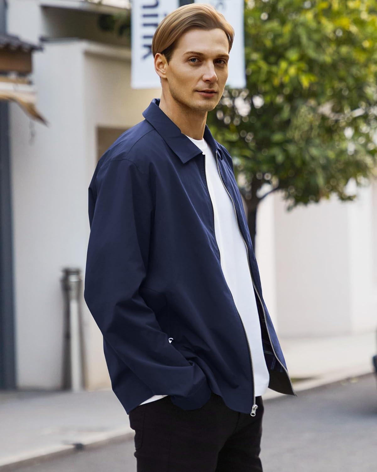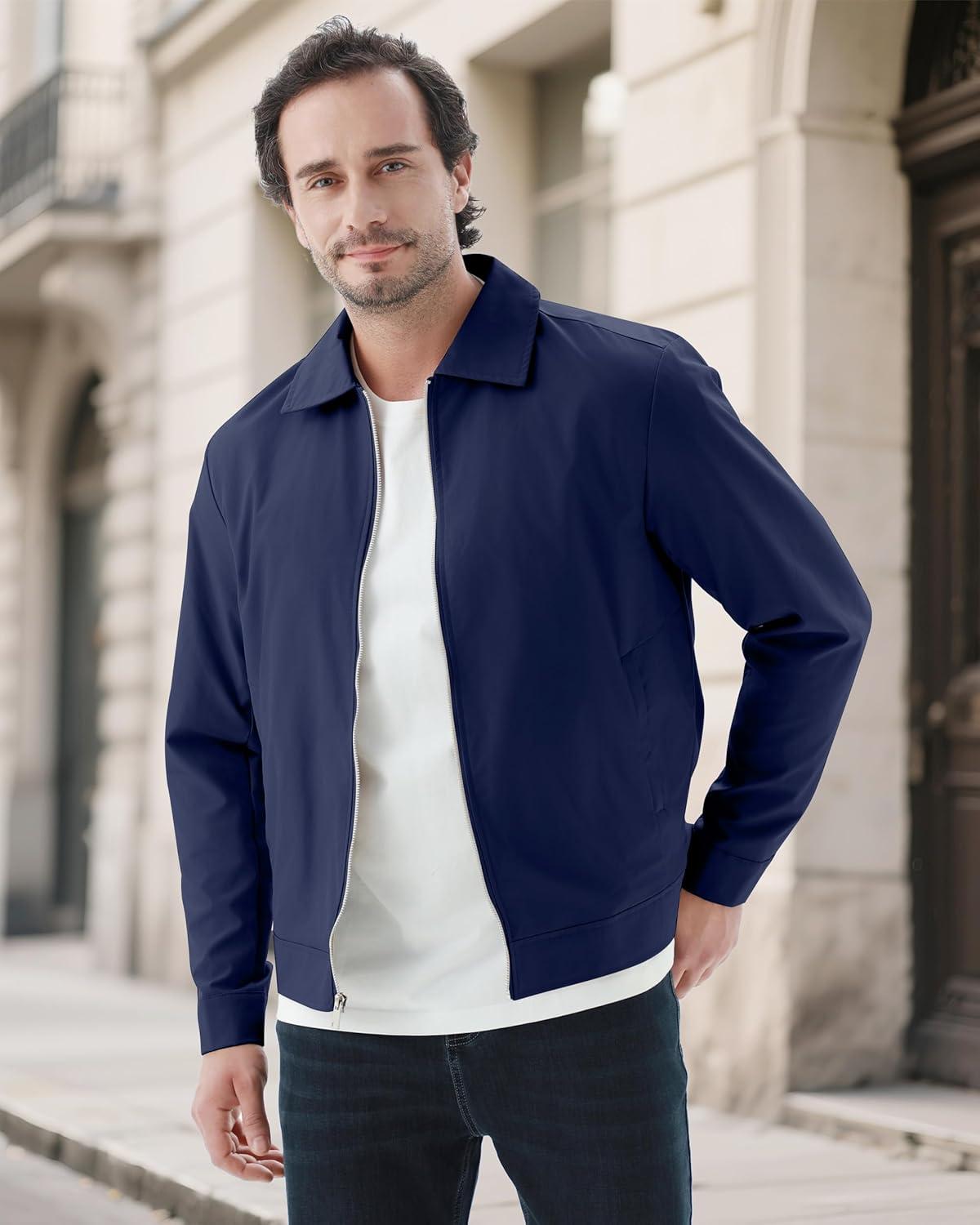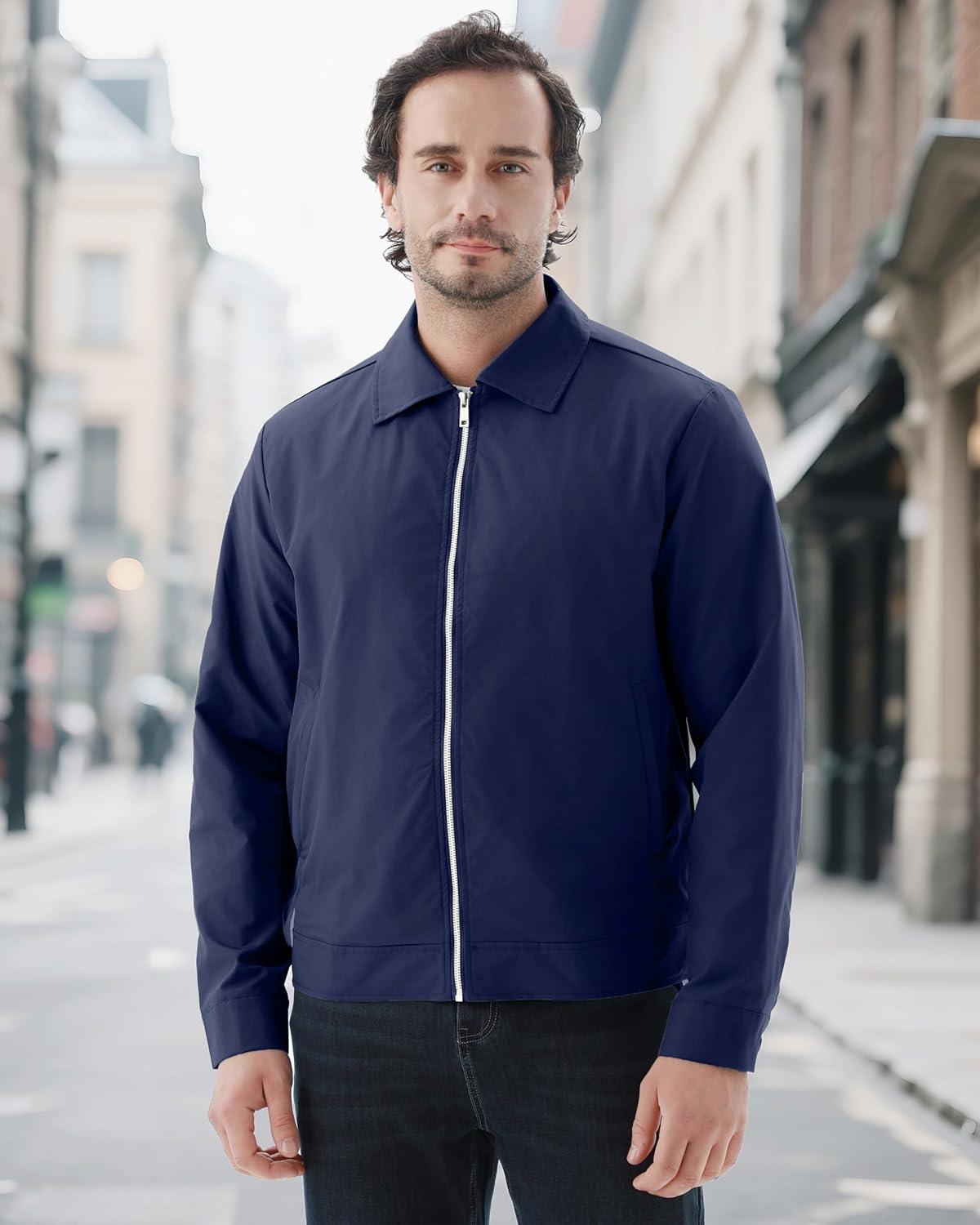 WULFUL Men’s Lightweight Jackets Casual Windbreaker Stylish Light Golf Work Dress Business(Navy)